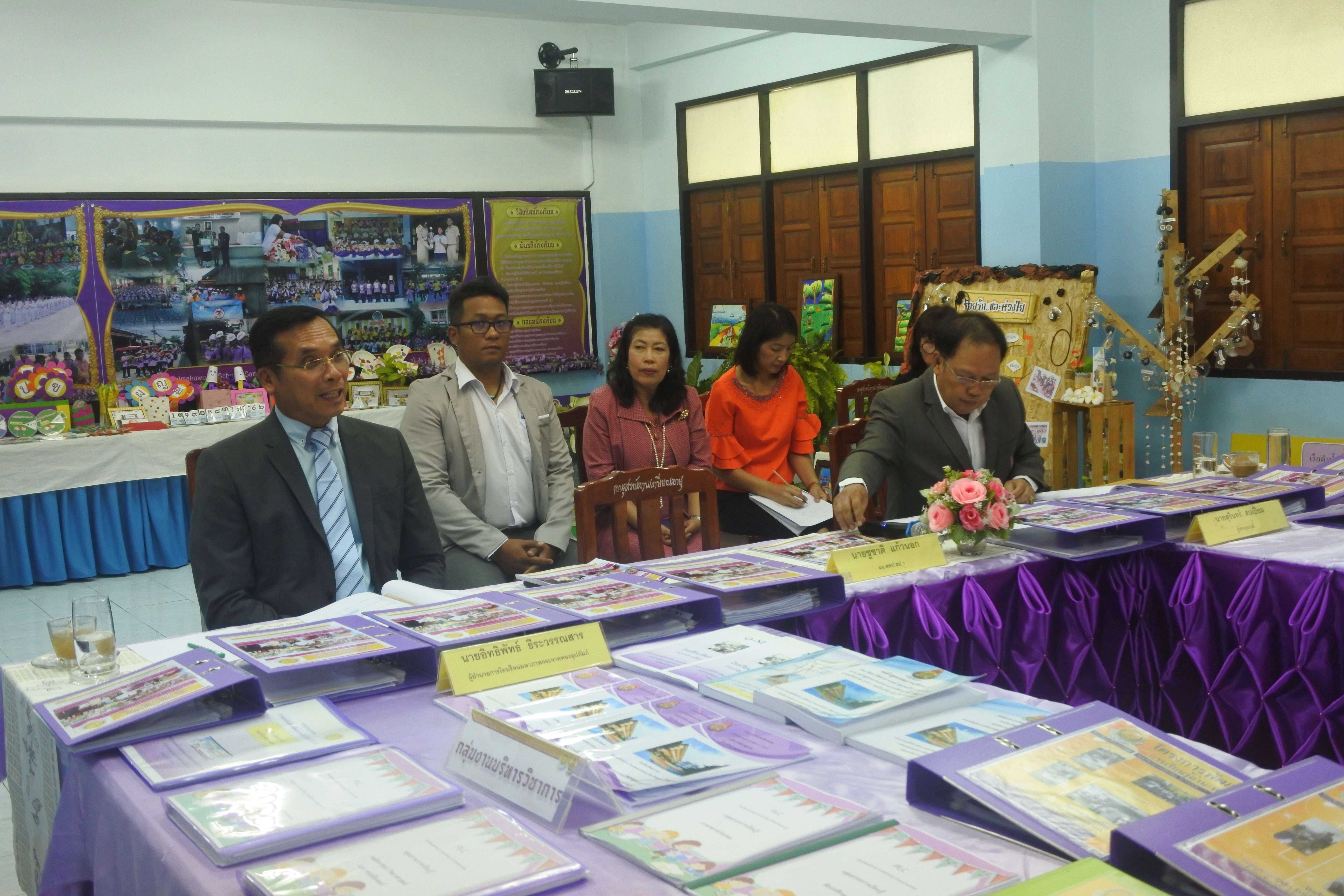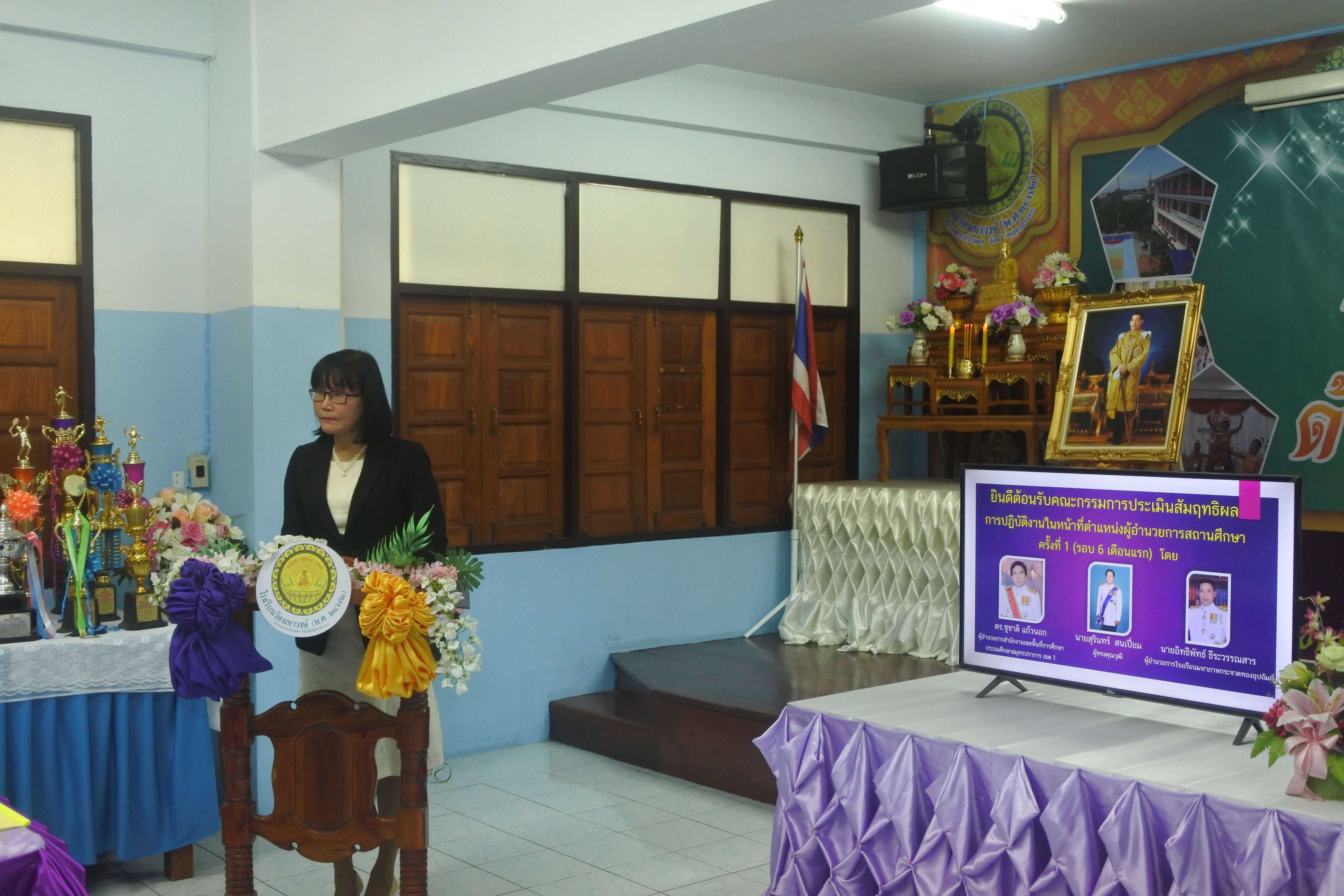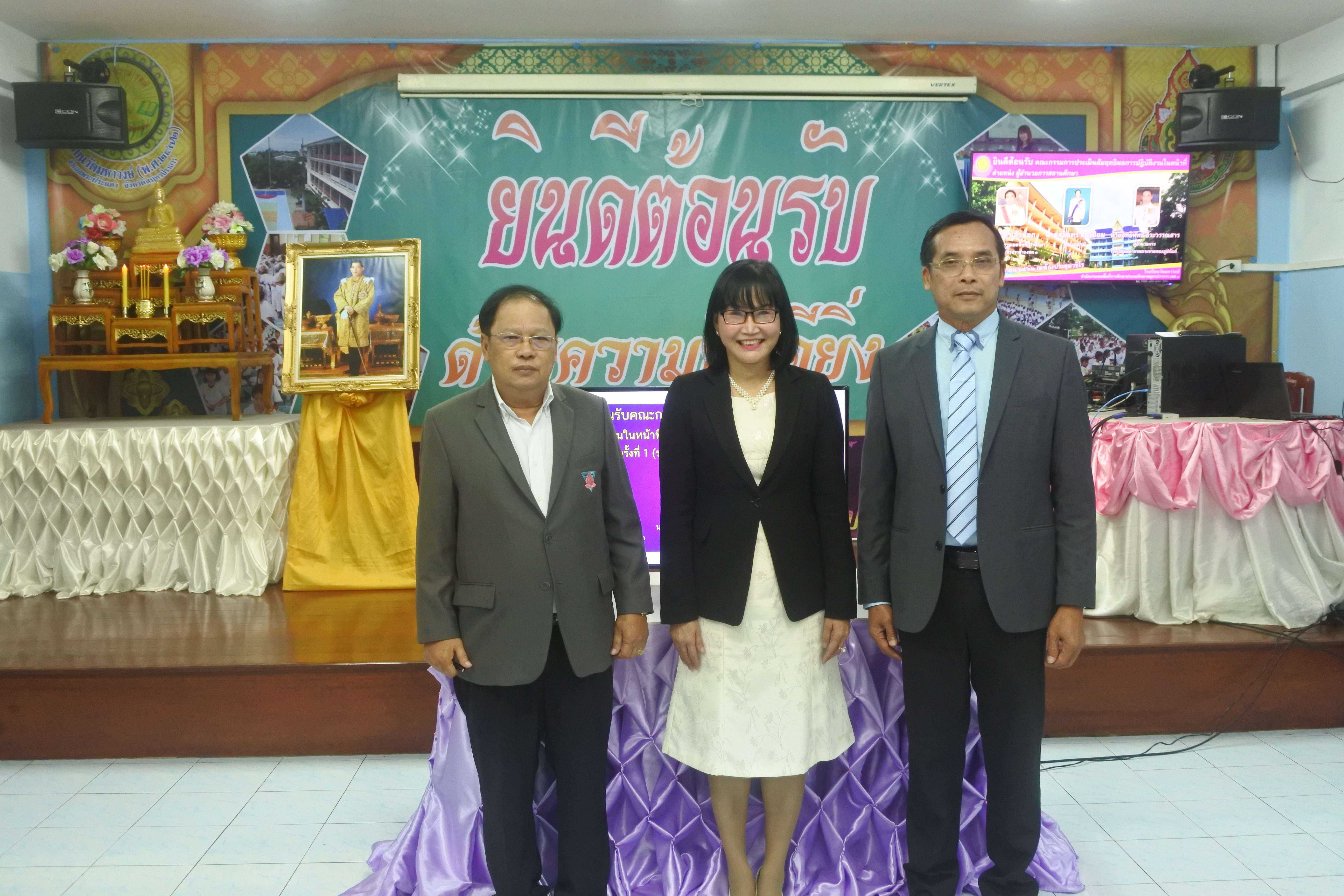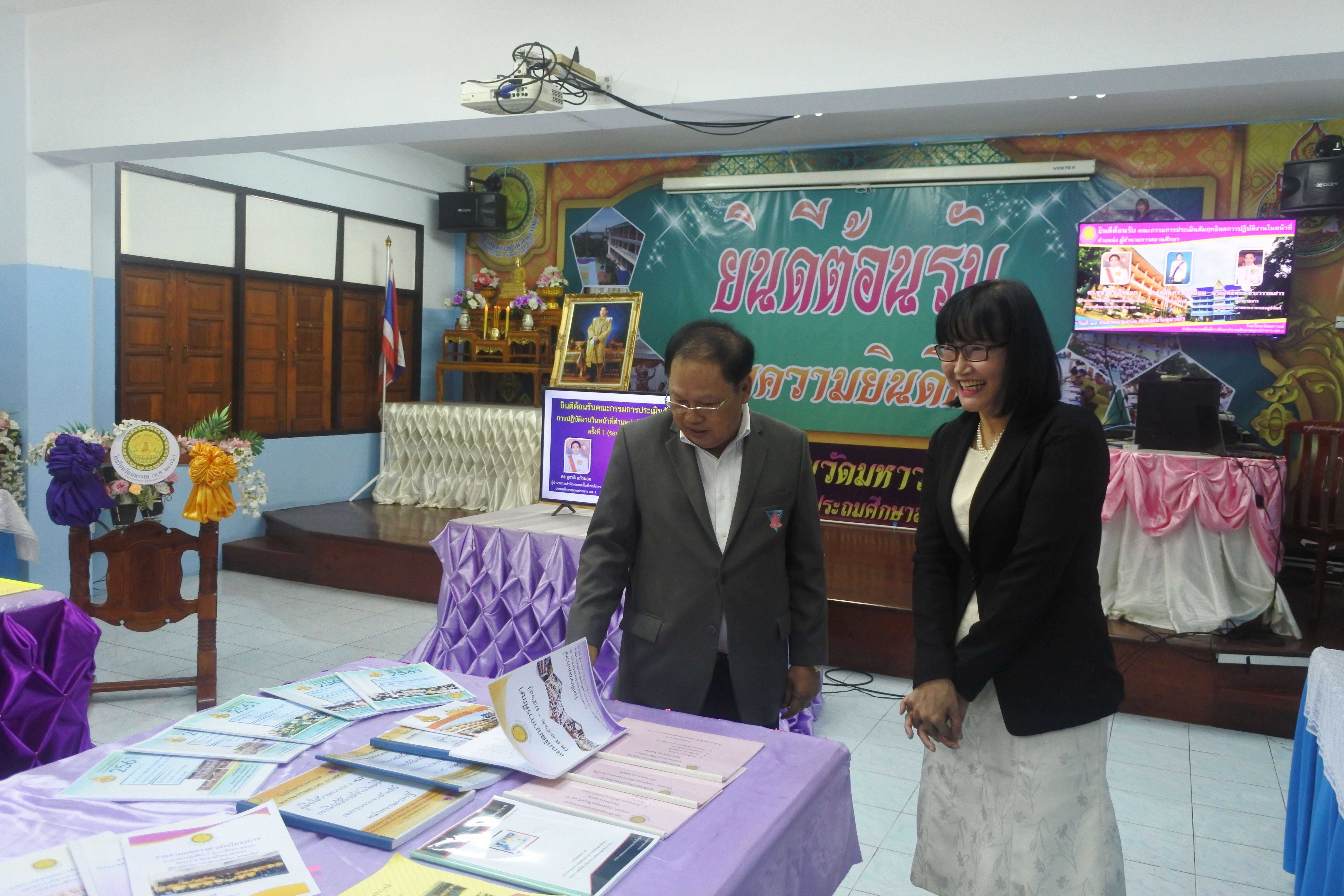 วันที่ ๒๔ กันยายน ๒๕๖๒ เวลา ๐๘.๓๐ น. คณะกรรมการนิเทศ ติดตาม ประเมินสัมฤทธิผลการปฏิบัติงานในหน้าที่ตำแหน่ง ผู้อำนวยการสถานศึกษา ครั้งที่ ๑ (รอบ ๖ เดือน) โดย นายสุรินทร์ สนเปี่ยม ผู้ทรงคุณวุฒิ นายอิทธิพัทธ์ ธีระวรรณสาร ผู้อำนวยการโรงเรียนมหาภาพกระจาดทองอุปถัมภ์ พร้อมด้วยนางกัณทิมา ทรงสกุล นักทรัพยากรบุคคล ชำนาญการพิเศษ ซึ่งเป็นคณะกรรมการประเมินสัมฤทธิผลการปฏิบัติงานในหน้าที่ตำแหน่ง ผู้อำนวยการสถานศึกษา ซึ่งได้รับการแต่งตั้งจากสำนักงานเขตพื้นที่การศึกษาประถมศึกษาสมุทรปราการ เขต ๑ ในการให้นิเทศ ติดตาม และประเมินสัมฤทธิผลการปฏิบัติงานในหน้าที่ตำแหน่ง ผู้อำนวยการสถานศึกษา ครั้งที่ ๑ (รอบ ๖ เดือน) ของ ดร.ชูขวัญ รัตนพิทักษ์ธาดา ตำแหน่ง ผู้อำนวยการสถานศึกษา วิทยฐานะผู้อำนวยการชำนาญการพิเศษ ซึ่งได้ดำรงตำแหน่งผู้อำนวยการโรงเรียนวัดมหาวงษ์ ตั้งแต่วันที่ ๑ มีนาคม ๒๕๖๒ เป็นต้นมา โดยมีคณะผู้บริหาร คณะครู และบุคลากร โรงเรียนวัดมหาวงษ์ ให้การต้อนรับ ณ ห้องประชุมวชิโร ชั้น ๓ อาคารเฉลิมพระเกียรติ ๘๐ พรรรษา โรงเรียนวัดมหาวงษ์ S:1