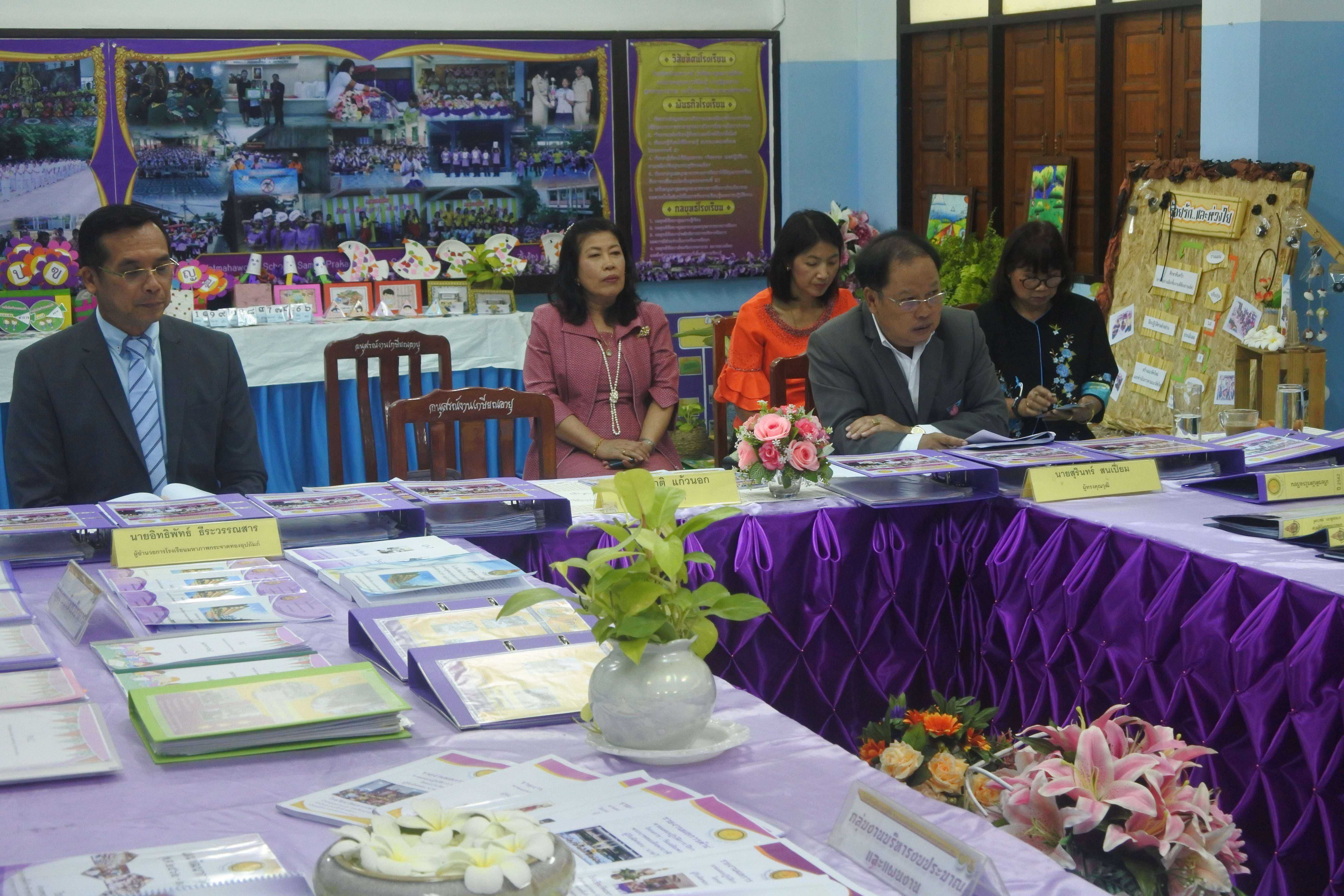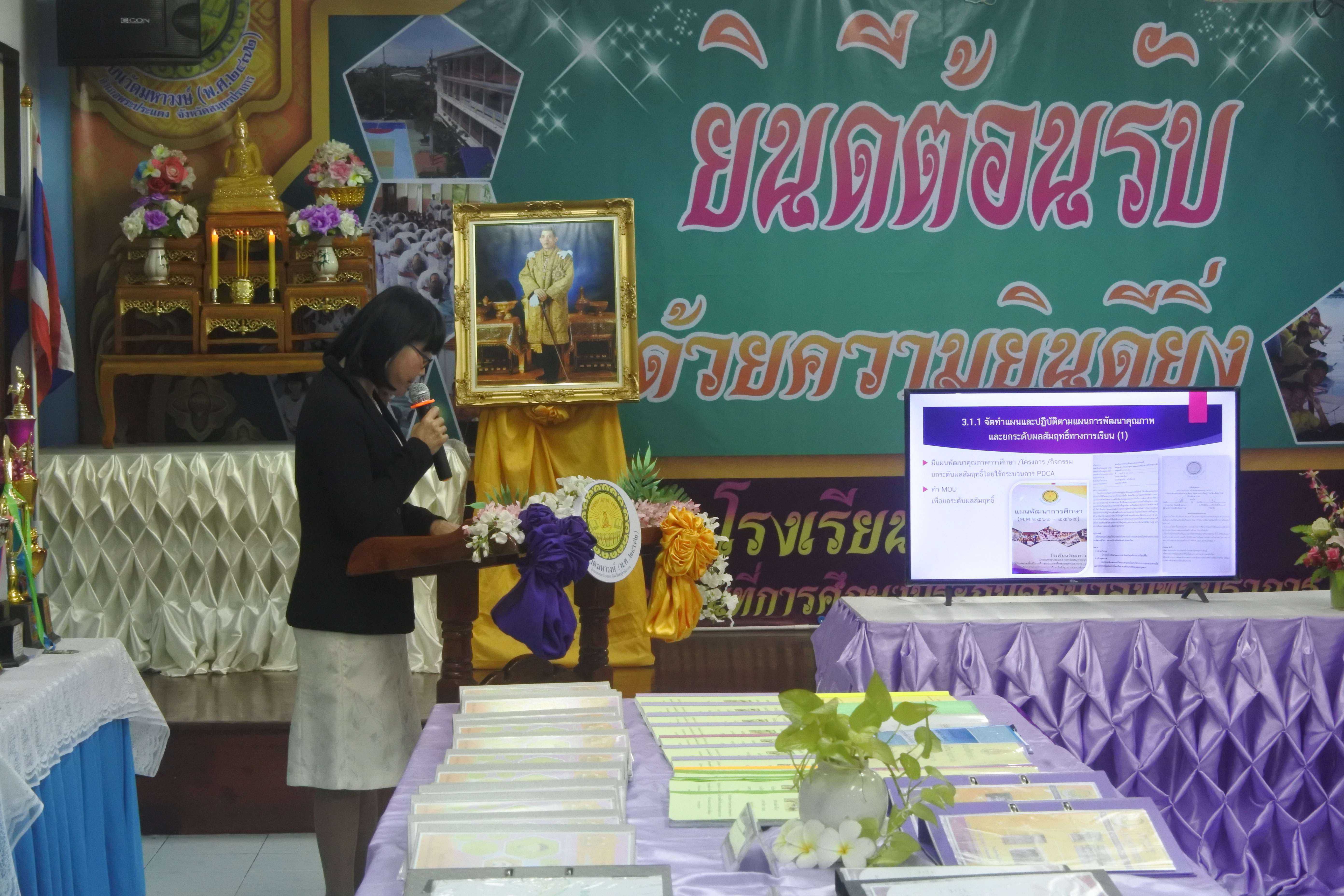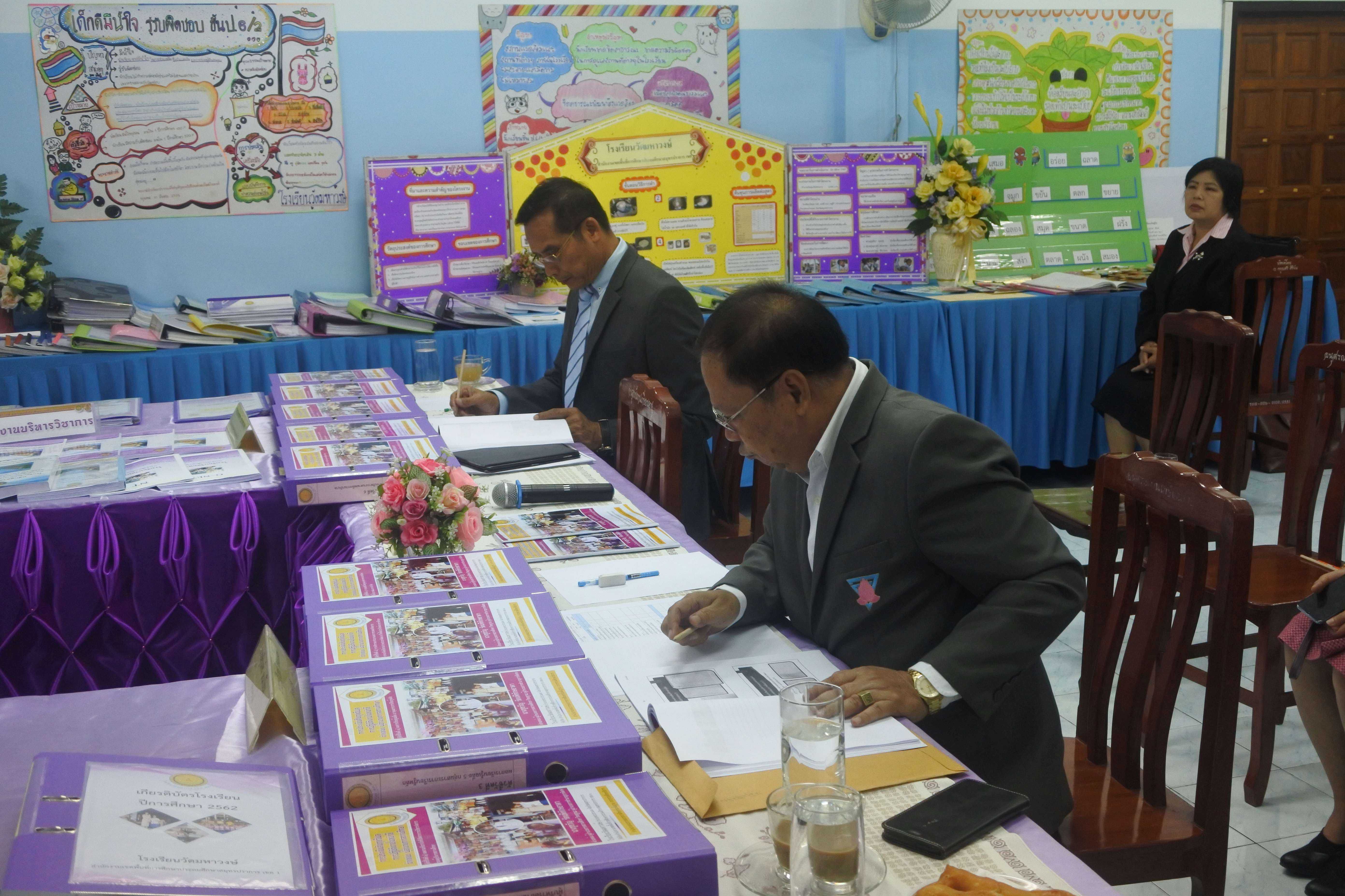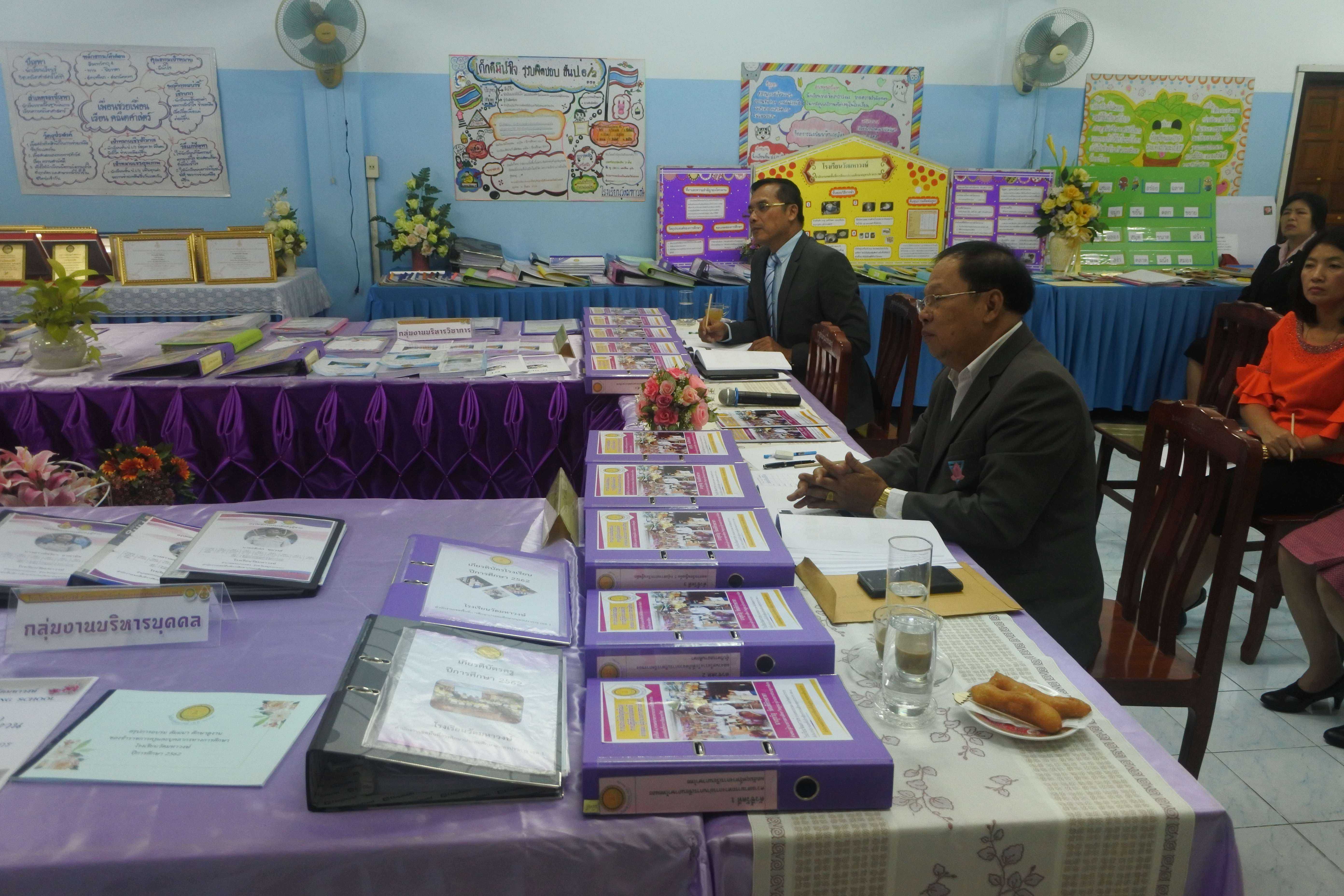 วันที่ ๒๔ กันยายน ๒๕๖๒ เวลา ๐๘.๓๐ น. คณะกรรมการนิเทศ ติดตาม ประเมินสัมฤทธิผลการปฏิบัติงานในหน้าที่ตำแหน่ง ผู้อำนวยการสถานศึกษา ครั้งที่ ๑ (รอบ ๖ เดือน) โดย นายสุรินทร์ สนเปี่ยม ผู้ทรงคุณวุฒิ นายอิทธิพัทธ์ ธีระวรรณสาร ผู้อำนวยการโรงเรียนมหาภาพกระจาดทองอุปถัมภ์ พร้อมด้วยนางกัณทิมา ทรงสกุล นักทรัพยากรบุคคล ชำนาญการพิเศษ ซึ่งเป็นคณะกรรมการประเมินสัมฤทธิผลการปฏิบัติงานในหน้าที่ตำแหน่ง ผู้อำนวยการสถานศึกษา ซึ่งได้รับการแต่งตั้งจากสำนักงานเขตพื้นที่การศึกษาประถมศึกษาสมุทรปราการ เขต ๑ ในการให้นิเทศ ติดตาม และประเมินสัมฤทธิผลการปฏิบัติงานในหน้าที่ตำแหน่ง ผู้อำนวยการสถานศึกษา ครั้งที่ ๑ (รอบ ๖ เดือน) ของ ดร.ชูขวัญ รัตนพิทักษ์ธาดา ตำแหน่ง ผู้อำนวยการสถานศึกษา วิทยฐานะผู้อำนวยการชำนาญการพิเศษ ซึ่งได้ดำรงตำแหน่งผู้อำนวยการโรงเรียนวัดมหาวงษ์ ตั้งแต่วันที่ ๑ มีนาคม ๒๕๖๒ เป็นต้นมา โดยมีคณะผู้บริหาร คณะครู และบุคลากร โรงเรียนวัดมหาวงษ์ ให้การต้อนรับ ณ ห้องประชุมวชิโร ชั้น ๓ อาคารเฉลิมพระเกียรติ ๘๐ พรรรษา โรงเรียนวัดมหาวงษ์ S:1