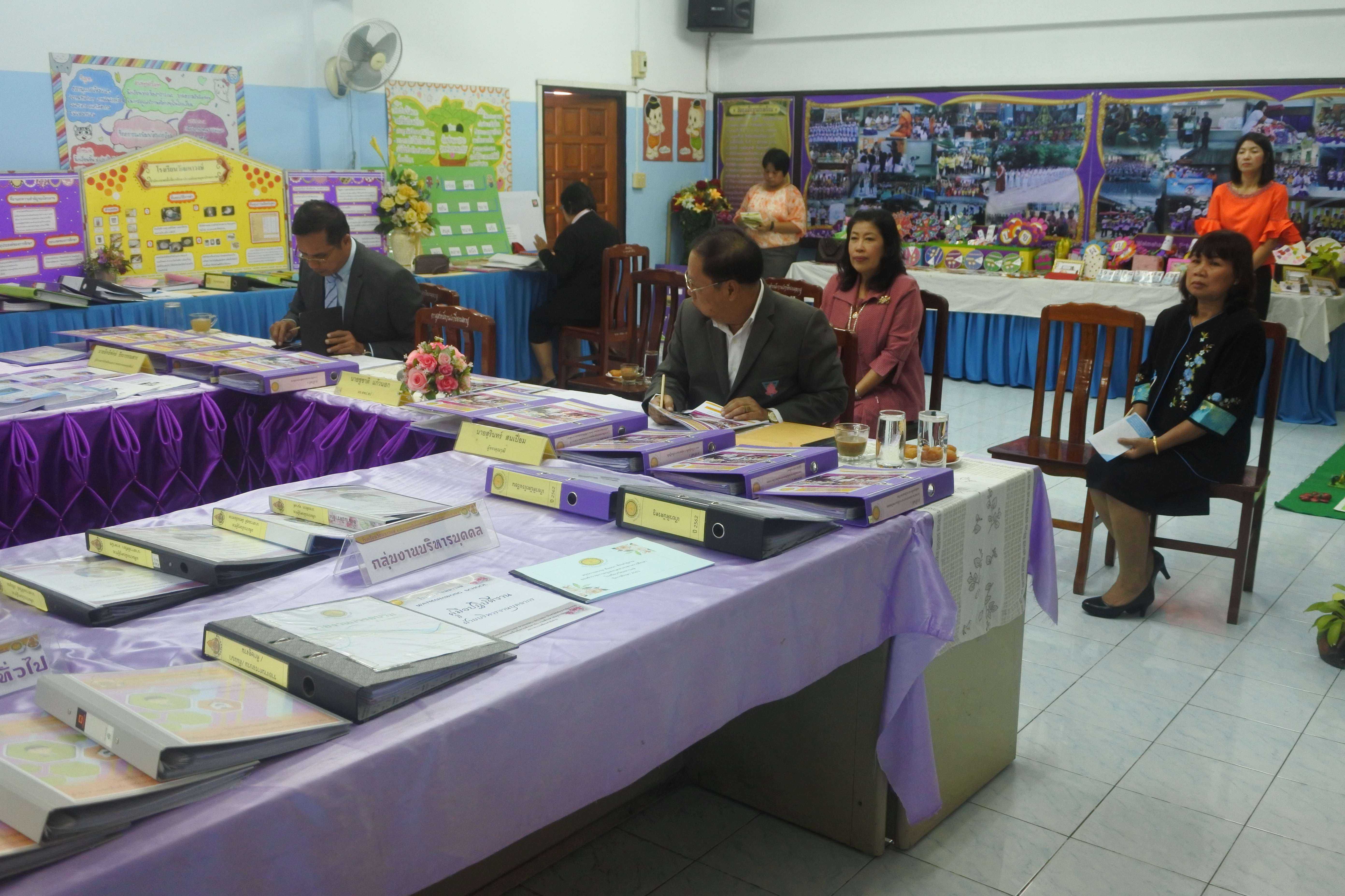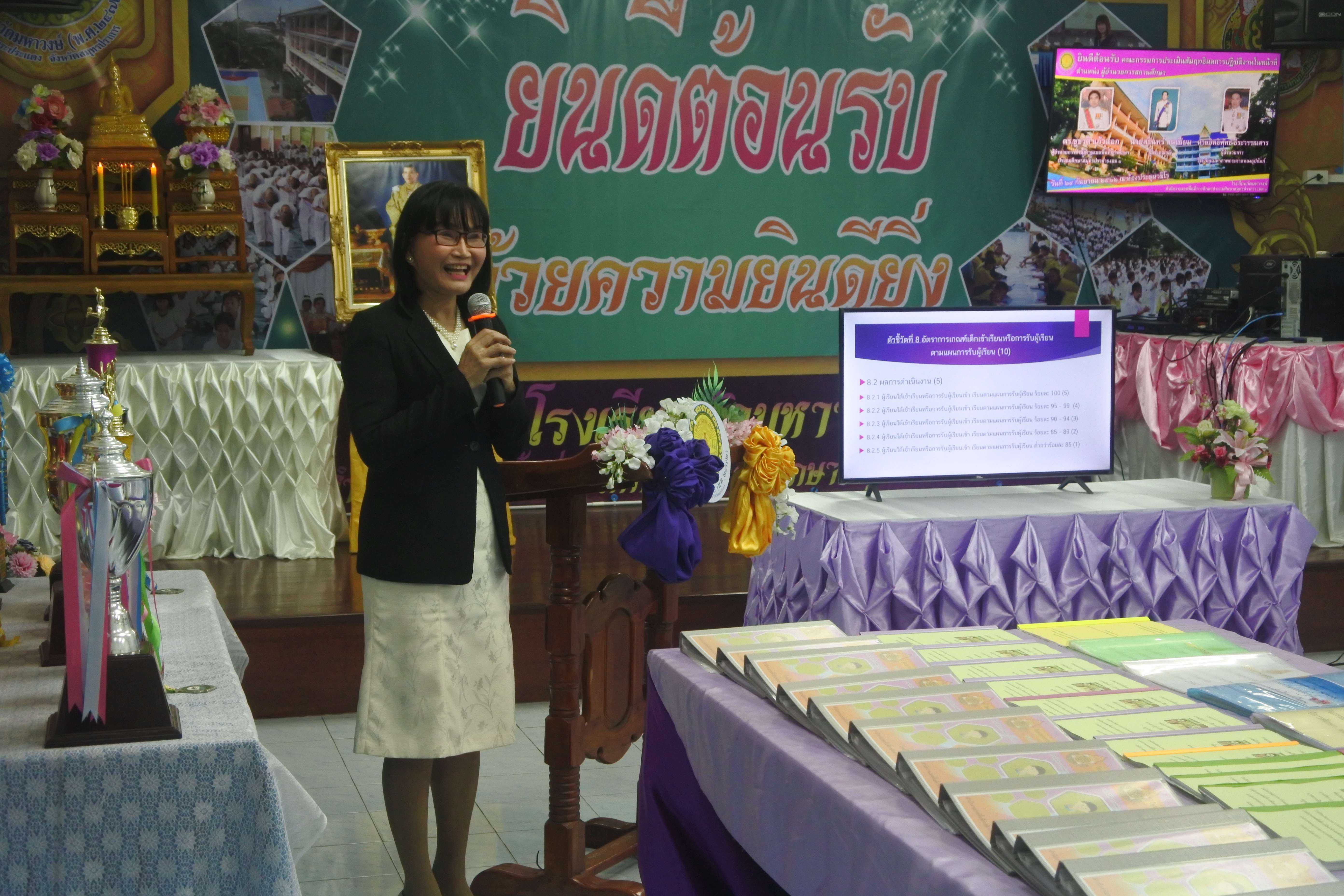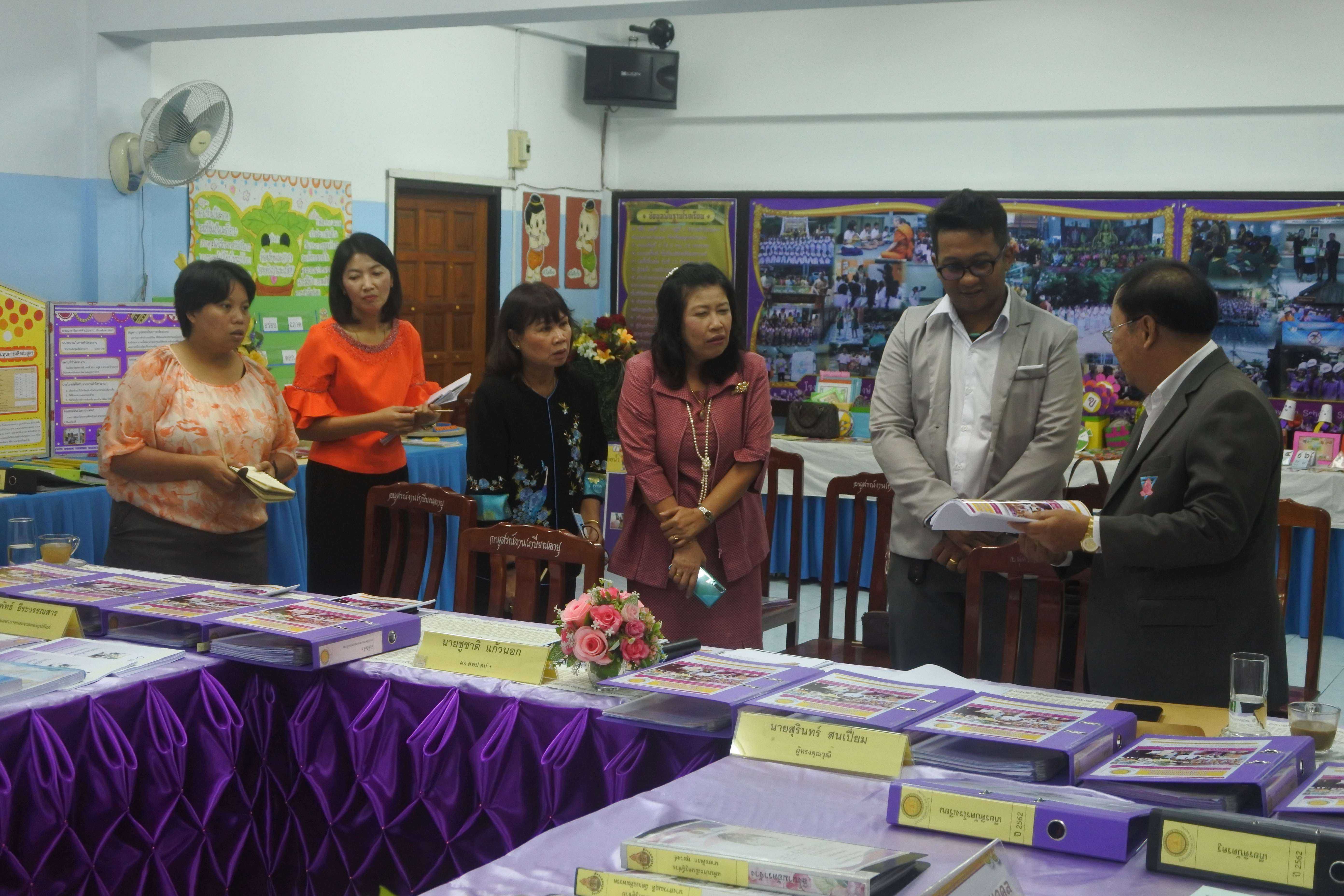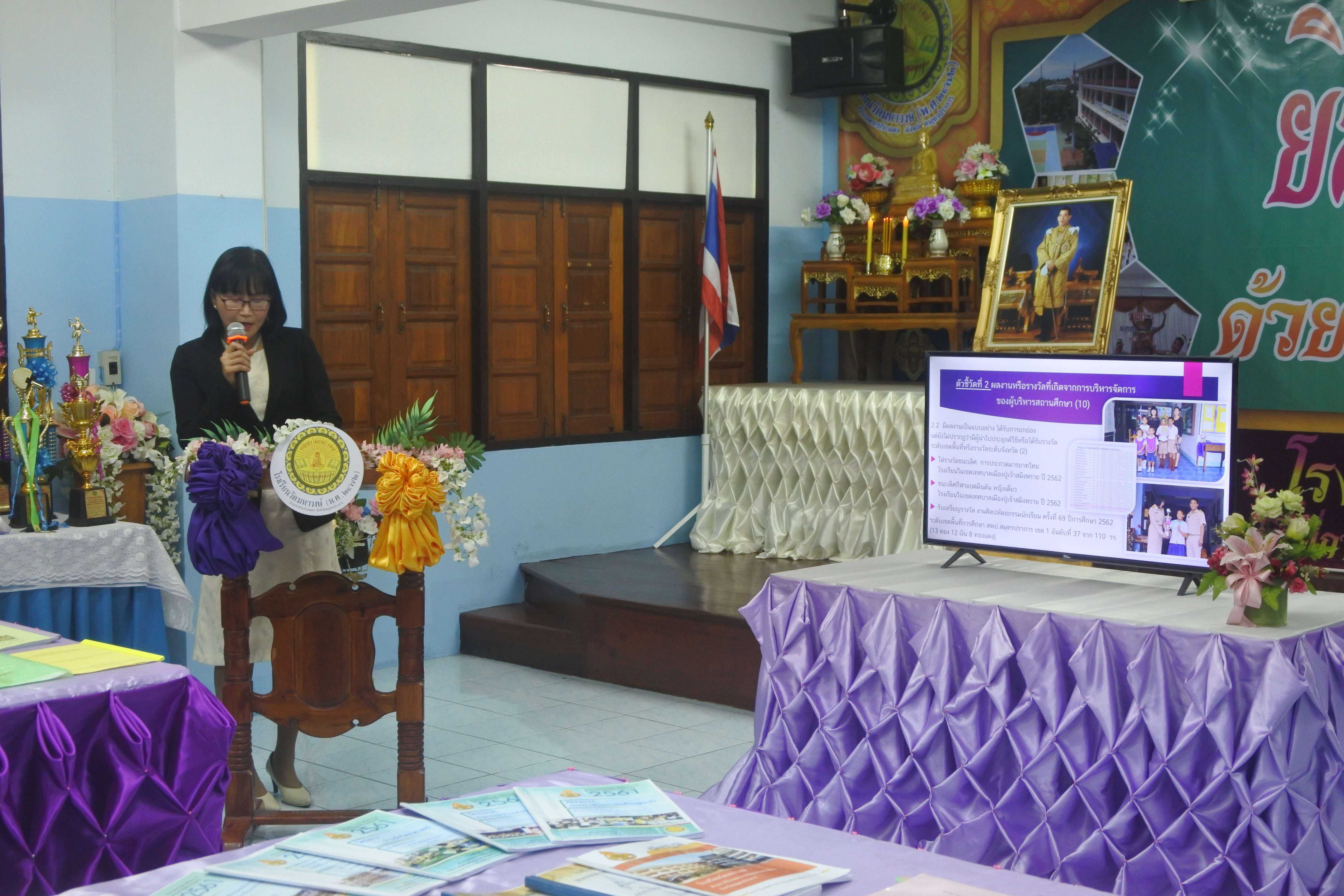 วันที่ ๒๔ กันยายน ๒๕๖๒ เวลา ๐๘.๓๐ น. คณะกรรมการนิเทศ ติดตาม ประเมินสัมฤทธิผลการปฏิบัติงานในหน้าที่ตำแหน่ง ผู้อำนวยการสถานศึกษา ครั้งที่ ๑ (รอบ ๖ เดือน) โดย นายสุรินทร์ สนเปี่ยม ผู้ทรงคุณวุฒิ นายอิทธิพัทธ์ ธีระวรรณสาร ผู้อำนวยการโรงเรียนมหาภาพกระจาดทองอุปถัมภ์ พร้อมด้วยนางกัณทิมา ทรงสกุล นักทรัพยากรบุคคล ชำนาญการพิเศษ ซึ่งเป็นคณะกรรมการประเมินสัมฤทธิผลการปฏิบัติงานในหน้าที่ตำแหน่ง ผู้อำนวยการสถานศึกษา ซึ่งได้รับการแต่งตั้งจากสำนักงานเขตพื้นที่การศึกษาประถมศึกษาสมุทรปราการ เขต ๑ ในการให้นิเทศ ติดตาม และประเมินสัมฤทธิผลการปฏิบัติงานในหน้าที่ตำแหน่ง ผู้อำนวยการสถานศึกษา ครั้งที่ ๑ (รอบ ๖ เดือน) ของ ดร.ชูขวัญ รัตนพิทักษ์ธาดา ตำแหน่ง ผู้อำนวยการสถานศึกษา วิทยฐานะผู้อำนวยการชำนาญการพิเศษ ซึ่งได้ดำรงตำแหน่งผู้อำนวยการโรงเรียนวัดมหาวงษ์ ตั้งแต่วันที่ ๑ มีนาคม ๒๕๖๒ เป็นต้นมา โดยมีคณะผู้บริหาร คณะครู และบุคลากร โรงเรียนวัดมหาวงษ์ ให้การต้อนรับ ณ ห้องประชุมวชิโร ชั้น ๓ อาคารเฉลิมพระเกียรติ ๘๐ พรรรษา โรงเรียนวัดมหาวงษ์ S:1