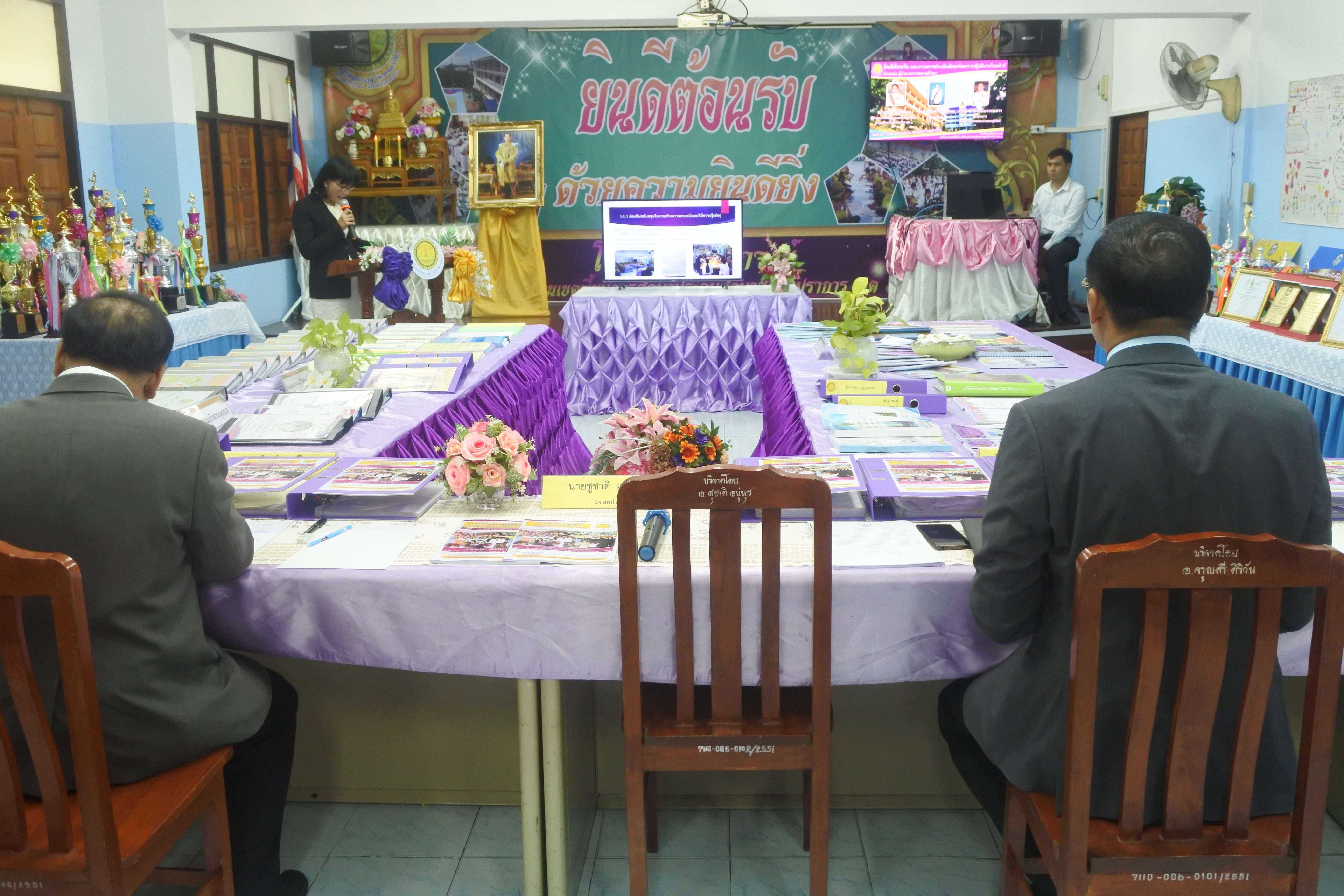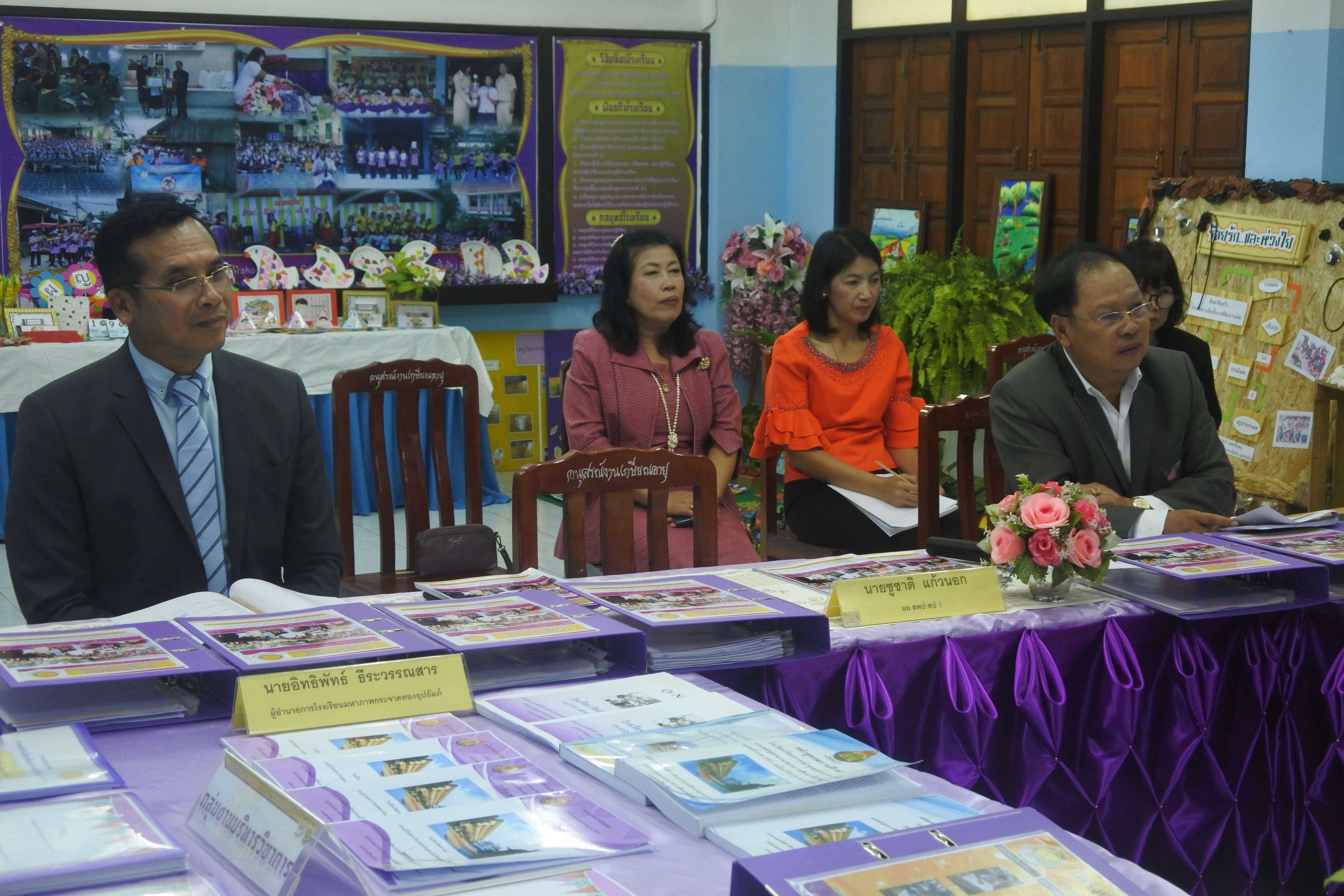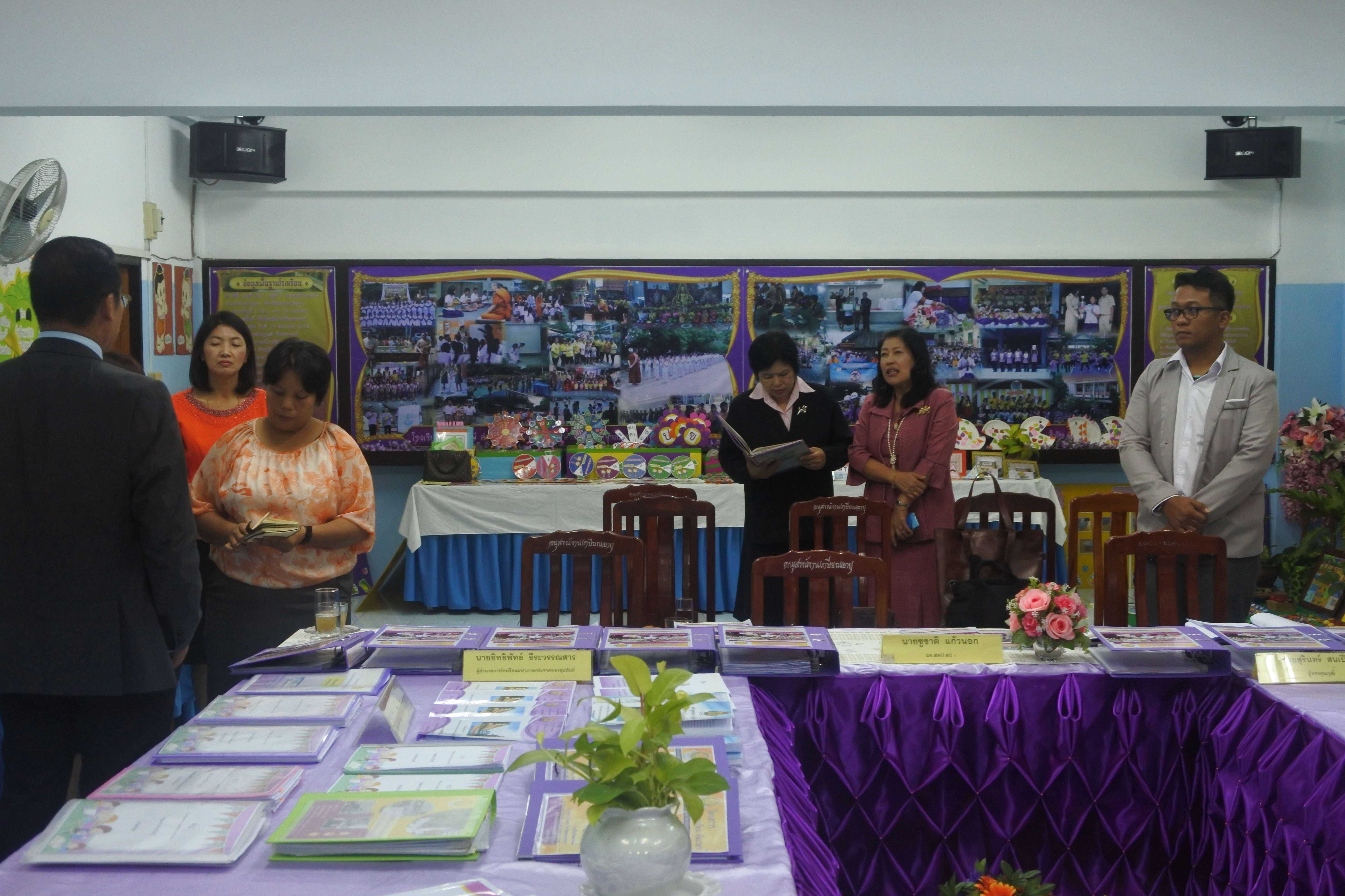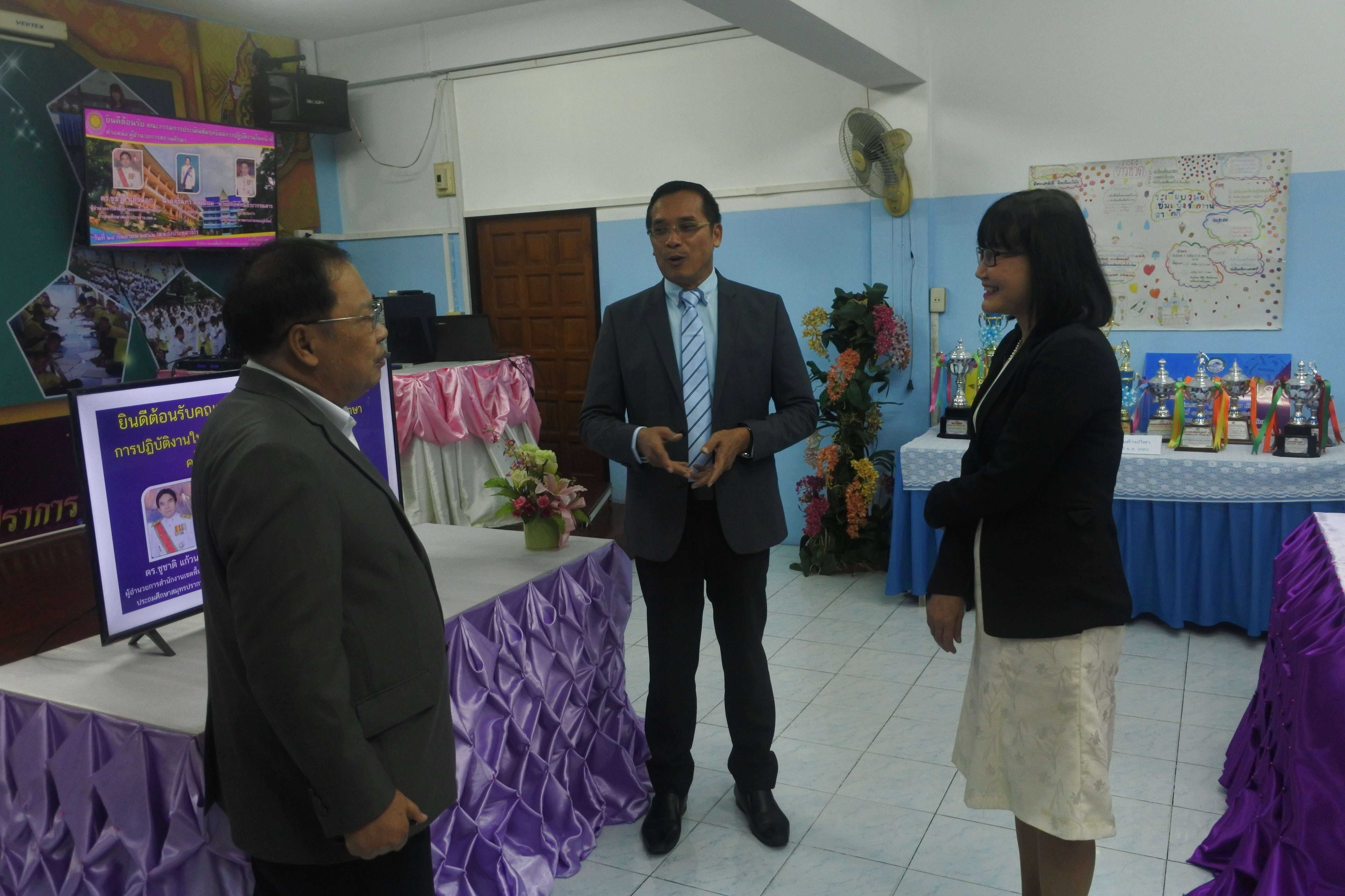 วันที่ ๒๔ กันยายน ๒๕๖๒ เวลา ๐๘.๓๐ น. คณะกรรมการนิเทศ ติดตาม ประเมินสัมฤทธิผลการปฏิบัติงานในหน้าที่ตำแหน่ง ผู้อำนวยการสถานศึกษา ครั้งที่ ๑ (รอบ ๖ เดือน) โดย นายสุรินทร์ สนเปี่ยม ผู้ทรงคุณวุฒิ นายอิทธิพัทธ์ ธีระวรรณสาร ผู้อำนวยการโรงเรียนมหาภาพกระจาดทองอุปถัมภ์ พร้อมด้วยนางกัณทิมา ทรงสกุล นักทรัพยากรบุคคล ชำนาญการพิเศษ ซึ่งเป็นคณะกรรมการประเมินสัมฤทธิผลการปฏิบัติงานในหน้าที่ตำแหน่ง ผู้อำนวยการสถานศึกษา ซึ่งได้รับการแต่งตั้งจากสำนักงานเขตพื้นที่การศึกษาประถมศึกษาสมุทรปราการ เขต ๑ ในการให้นิเทศ ติดตาม และประเมินสัมฤทธิผลการปฏิบัติงานในหน้าที่ตำแหน่ง ผู้อำนวยการสถานศึกษา ครั้งที่ ๑ (รอบ ๖ เดือน) ของ ดร.ชูขวัญ รัตนพิทักษ์ธาดา ตำแหน่ง ผู้อำนวยการสถานศึกษา วิทยฐานะผู้อำนวยการชำนาญการพิเศษ ซึ่งได้ดำรงตำแหน่งผู้อำนวยการโรงเรียนวัดมหาวงษ์ ตั้งแต่วันที่ ๑ มีนาคม ๒๕๖๒ เป็นต้นมา โดยมีคณะผู้บริหาร คณะครู และบุคลากร โรงเรียนวัดมหาวงษ์ ให้การต้อนรับ ณ ห้องประชุมวชิโร ชั้น ๓ อาคารเฉลิมพระเกียรติ ๘๐ พรรรษา โรงเรียนวัดมหาวงษ์ S:1