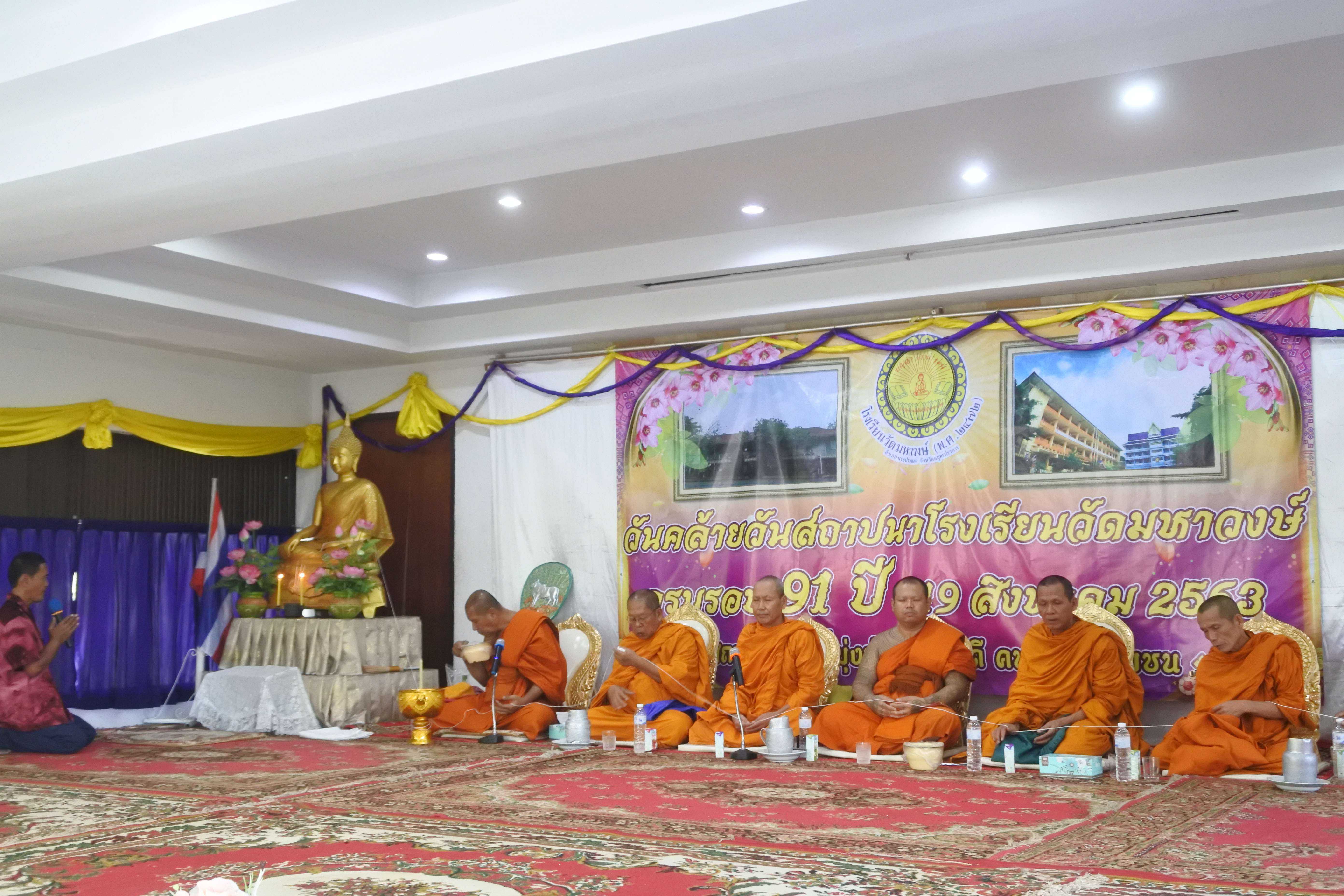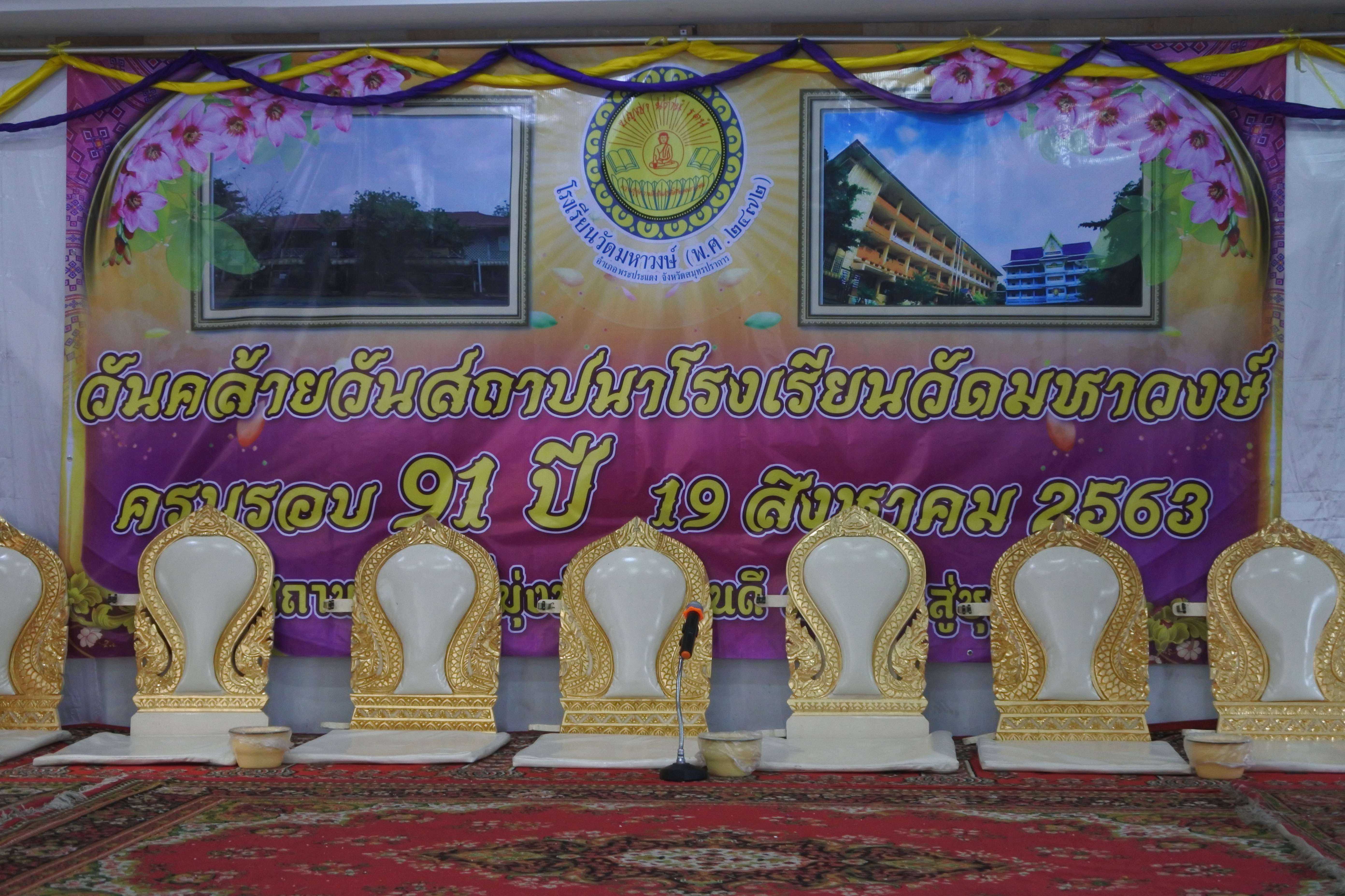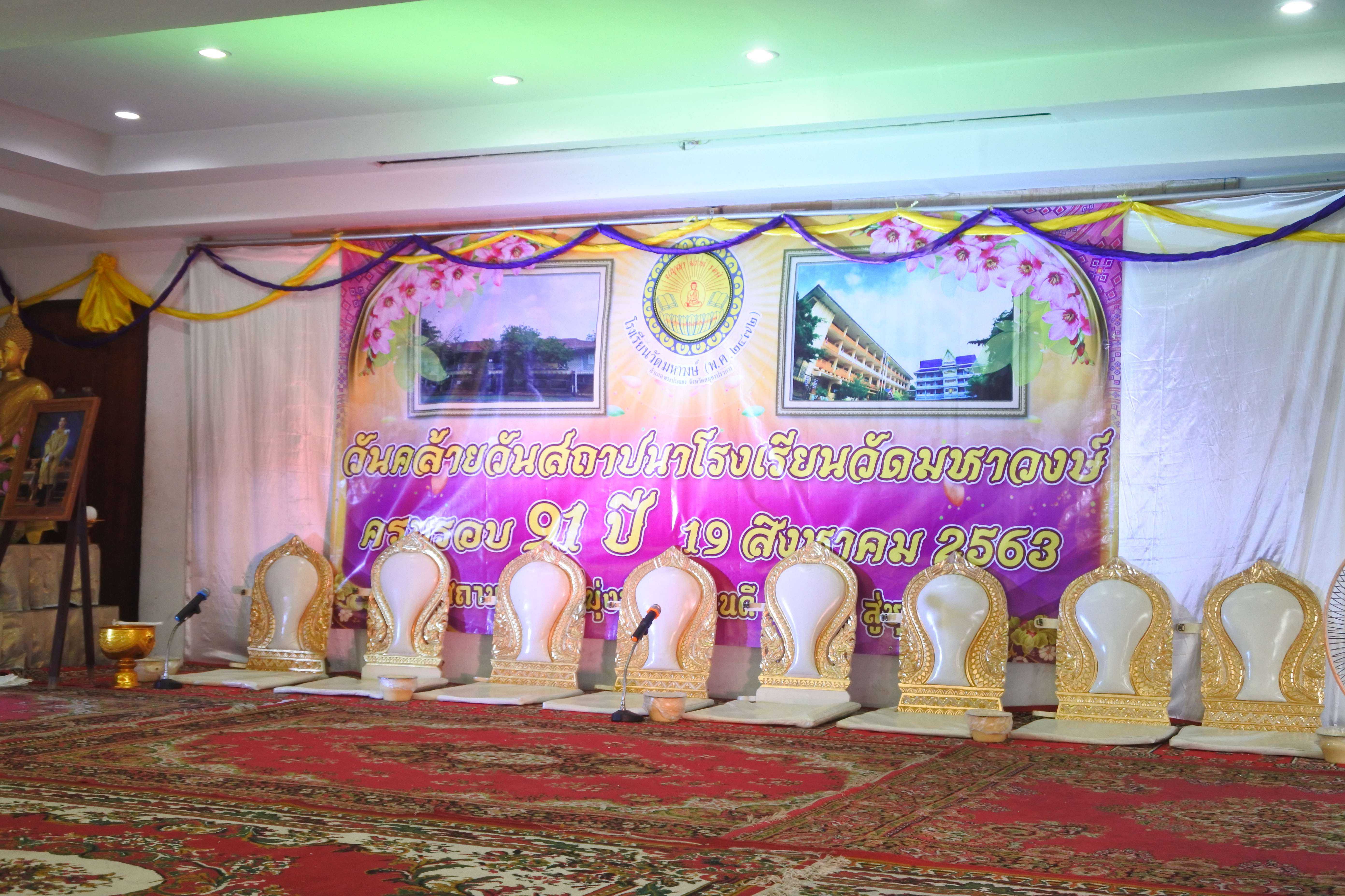 วันที่ 19 สิงหาคม 2563 เวลา 09.00 น. โรงเรียนวัดมหาวงษ์ นำโดย ดร.ชูขวัญ รัตนพิทักษ์ธาดา ผู้อำนวยการโรงเรียนวัดมหาวงษ์ พร้อมด้วยคณะครู บุคลากร จัดกิจกรรมวันคล้ายวันสถาปนาโรงเรียนวัดมหาวงษ์ ครบรอบ 91 ปี ณ ห้องประชุมอาคารมหาวงษ์น้อมเกล้า โดยมีพระครูปลัดเพลิน วชิโร ผู้ช่วยเจ้าอาวาสวัดมหาวงษ์ เป็นประธานฝ่ายสงฆ์ นางปนัดดา กิตติภัทรกุลชัย ประธานคณะกรรมการสถานศึกษาขั้นพื้นฐาน เป็นประธานฝ่ายฆราวาส ซึ่งมีพิธีเจริญพระพุทธมนต์ พิธีทำบุญถวายภัตตาหารเพลแด่พระสงฆ์ จำนวน 9 รูป พิธีมอบทุนการศึกษาจากผู้มีจิตศรัทธา คณะบุคคล บริษัท ห้างร้านต่างๆ และจากนั้นมีพิธีมุทิตาคารวะครูอาวุโส ซึ่งเป็นอดีตครูโรงเรียนวัดมหาวงษ์ โดยมีศิษย์เก่าร่วมกราบขอพรเพื่อความเป็นสิริมงคลและรำลึกถึงพระคุณครูที่เคยได้อบรมสั่งสอนให้วิชาความรู้ S:1