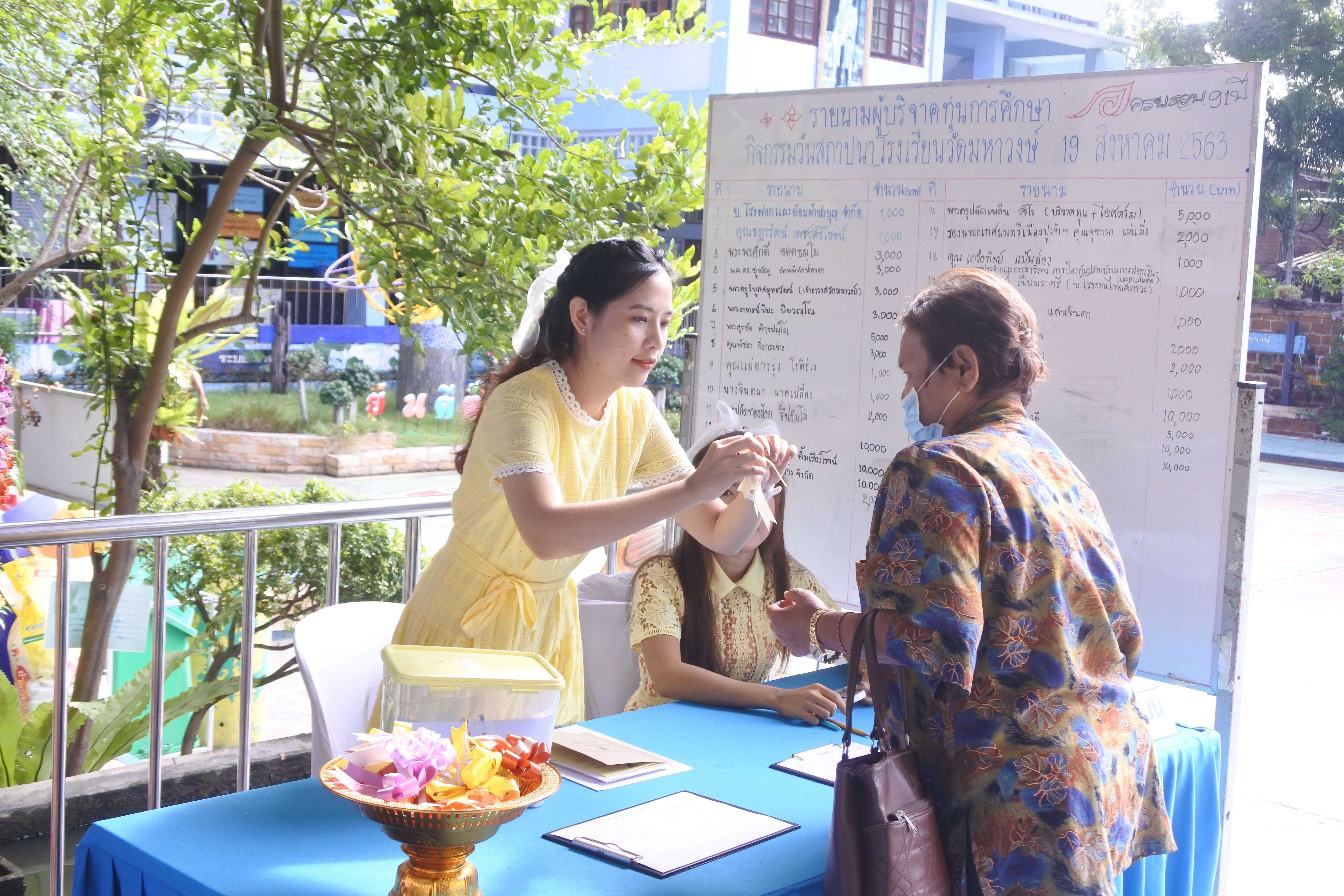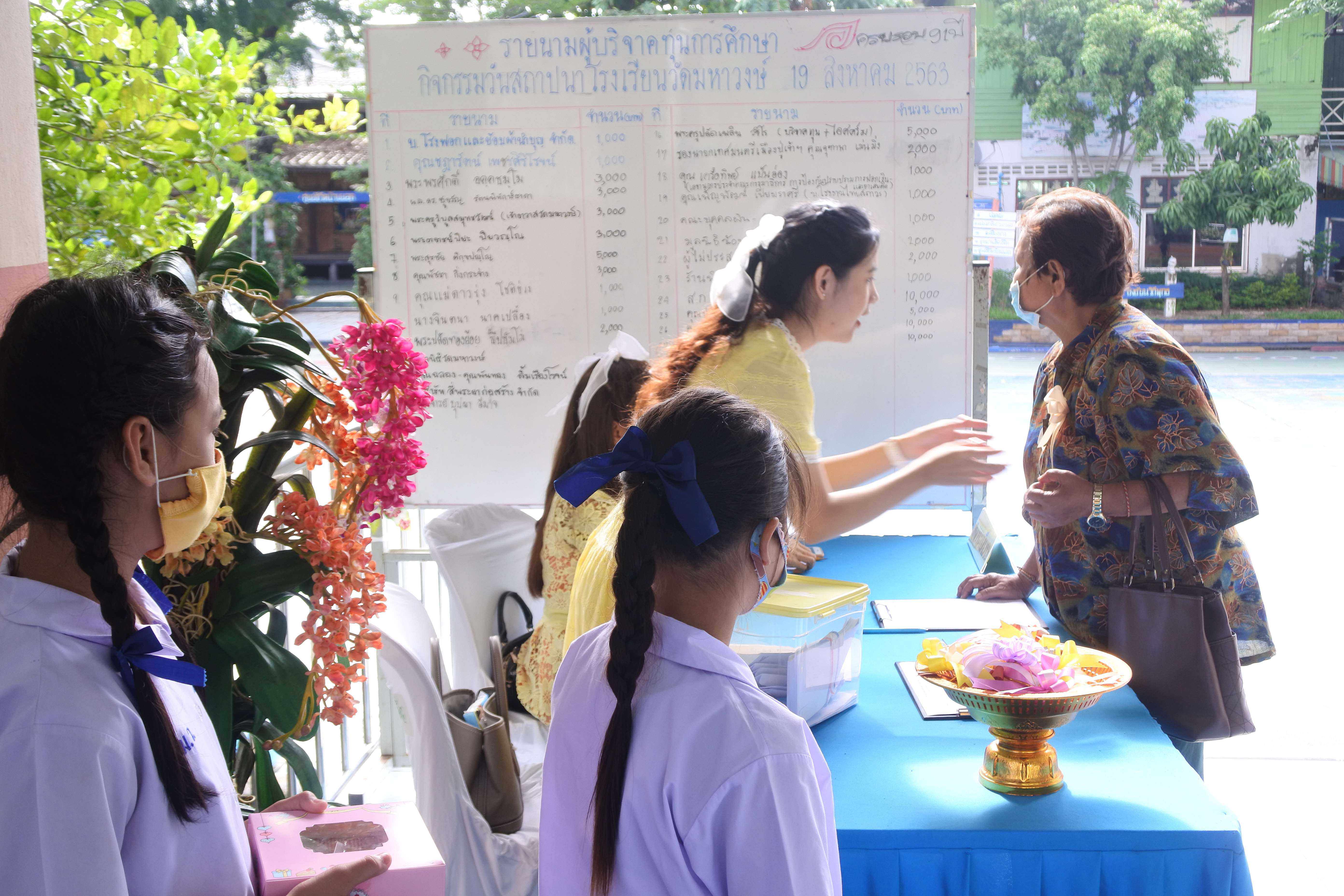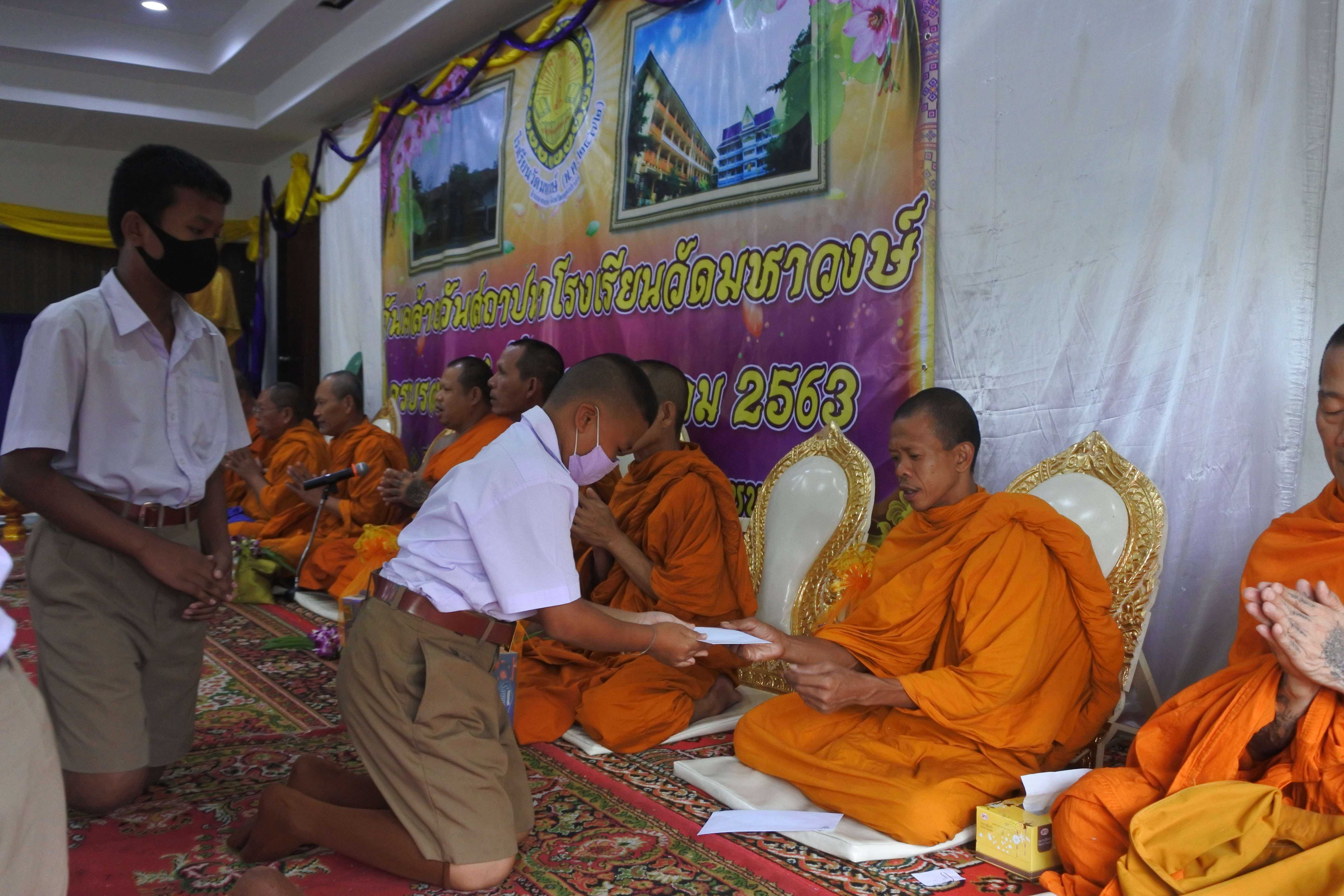 วันที่ 19 สิงหาคม 2563 เวลา 09.00 น. โรงเรียนวัดมหาวงษ์ นำโดย ดร.ชูขวัญ รัตนพิทักษ์ธาดา ผู้อำนวยการโรงเรียนวัดมหาวงษ์ พร้อมด้วยคณะครู บุคลากร จัดกิจกรรมวันคล้ายวันสถาปนาโรงเรียนวัดมหาวงษ์ ครบรอบ 91 ปี ณ ห้องประชุมอาคารมหาวงษ์น้อมเกล้า โดยมีพระครูปลัดเพลิน วชิโร ผู้ช่วยเจ้าอาวาสวัดมหาวงษ์ เป็นประธานฝ่ายสงฆ์ นางปนัดดา กิตติภัทรกุลชัย ประธานคณะกรรมการสถานศึกษาขั้นพื้นฐาน เป็นประธานฝ่ายฆราวาส ซึ่งมีพิธีเจริญพระพุทธมนต์ พิธีทำบุญถวายภัตตาหารเพลแด่พระสงฆ์ จำนวน 9 รูป พิธีมอบทุนการศึกษาจากผู้มีจิตศรัทธา คณะบุคคล บริษัท ห้างร้านต่างๆ และจากนั้นมีพิธีมุทิตาคารวะครูอาวุโส ซึ่งเป็นอดีตครูโรงเรียนวัดมหาวงษ์ โดยมีศิษย์เก่าร่วมกราบขอพรเพื่อความเป็นสิริมงคลและรำลึกถึงพระคุณครูที่เคยได้อบรมสั่งสอนให้วิชาความรู้ S:1