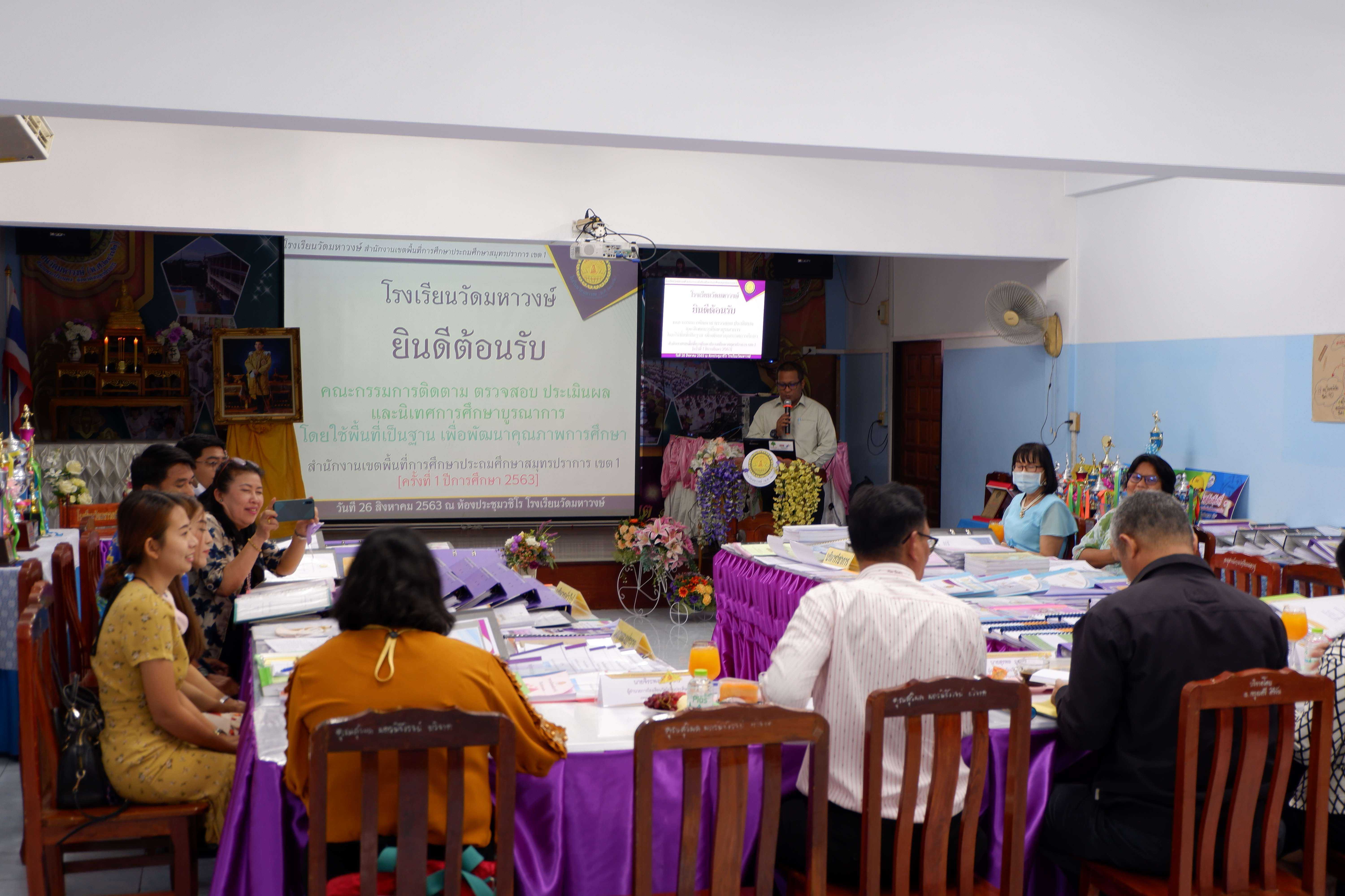 วันที่ 26 สิงหาคม 2563 เวลา 14.00 น. โรงเรียนวัดมหาวงษ์ ได้รับการติดตาม ตรวจสอบ ประเมินผล และนิเทศการศึกษาบูรณาการ โดยใช้พื้นที่เป็นฐาน เพื่อพัฒนาคุณภาพการศึกษา ครั้งที่ 1 ปีการศึกษา 2563 โดยมีคณะอนุกรรมการฯ ที่ได้รับการมอบหมายจากสำนักงานเขตพื้นที่การศึกษาประถมศึกษาสมุทรปราการ เขต 1 ประกอบไปด้วย 1. นายสุรพล มูลศรี ผู้อำนวยการโรงเรียนวัดแหลม ประธานกรรมการ 2. นายธวัช โพธิ์แก้ว ผู้อำนวยการโรงเรียนวัดสวนส้ม (สุขประชานุกูล) 3. ดร.คณาพร คมสัน ผู้อำนวยการกลุ่มนิเทศ ติดตาม และประเมินผลการจัดการศึกษา สพป.สมุทรปราการ เขต 1 กรรมการ 4. นางขวัญนลิน ใสโศก ศึกษานิเทศก์ชำนาญการ สพป.สมุทรปราการ เขต 1 กรรมการ 5. นายจิระพงศ์ ศุภศรี ผู้อำนวยการโรงเรียนวัดโยธินประดิษฐ์ กรรมการและเลขานุการ และ 6. นางตรีเนตร รัตนวราเกียรติ ครูชำนาญการพิเศษ โรงเรียนวัดบางฝ้าย ผู้แทนกลุ่มโรงเรียนปู่เจ้าสมิงพราย ให้การติดตาม ตรวจสอบ ประเมินผลฯ ณ ห้องประชุมวชิโร โรงเรียนวัดมหาวงษ์ โดยมี ดร.ชูขวัญ รัตนพิทักษ์ธาดา ผู้อำนวยการโรงเรียนวัดมหาวงษ์ พร้อมด้วยหัวหน้ากลุ่มงานบริหารทั้ง 4 กลุ่มงาน ให้การต้อนรับ พร้อมทั้งนำเสนอข้อมูลตามตัวชี้วัดครอบคลุมทั้ง 4 กลุ่มงาน ทางโรงเรียนวัดมหาวงษ์ ขอขอบพระคุณคณะอนุกรรมการฯ ทุกท่าน สำหรับคำแนะนำ รวมถึงแนวทางในการพัฒนาในด้านต่างๆ ขอขอบพระคุณมา ณ โอกาสนี้ครับ S:1