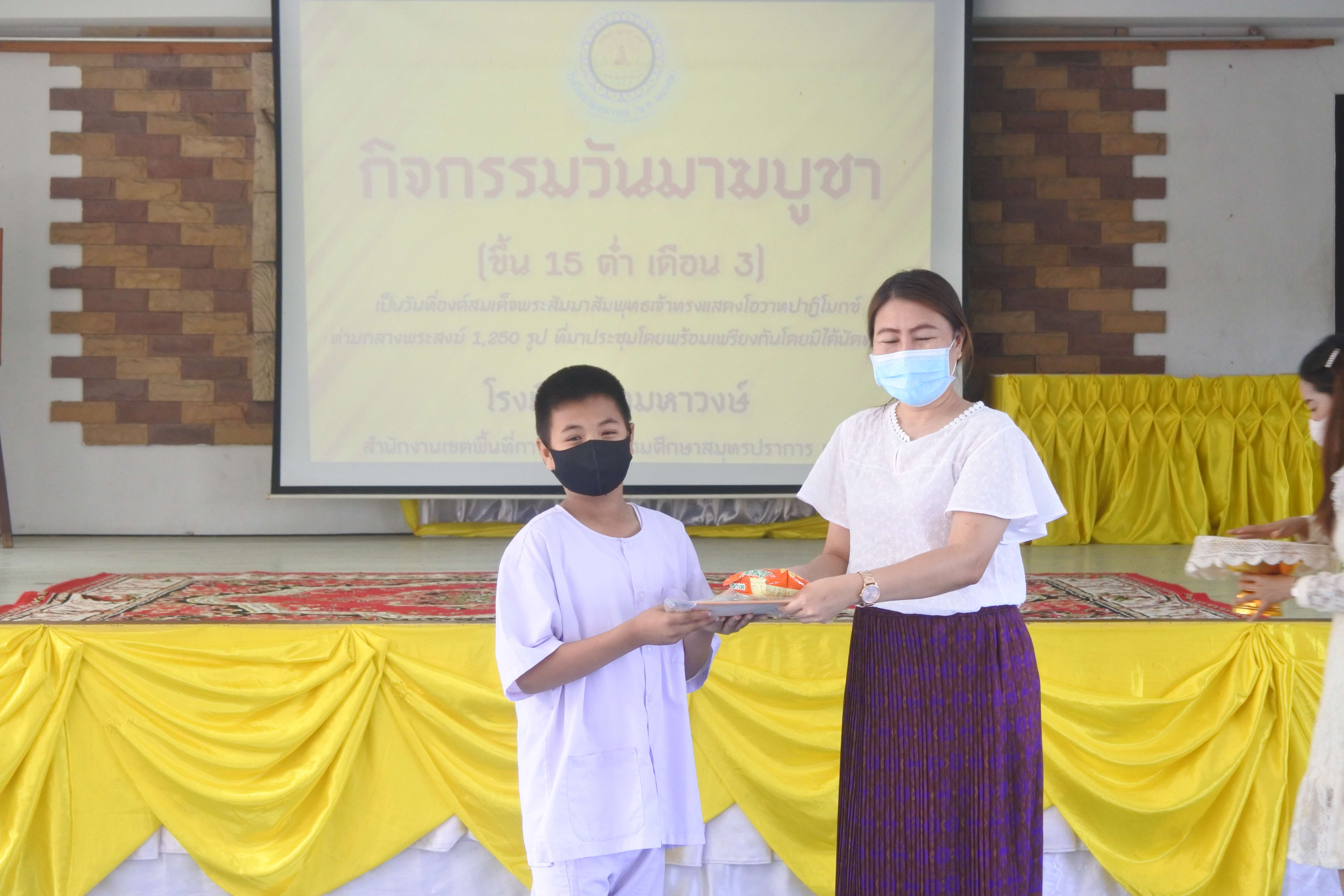 วันที่ 25 กุมภาพันธ์ 2564 โรงเรียนวัดมหาวงษ์ นำโดย ดร.ชูขวัญ รัตนพิทักษ์ธาดา ผู้อำนวยการโรงเรียนวัดมหาวงษ์ คณะครู และบุคลากร ได้จัดกิจกรรมวันมาฆบูชา ประจำปีการศึกษา 2563 ณ ห้องประชุมอาคารมหาวงษ์น้อมเกล้า โดยมีพิธีทำบุญตักบาตร และฟังพระธรรมเทศนา นอกจากนี้ยังมีกิจกรรมตอบคำถามชิงรางวัล ซึ่งกิจกรรมนี้ได้ปลูกฝังให้นักเรียนรู้จักการทำบุญ การปฏิบัติหน้าที่พุทธศาสนิกชนที่ดี รำลึกถึงคุณพระรัตนตรัยรู้จักและสามารถน้อมนำคำสอนอันเป็นหัวใจหลักของพระพุทธศาสนามาเป็นหลักปฏิบัติในการดำเนินชีวิตได้ ทางโรงเรียนยังปฏิบัติตามมาตรการป้องกันและเฝ้าระวังการแพร่ระบาดของโรคติดเชื้อไวรัสโคโรนา 2019 (COVID-19) อย่างเคร่งครัด S:1