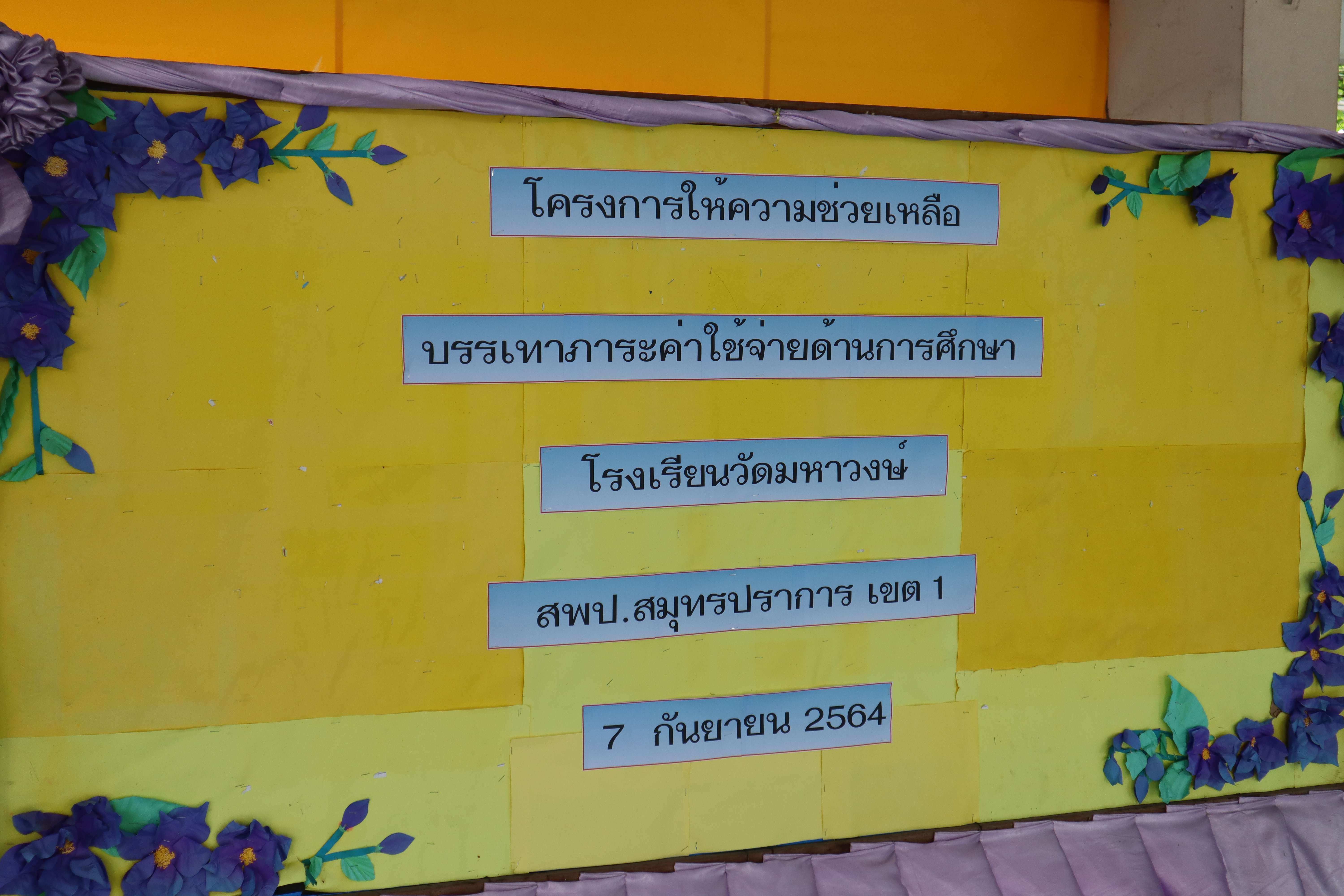 วันที่ 7 กันยายน 2564 โรงเรียนวัดมหาวงษ์ นำโดย ดร.ชูขวัญ รัตนพิทักษ์ธาดา ผู้อำนวยการโรงเรียนวัดมหาวงษ์ พร้อมด้วยครูประจำชั้น ได้มอบเงินตามโครงการบรรเทาภาระค่าใช้จ่ายด้านการศึกษาแก่ผู้ปกครองในสถานการณ์การแพร่ระบาดของโรคติดเชื้อไวรัสโคโรนา 2019 (COVID-19) ตามนโยบายกระทรวงศึกษาธิการ คนละ 2,000 บาท โดยมีผู้ปกครองทุกระดับชั้นเดินทางมารับเงิน ณ ห้องประชุมอาคารมหาวงษ์น้อมเกล้า โดยปฏิบัติตามมาตรการป้องกันการแพร่ระบาดของโรคติดเชื้อไวรัสโคโรนา 2019 (COVID-19) อย่างเคร่งครัด S:1