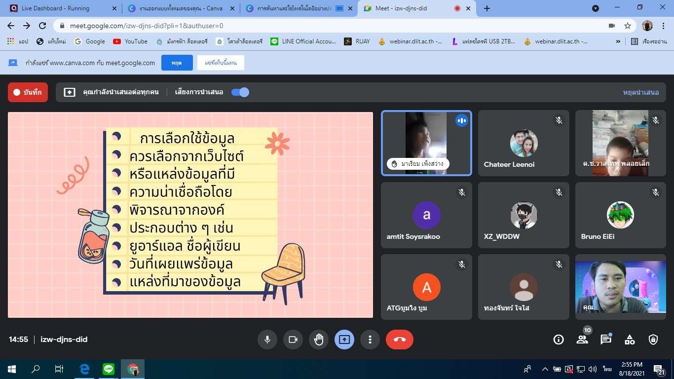 การจัดการเรียนการสอนในสถานการณ์การแพร่ระบาดของโรคติดเชื้อไวรัสโคโรนา 2019 (COVID-19) ภาคเรียนที่ 1 ปีการศึกษา 2564 (เดือนสิงหาคม 2564) S:1