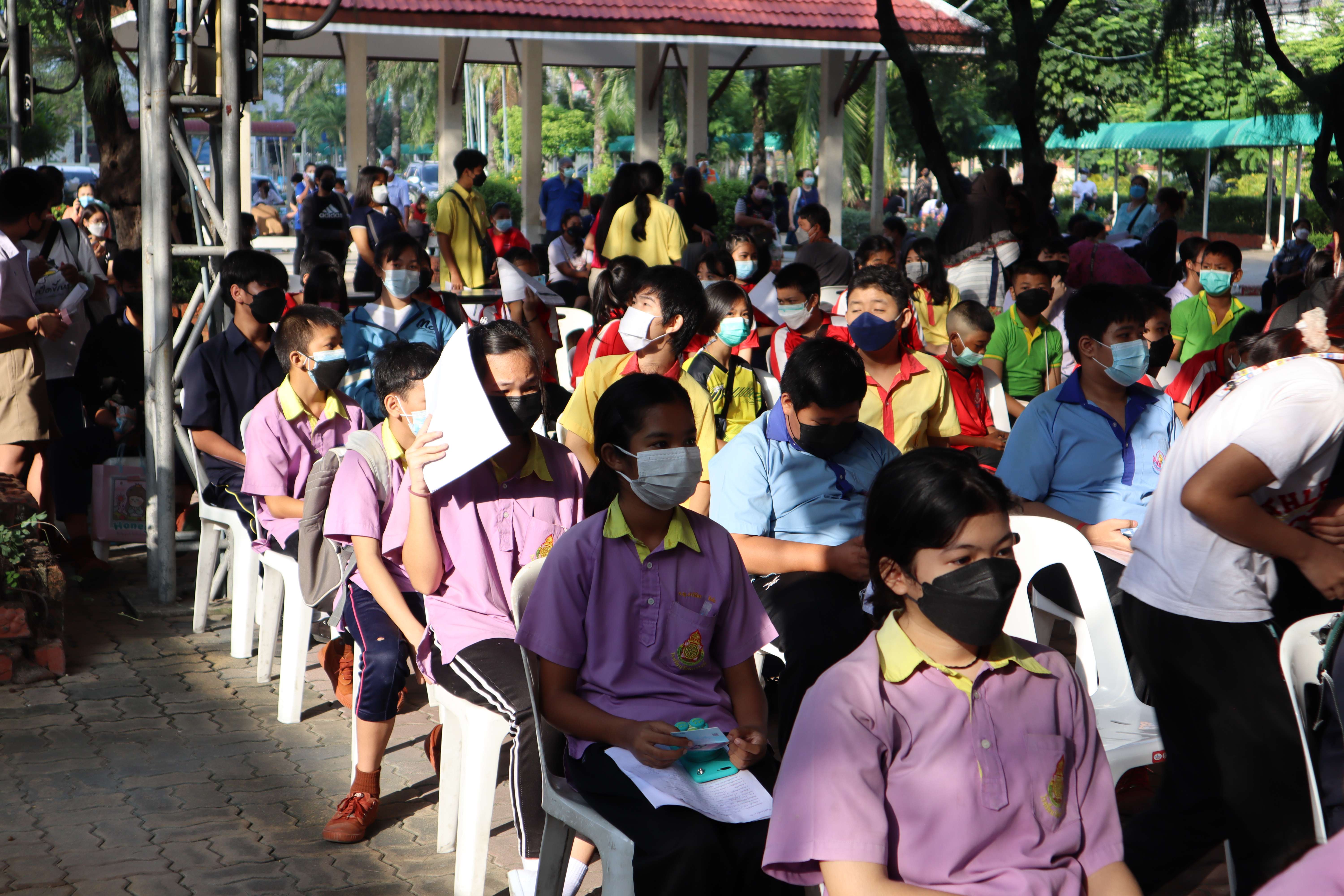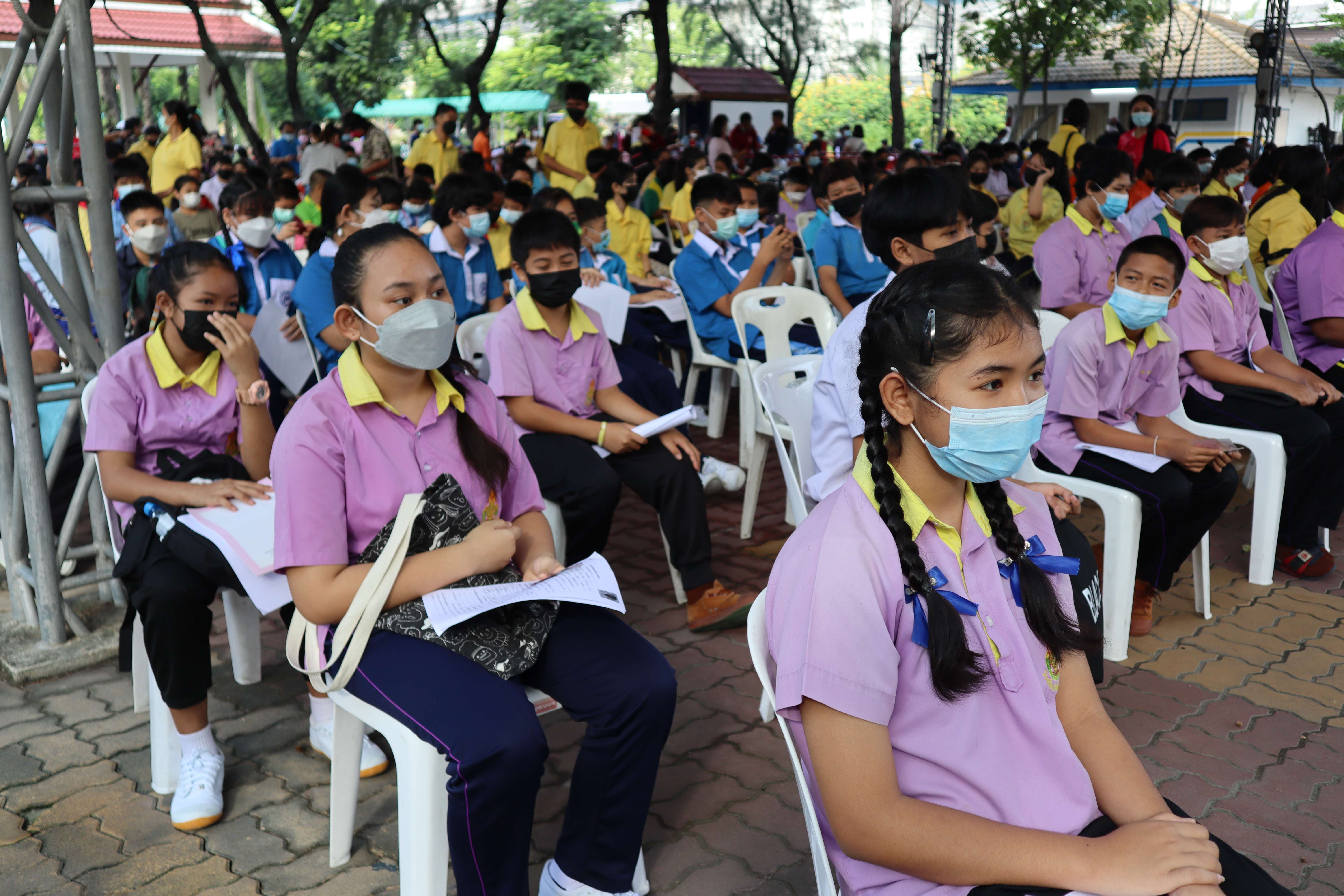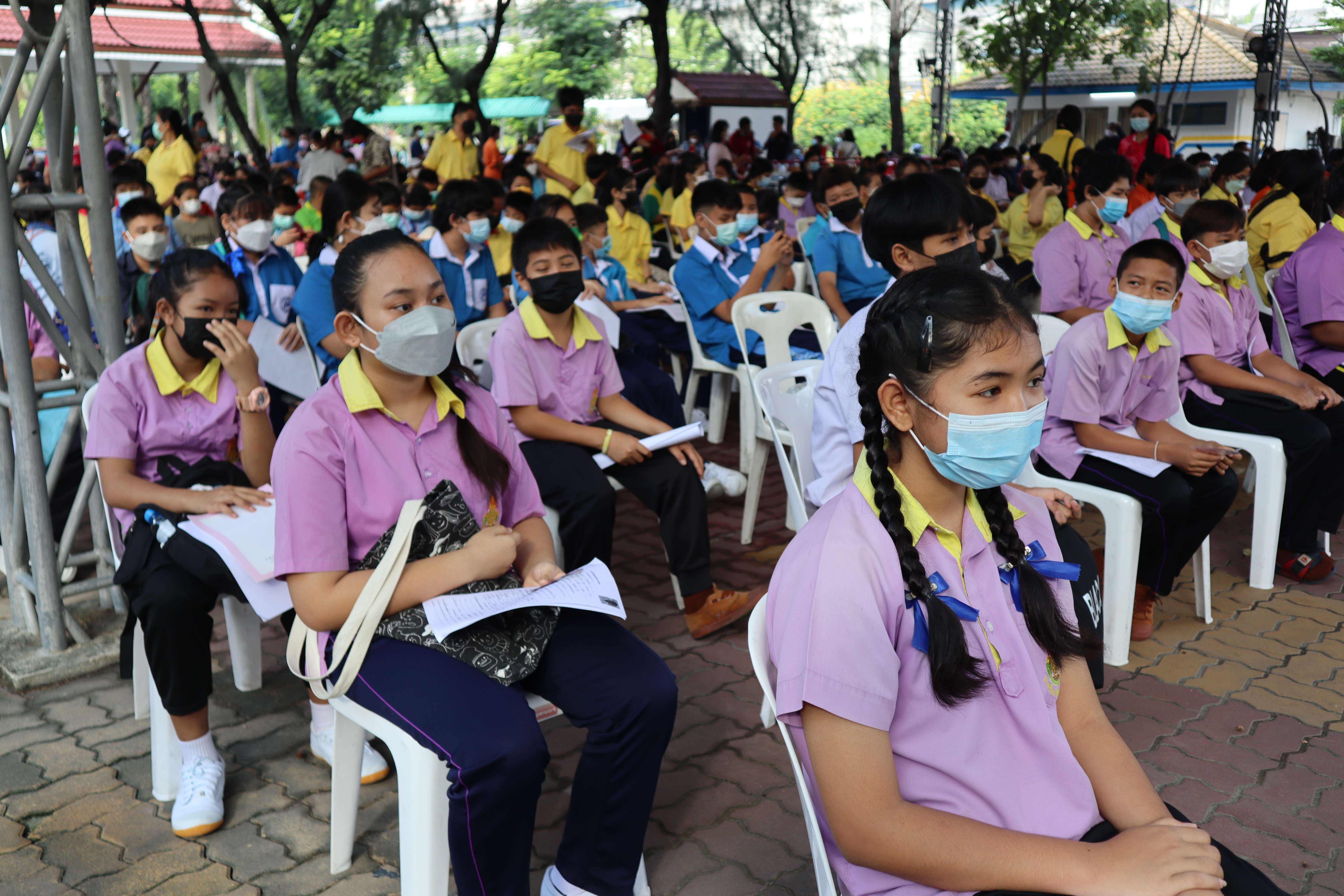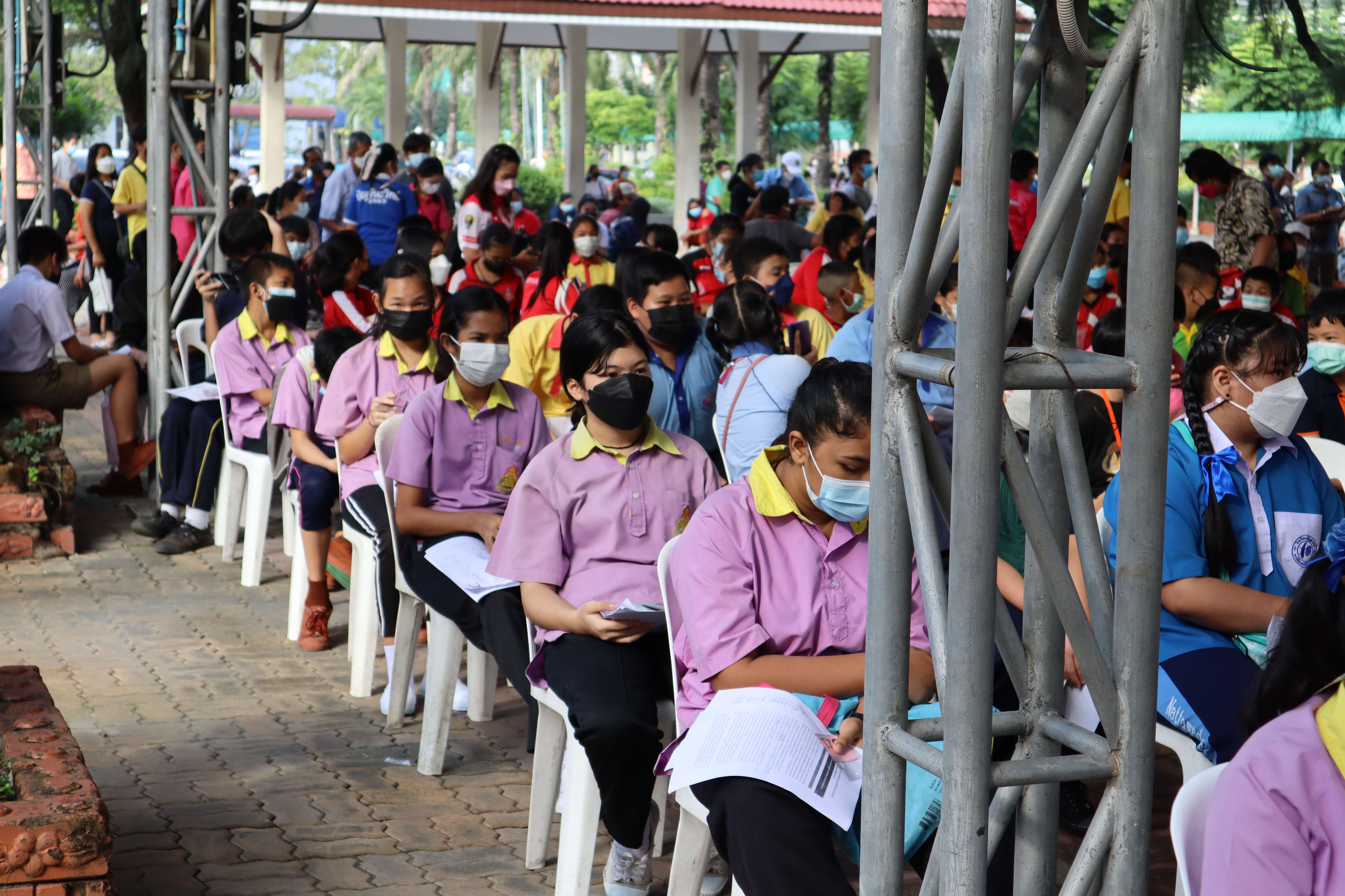 นักเรียนที่มีอายุครบ 12 ปีบริบูรณ์ เข้ารับการฉีดวัคซีนไฟเซอร์ (Pfizer) เข็มที่ 1