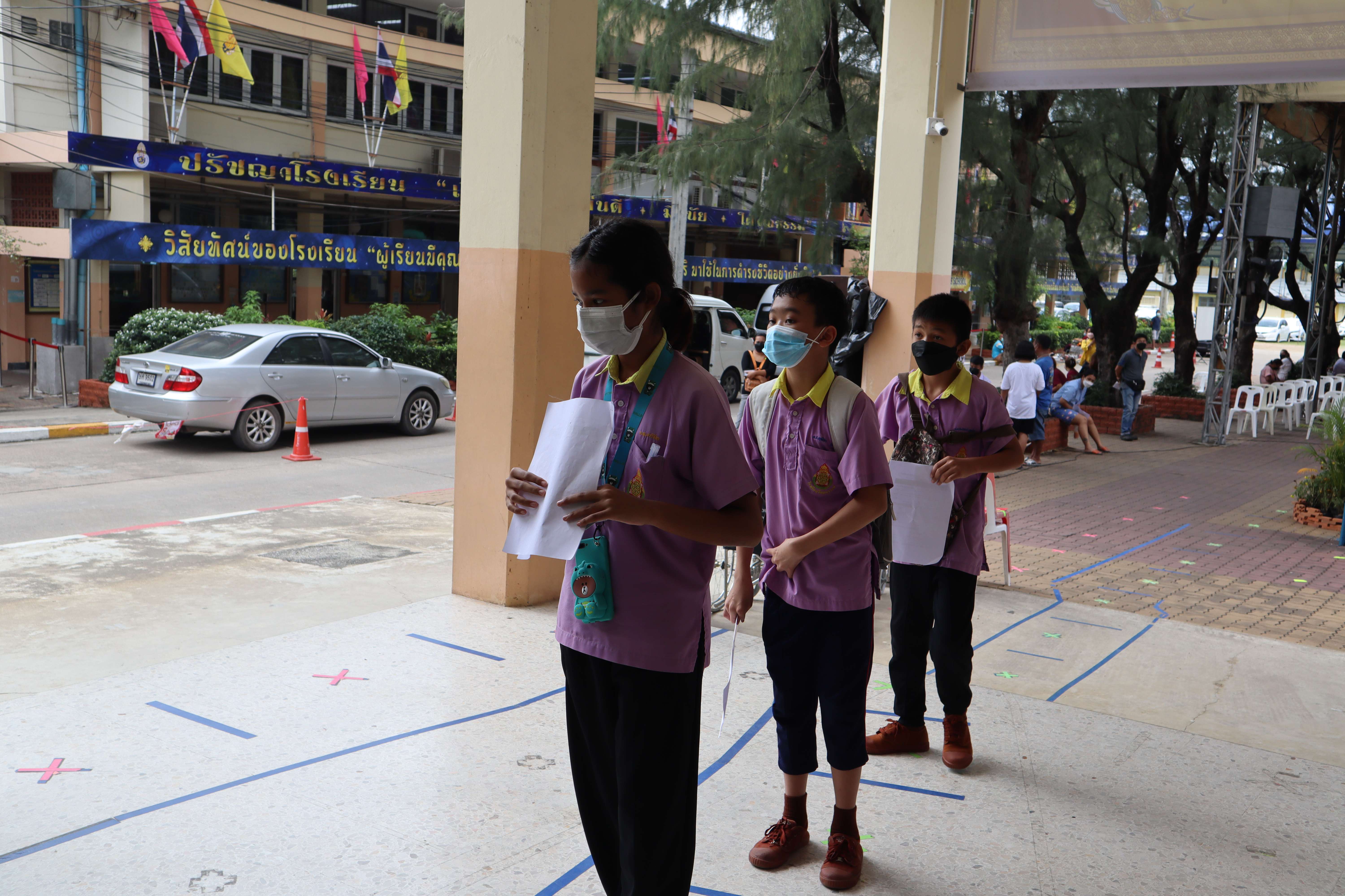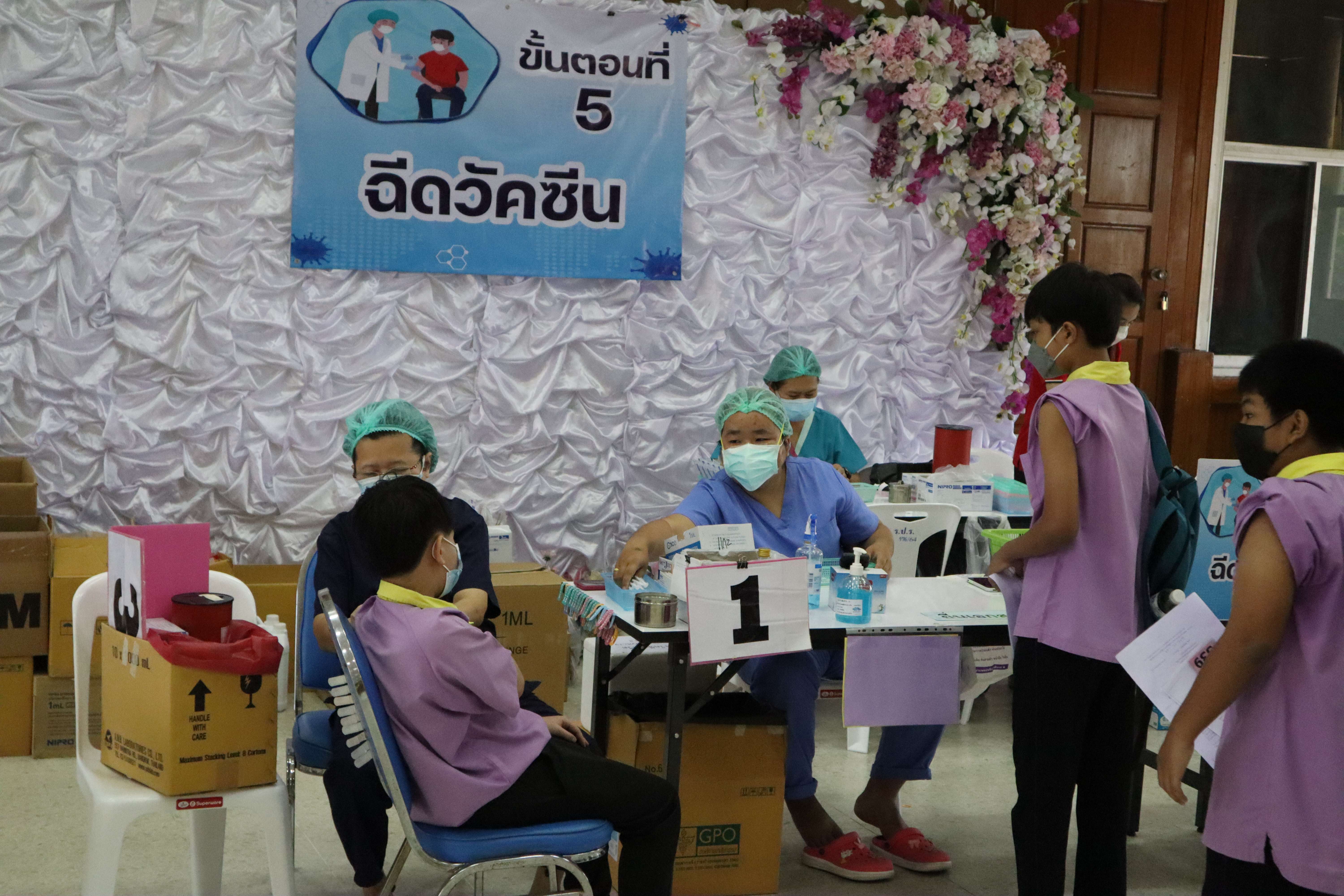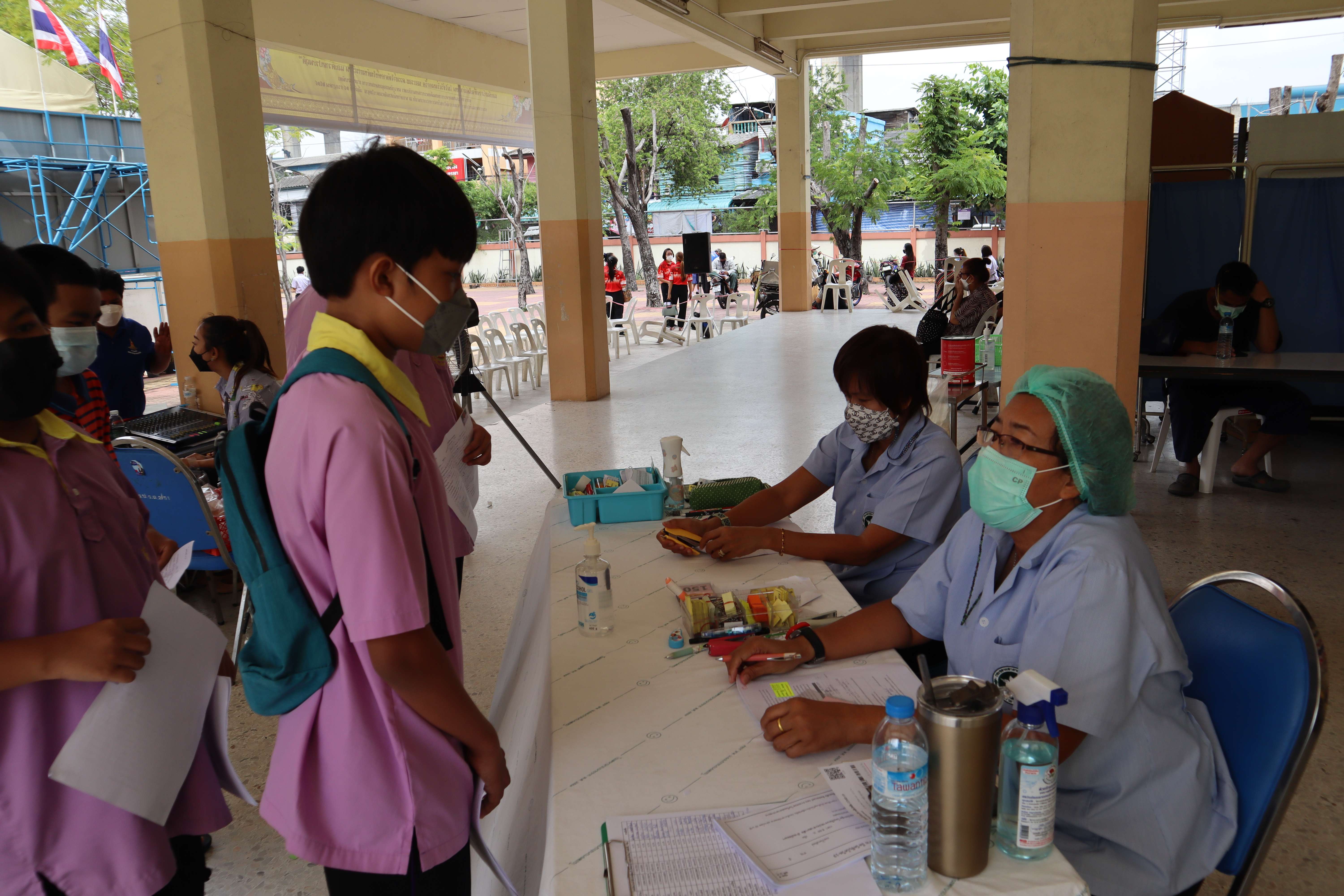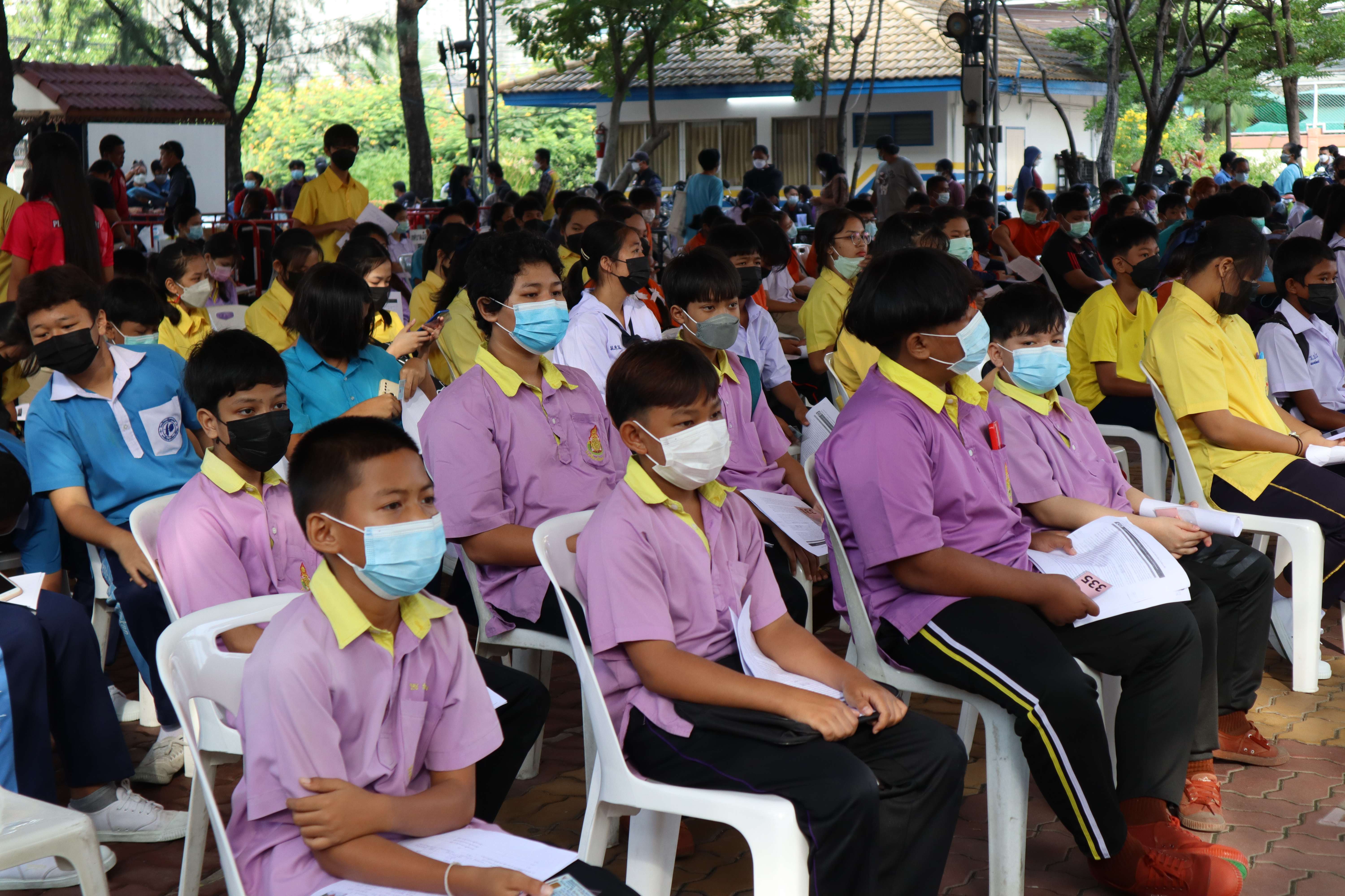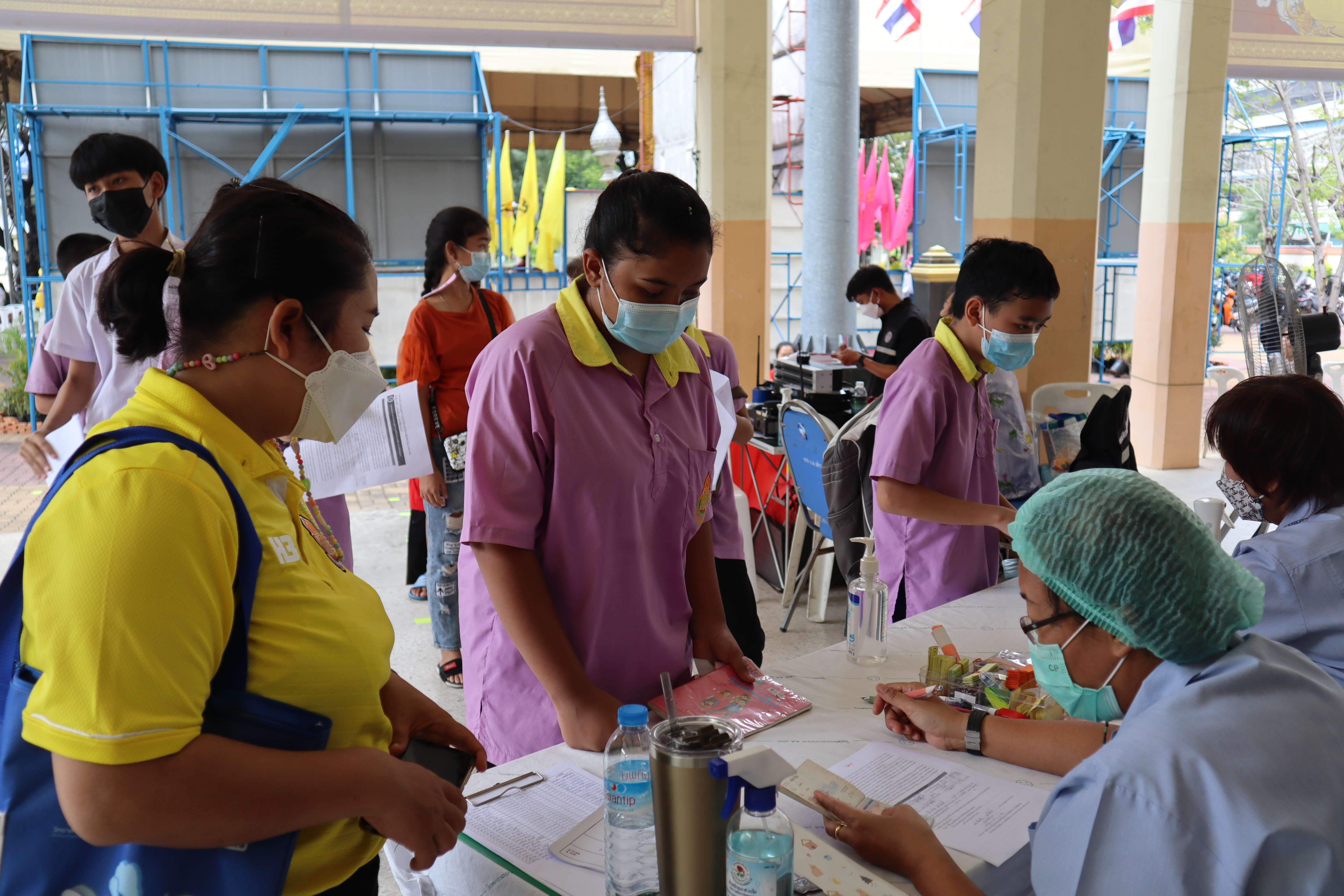 นักเรียนที่มีอายุครบ 12 ปีบริบูรณ์ เข้ารับการฉีดวัคซีนไฟเซอร์ (Pfizer) เข็มที่ 1