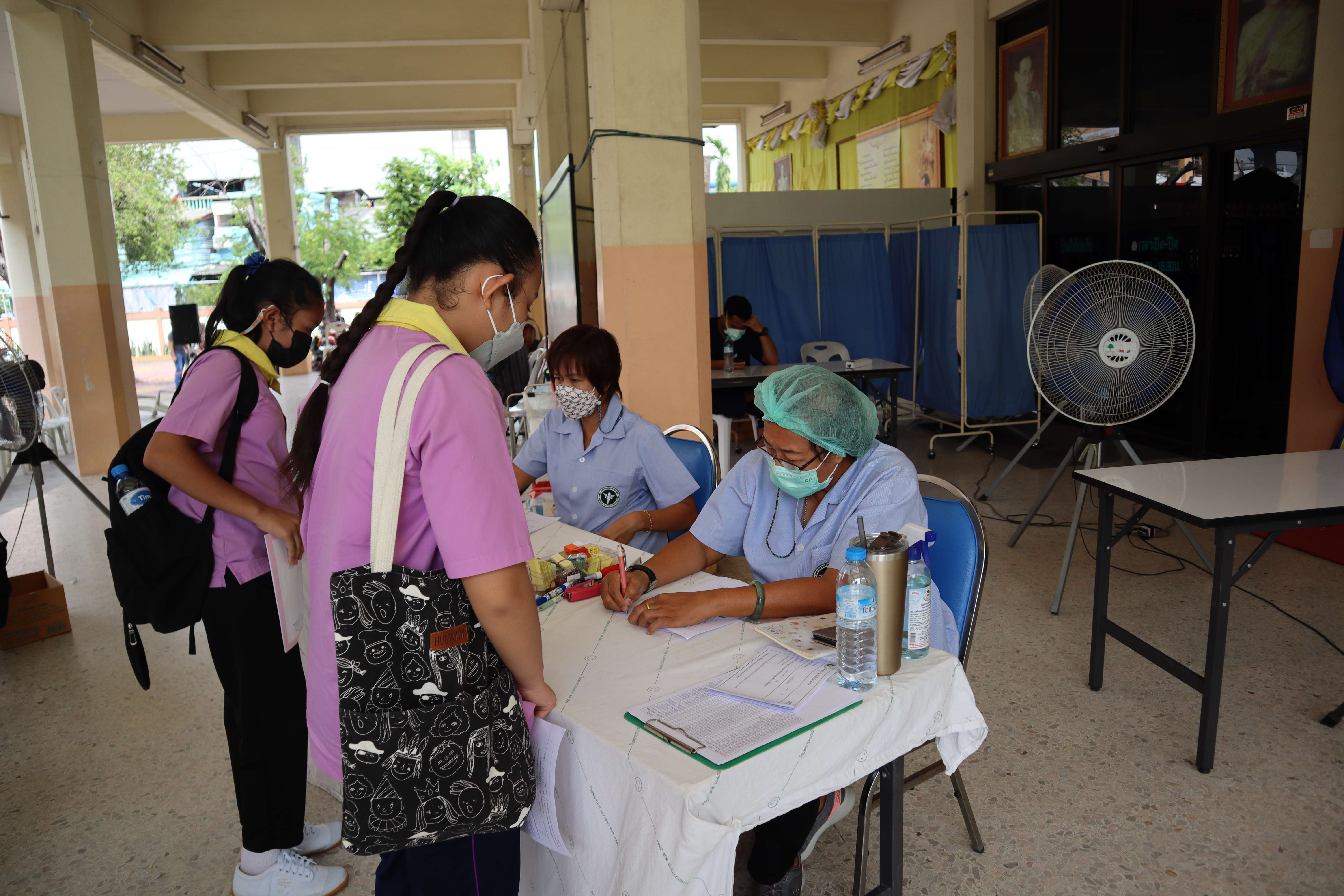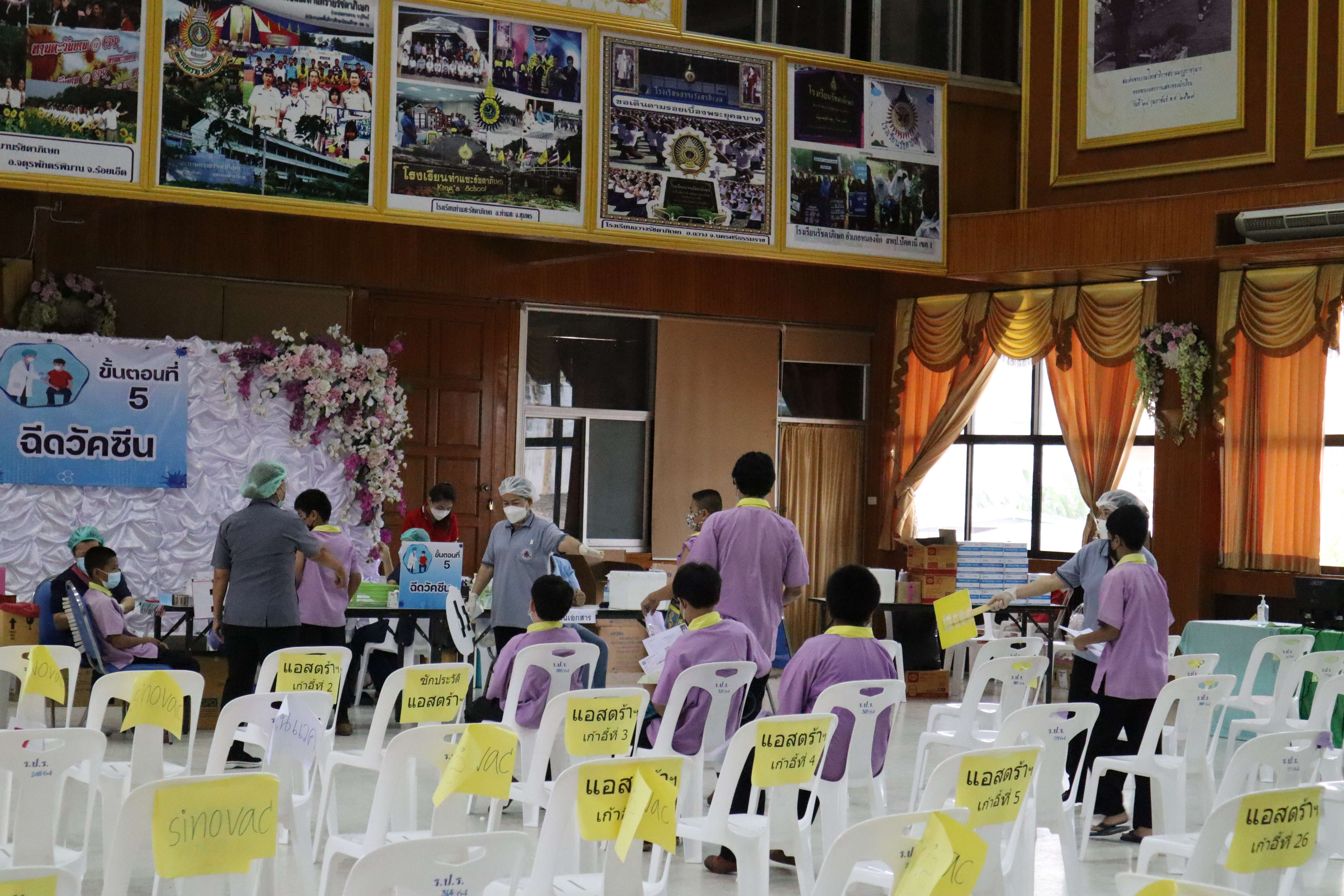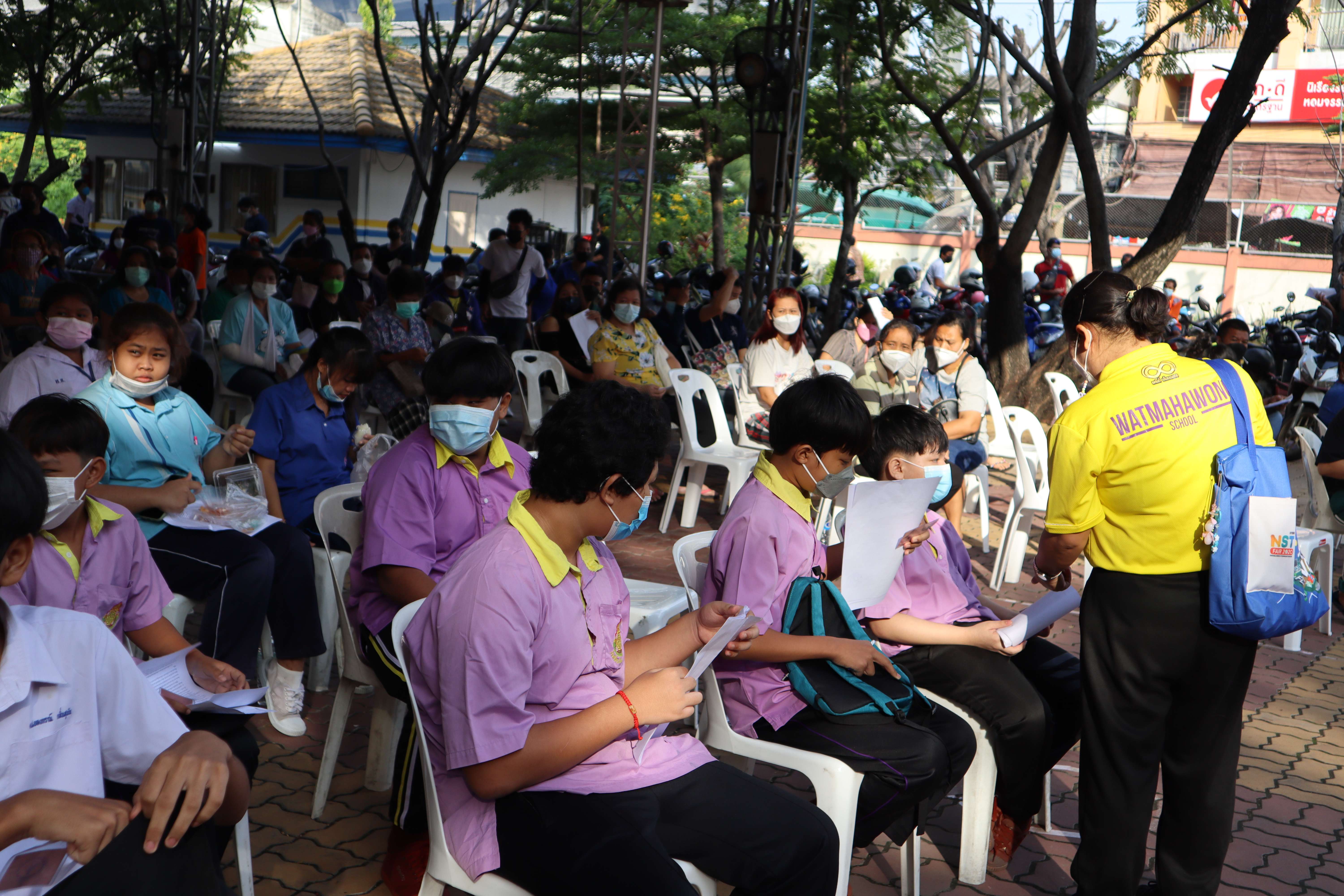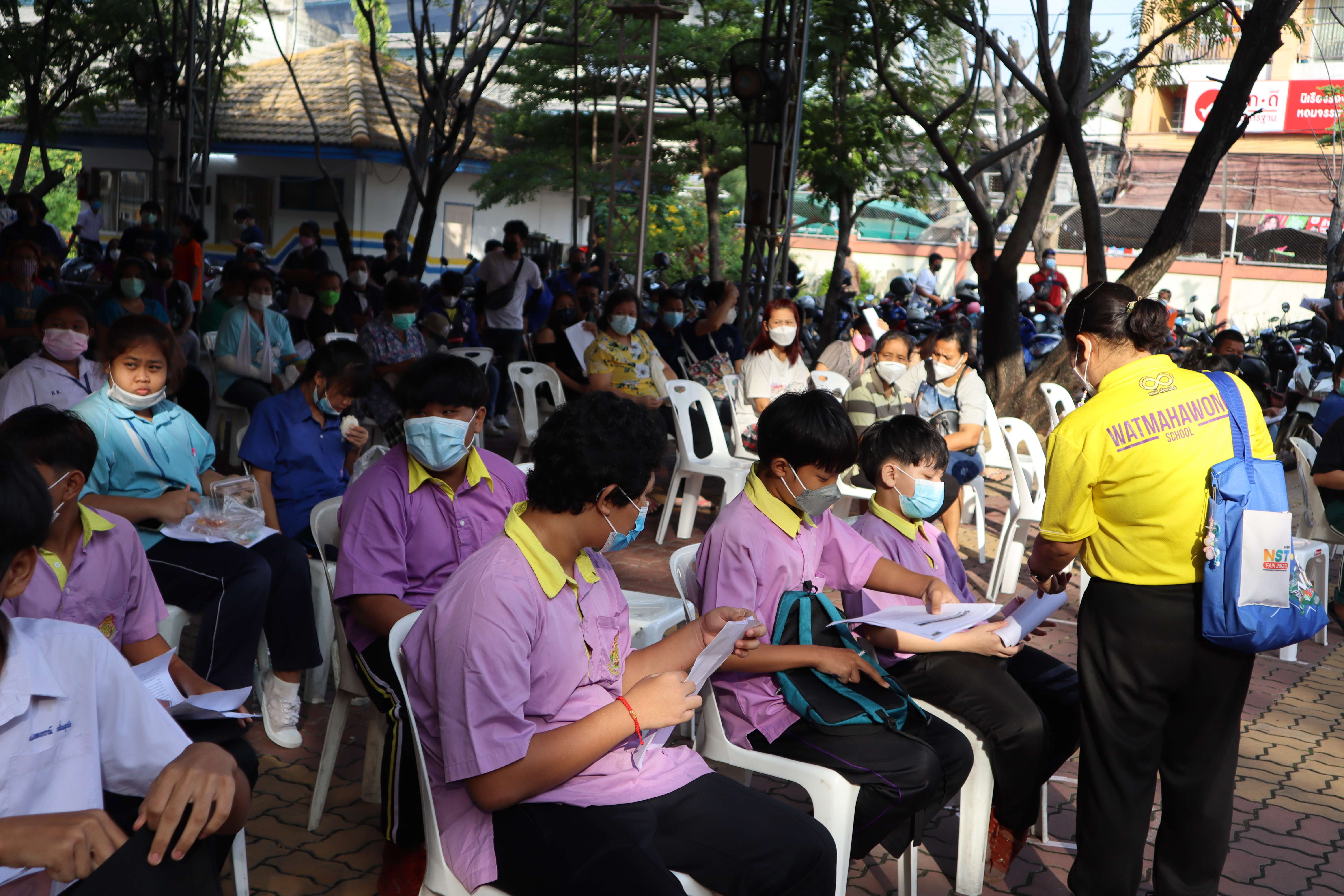 นักเรียนที่มีอายุครบ 12 ปีบริบูรณ์ เข้ารับการฉีดวัคซีนไฟเซอร์ (Pfizer) เข็มที่ 1