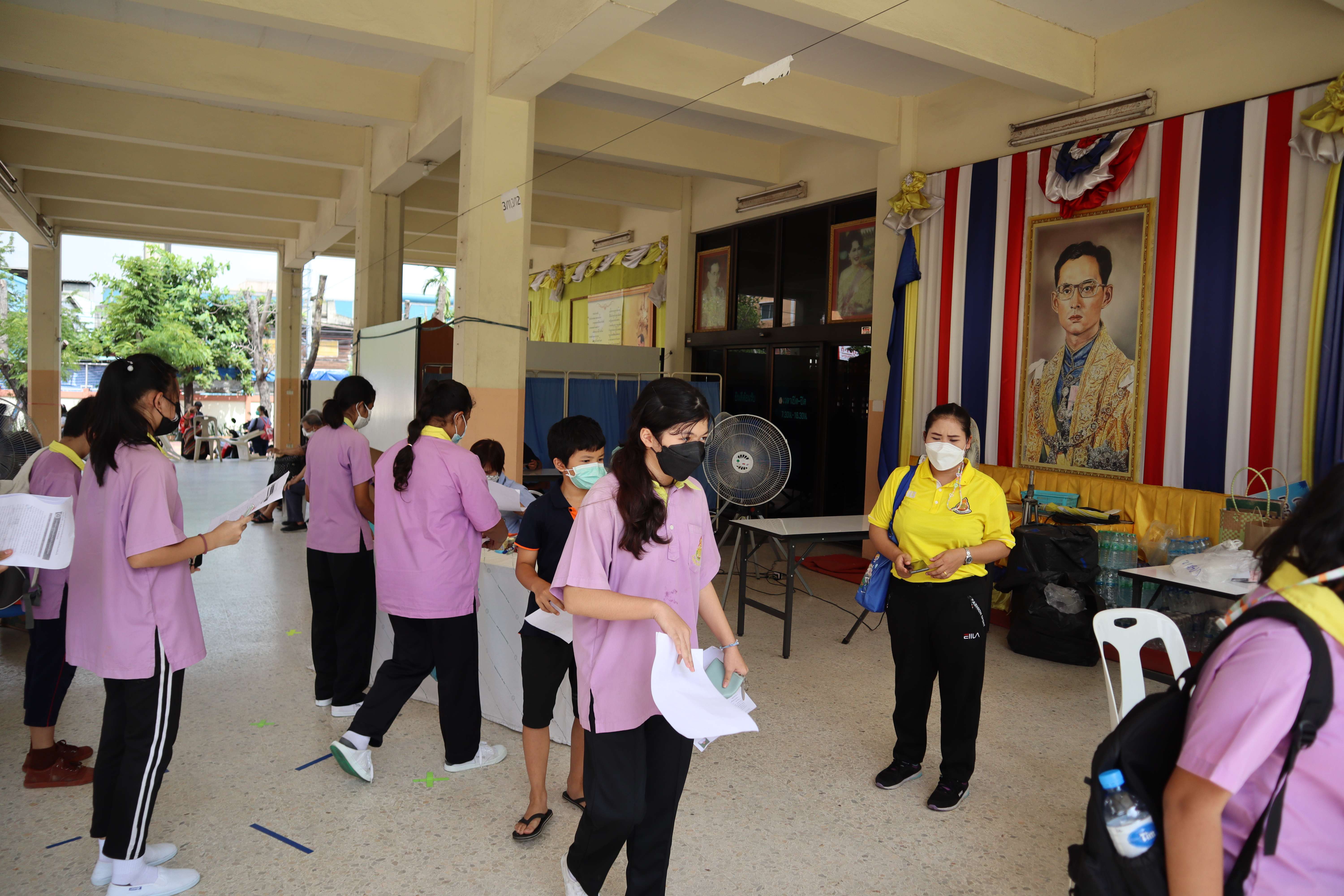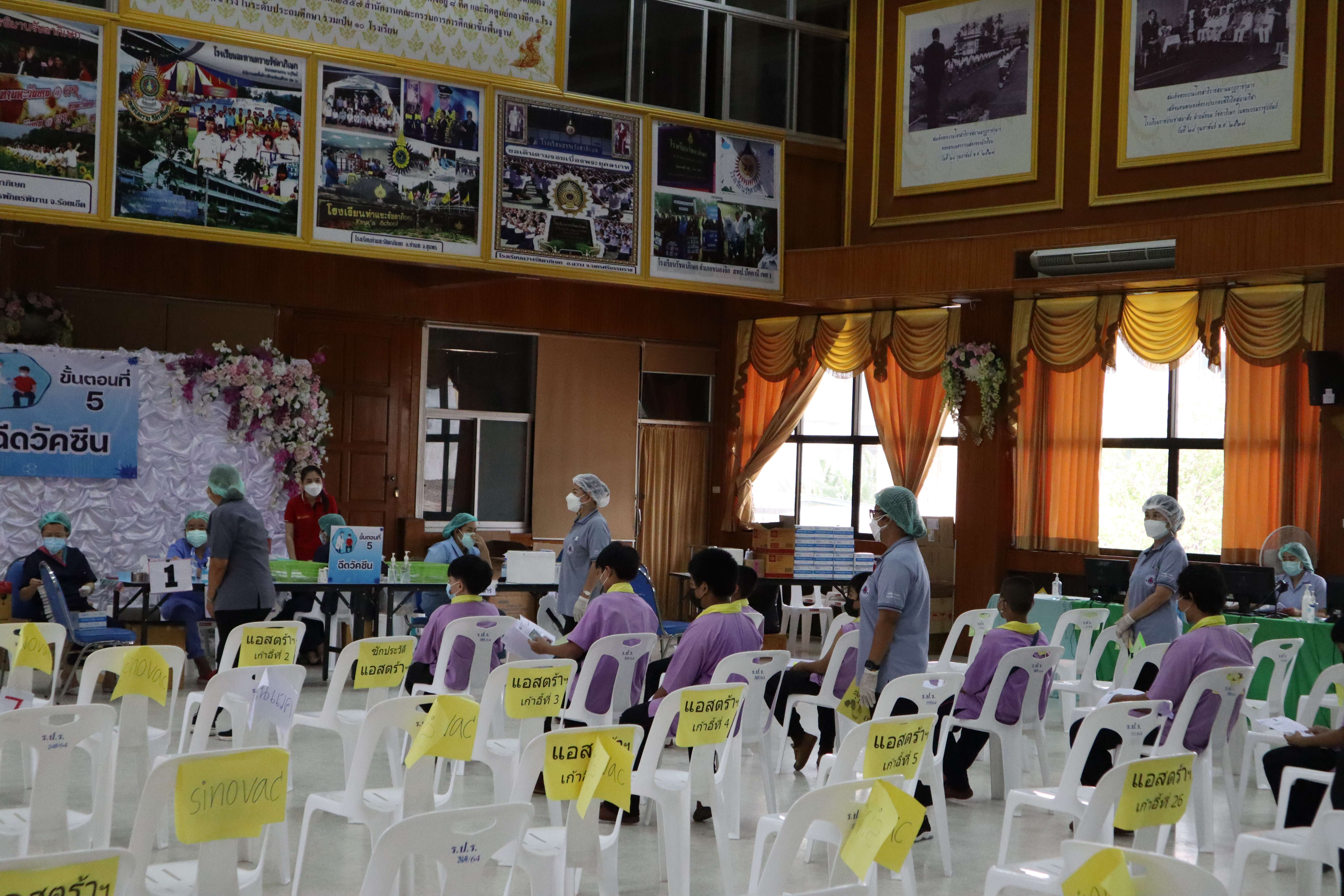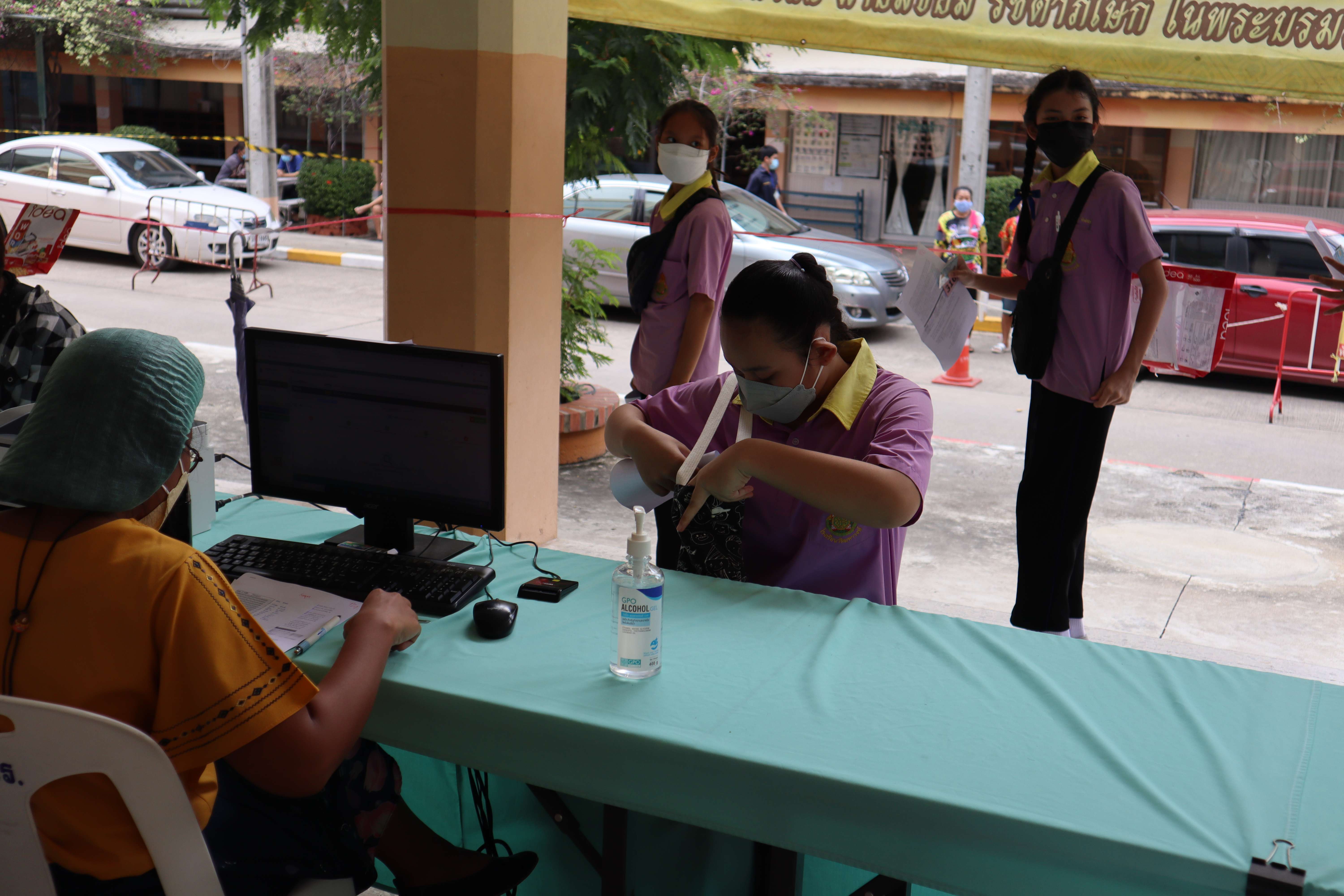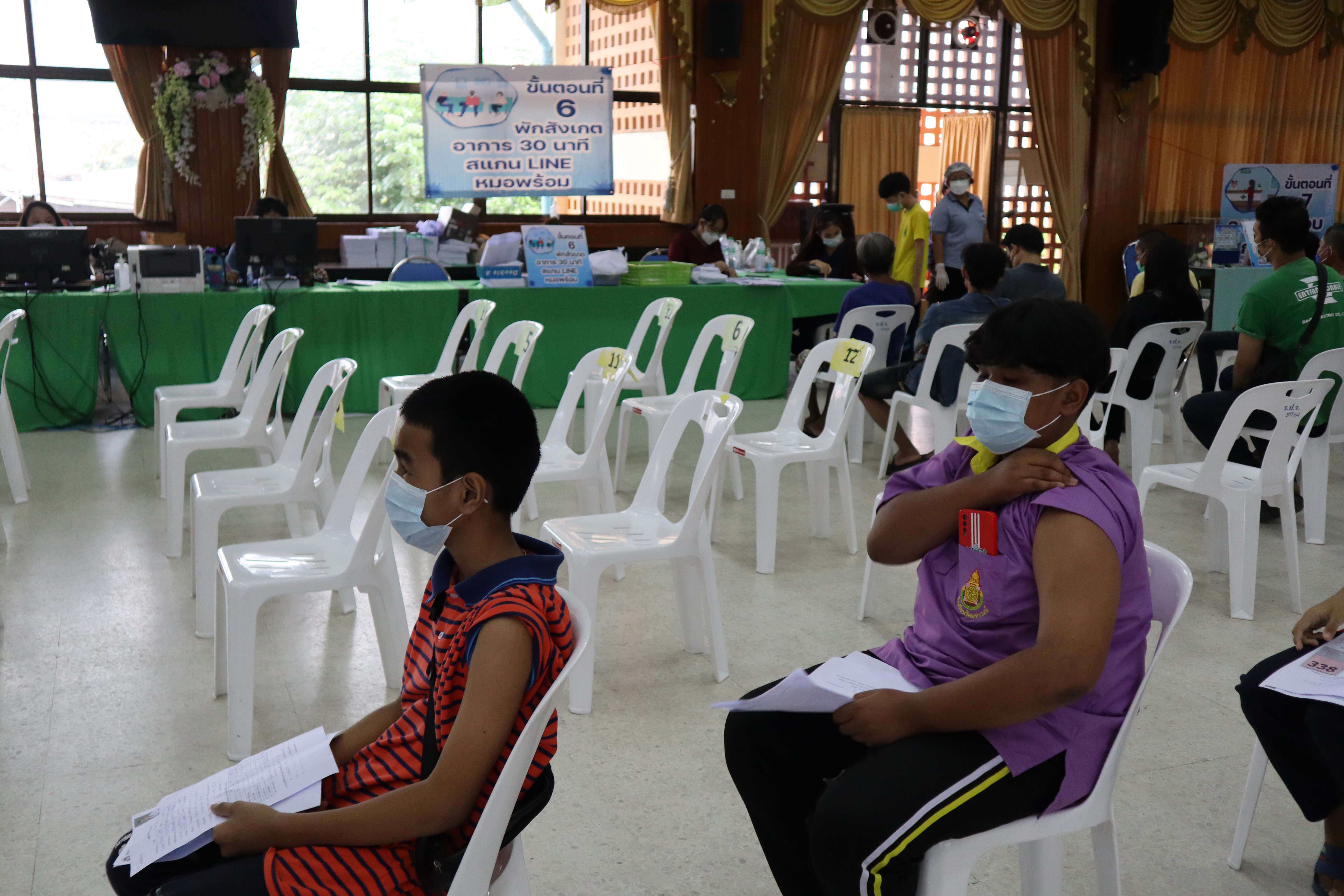 นักเรียนที่มีอายุครบ 12 ปีบริบูรณ์ เข้ารับการฉีดวัคซีนไฟเซอร์ (Pfizer) เข็มที่ 1