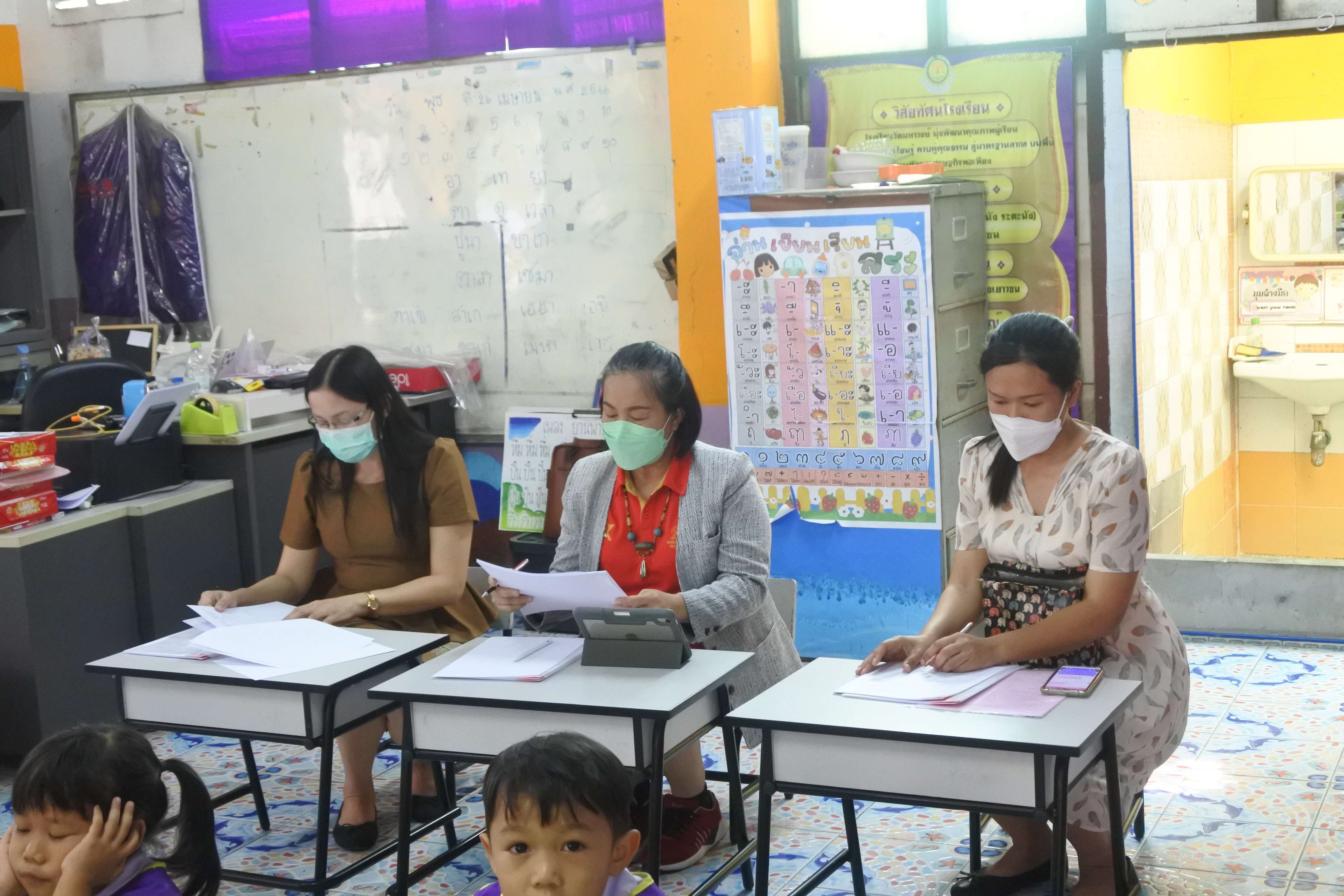 วันที่ 23 พฤษภาคม 2566 โรงเรียนวัดมหาวงษ์ ได้ดำเนินการประเมินการเตรียมความพร้อมและพัฒนาอย่างเข้ม ตำแหน่ง ครูผู้ช่วย ครั้งที่ 2 ได้แก่ 1. นางสาวอรทัย วรสารสุวรรณ วิชาเอกปฐมวัย 2. นางสาวปริชญา สำราญใจ วิชาเอกภาษาอังกฤษ และ 3. นางสาวปรารถนา มุกดาหาร วิชาเอกภาษาไทย โดยมีคณะกรรมการประเมิน ได้แก่ 1. นางสาวนภาพร ศรีภิรมย์ ผู้อำนวยการโรงเรียนวัดมหาวงษ์ 2. นางขวัญนลิน ใสโศก ศึกษานิเทศก์ขำนาญการ สพป.สมุทรปราการ เขต 1 3. นางสาวภรณ์ทิพย์ ขำมาก ครูชำนาญการ โรงเรียนวัดมหาวงษ์ การประเมินสำเร็จลุล่วงไปได้ด้วยดี ขอขอบพระคุณคณะกรรมการประเมินทุกท่านมา ณ โอกาสนี้ S:1