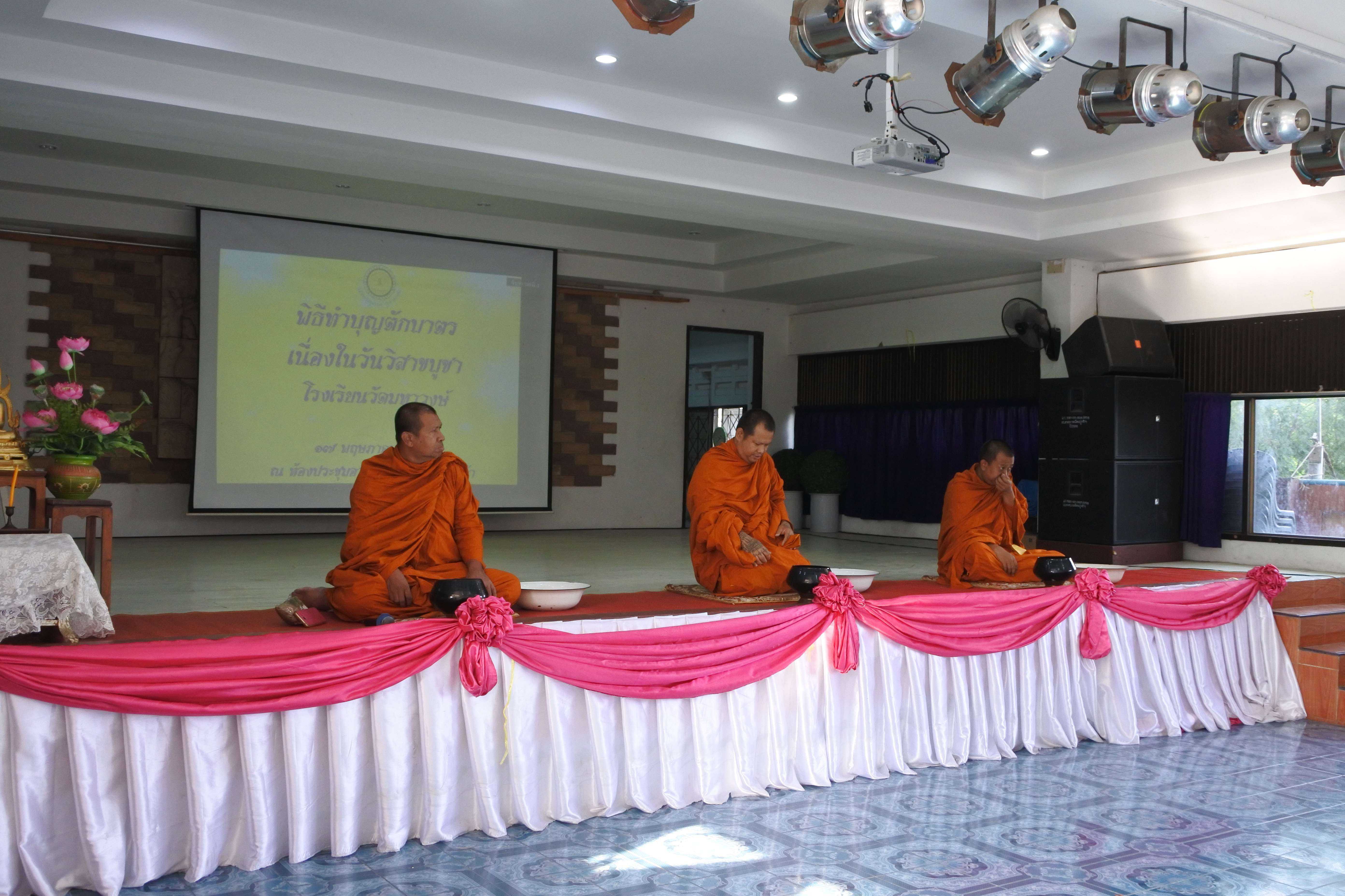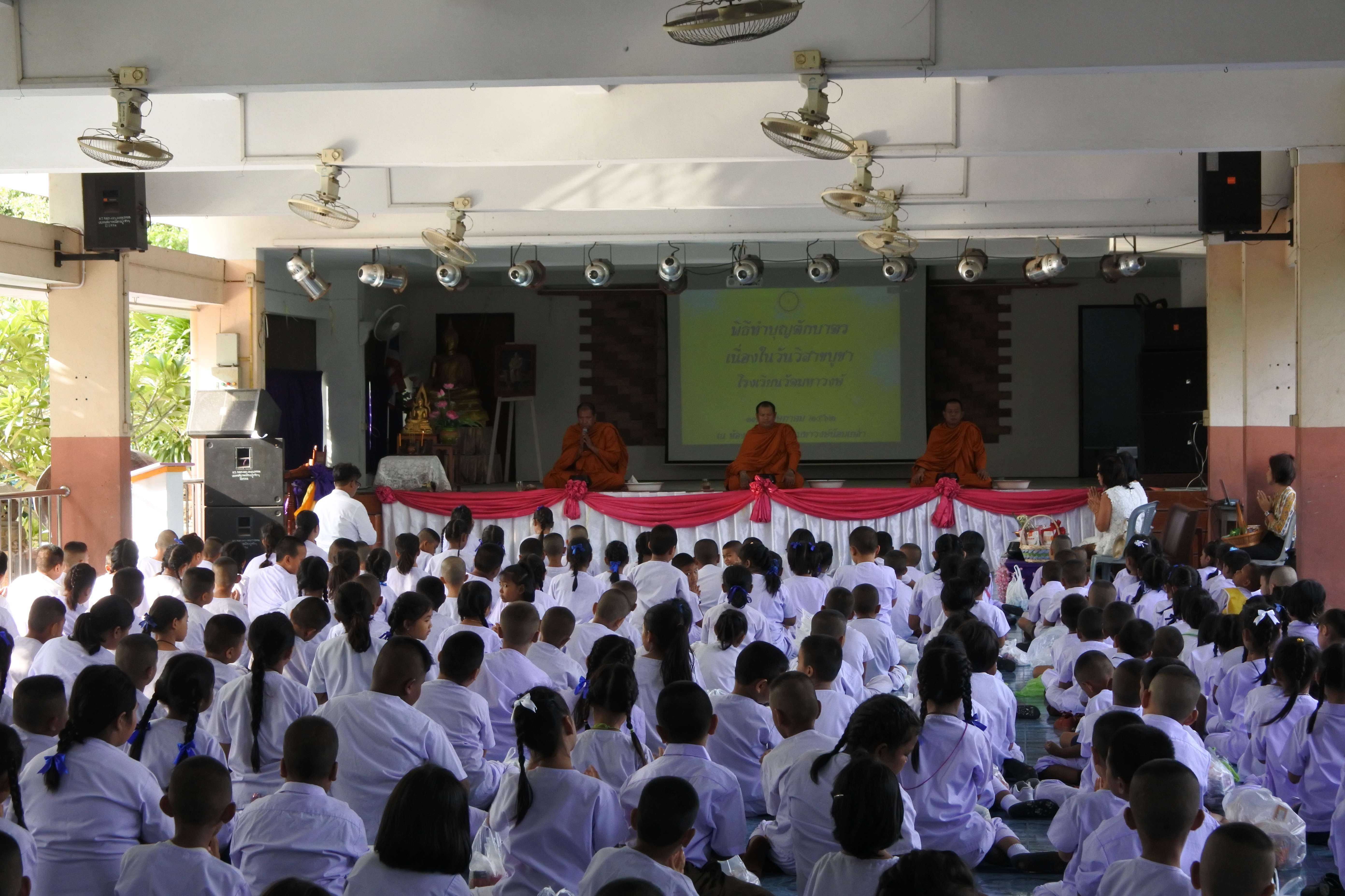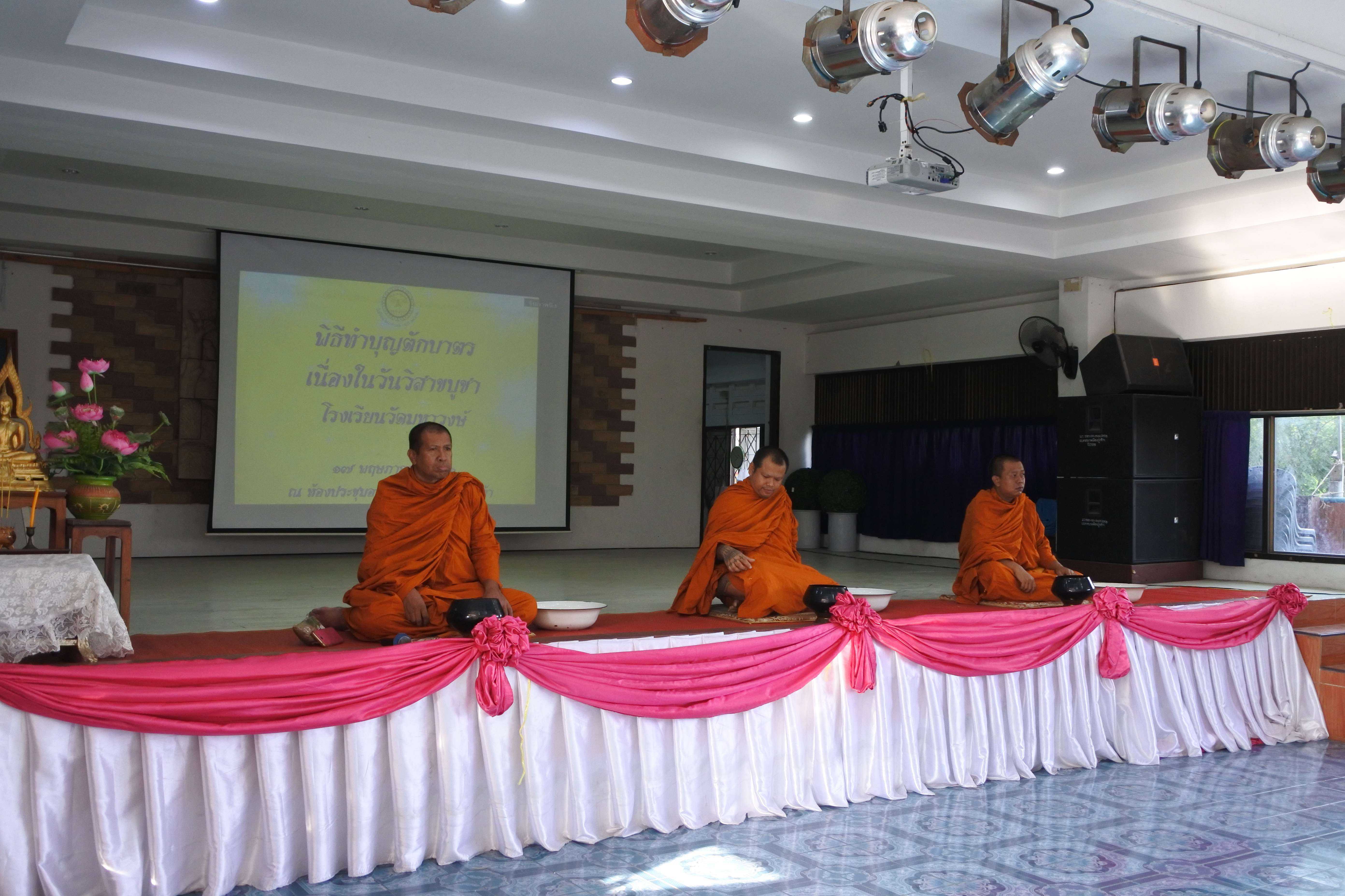 วันที่ ๑๗ พฤษภาคม พ.ศ.๒๕๖๒ โรงเรียนวัดมหาวงษ์ จัดกิจกรรมเนื่องในวันสำคัญทางพระพุทธศาสนา วันวิสาขบูชา จัดพิธีตักบาตร พระสงฆ์ ๓ รูป โดยพระครูปลัดเพลิน วชิโร ผู้ช่วยเจ้าอาวาสวัดมหาวงษ์ เป็นประธานฝ่ายสงฆ์ ดร.ชูขวัญ รัตนพิทักษ์ธาดา ผู้อำนวยการโรงเรียนวัดมหาวงษ์ เป็นประธานฝ่ายฆราวาส พร้อมด้วยคณะครู บุคลากร นักเรียน และผู้ปกครอง ร่วมทำบุญตักบาตร ฟังพระธรรมเทศนา ณ ห้องประชุมอาคารมหาวงษ์น้อมเกล้า และเวียนเทียนรอบอุโบสถวัดมหาวงษ์ เพื่อปลูกฝังให้นักเรียนรู้จักหน้าที่ของพุทธศาสนิกชน รู้จักทำบุญเข้าวัด และนำหลักธรรมคำสอนขององค์พระสัมมาสัมพุทธเจ้ามาเป็นหลักในการดำเนินชีวิต S:1