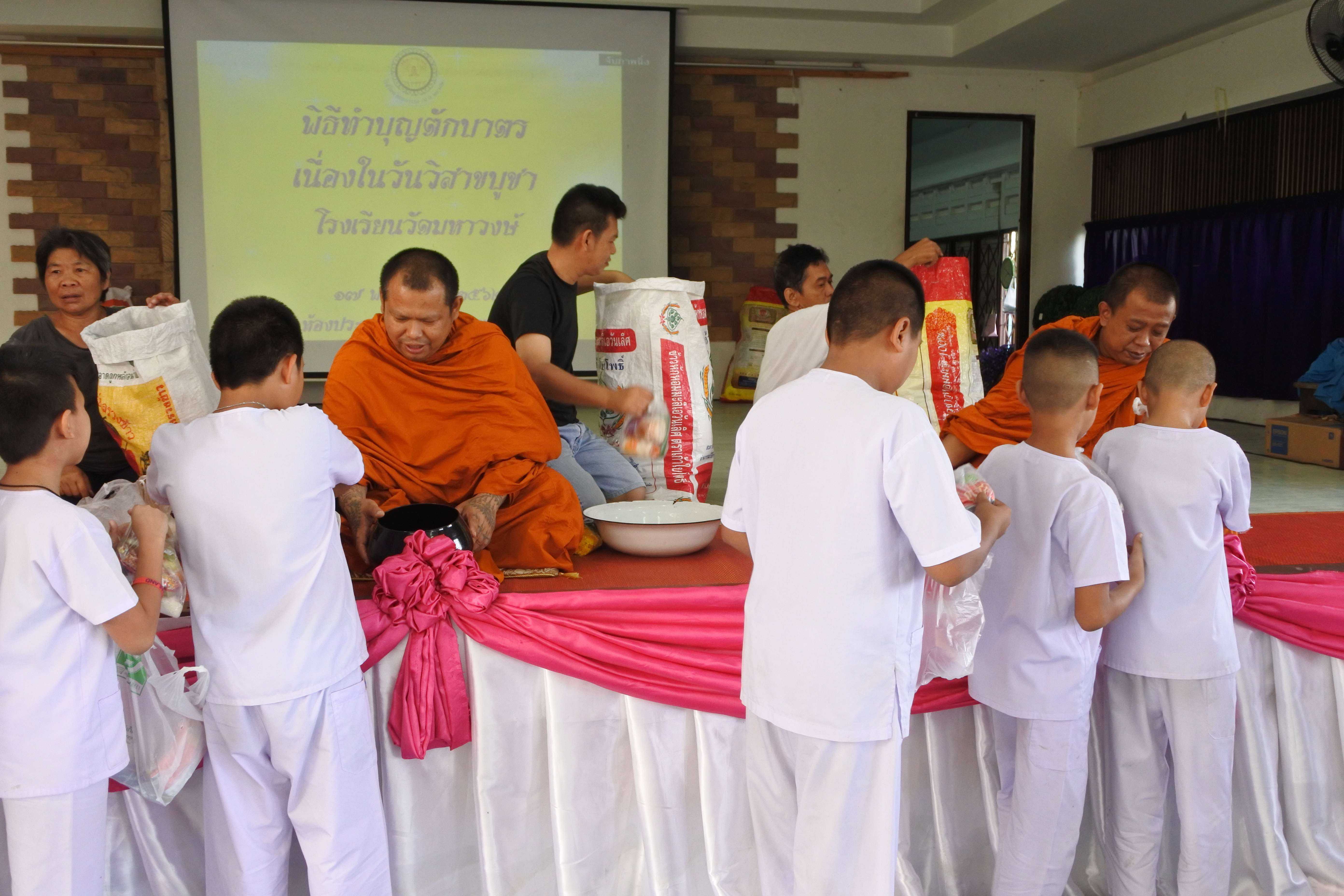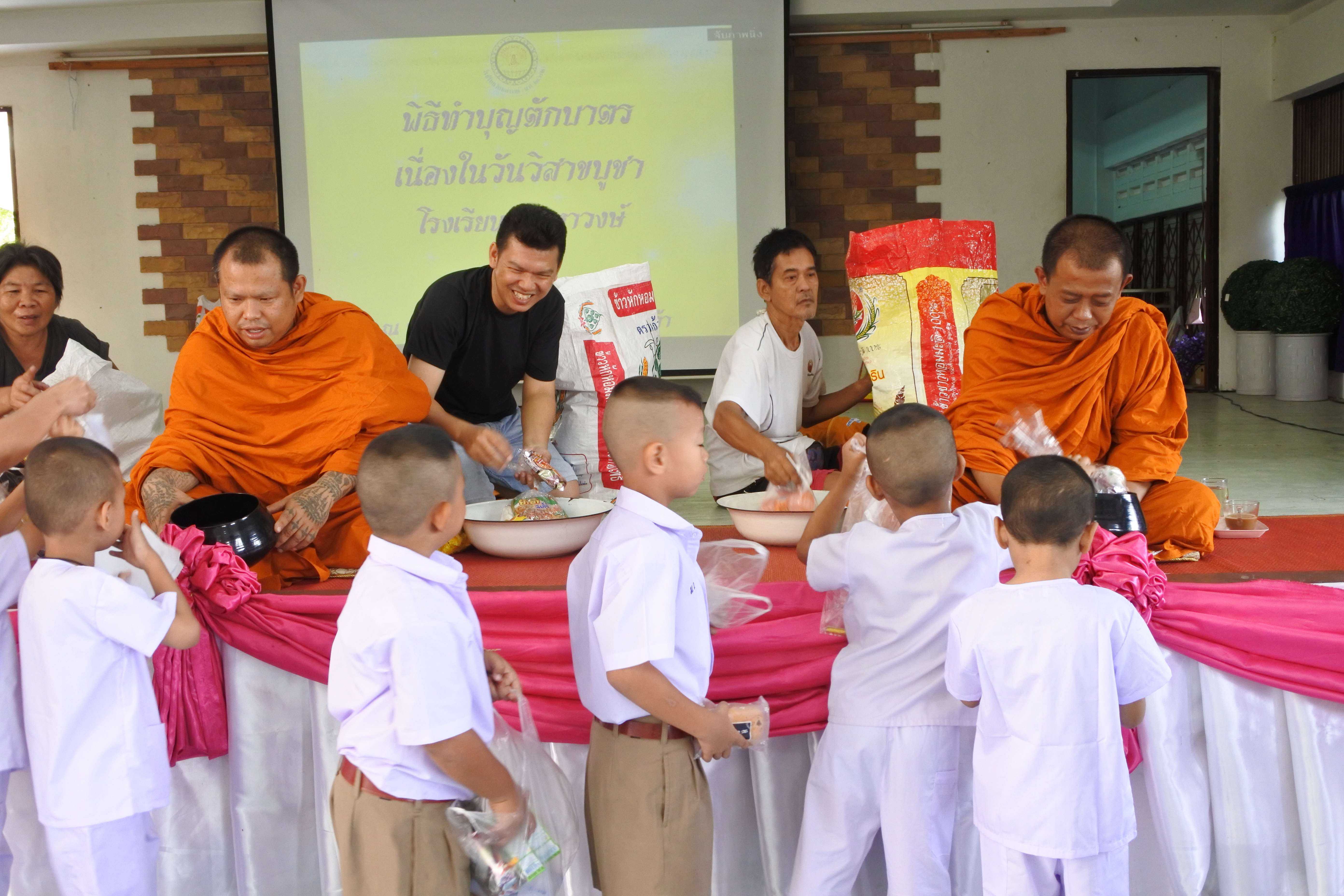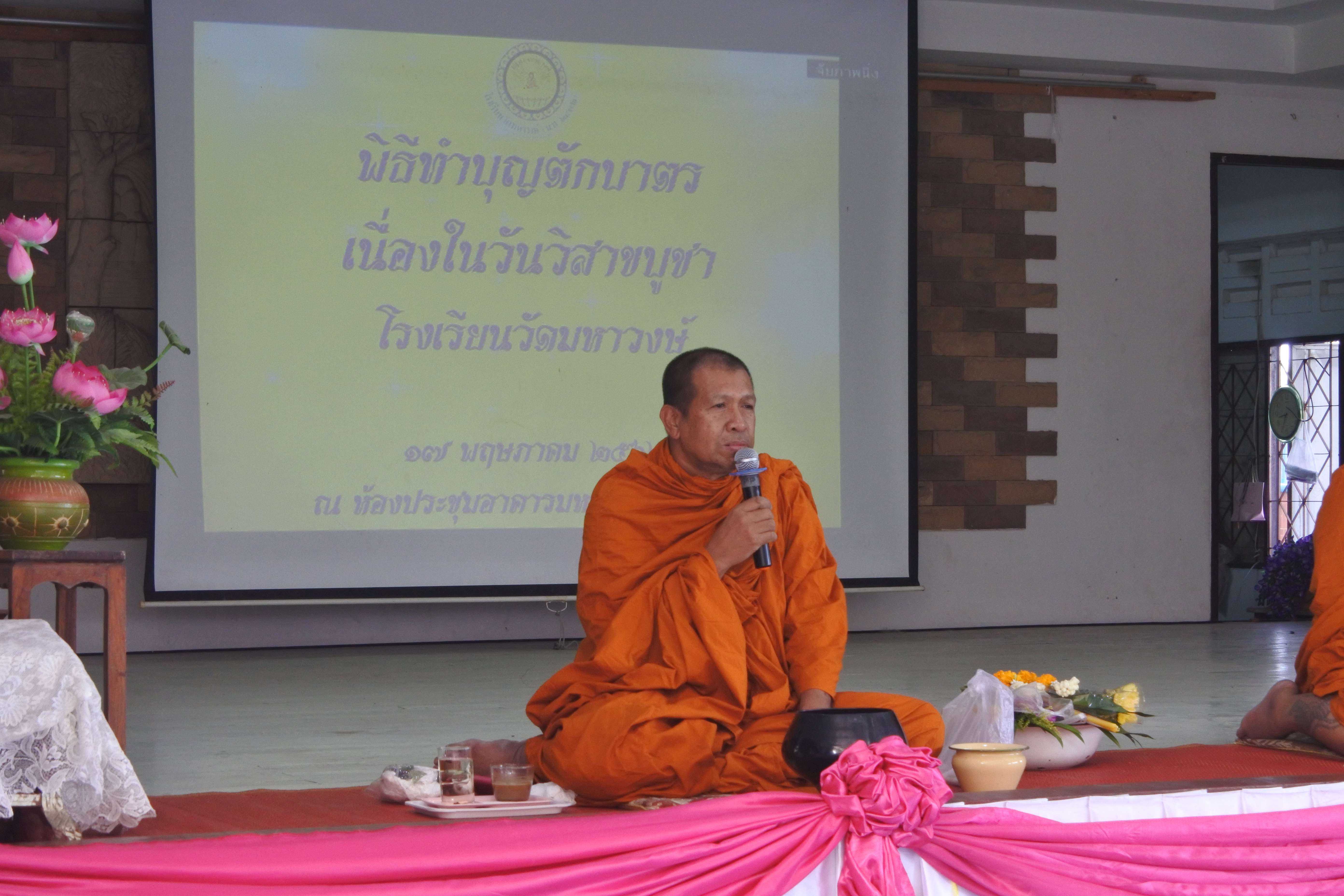 วันที่ ๑๗ พฤษภาคม พ.ศ.๒๕๖๒ โรงเรียนวัดมหาวงษ์ จัดกิจกรรมเนื่องในวันสำคัญทางพระพุทธศาสนา วันวิสาขบูชา จัดพิธีตักบาตร พระสงฆ์ ๓ รูป โดยพระครูปลัดเพลิน วชิโร ผู้ช่วยเจ้าอาวาสวัดมหาวงษ์ เป็นประธานฝ่ายสงฆ์ ดร.ชูขวัญ รัตนพิทักษ์ธาดา ผู้อำนวยการโรงเรียนวัดมหาวงษ์ เป็นประธานฝ่ายฆราวาส พร้อมด้วยคณะครู บุคลากร นักเรียน และผู้ปกครอง ร่วมทำบุญตักบาตร ฟังพระธรรมเทศนา ณ ห้องประชุมอาคารมหาวงษ์น้อมเกล้า และเวียนเทียนรอบอุโบสถวัดมหาวงษ์ เพื่อปลูกฝังให้นักเรียนรู้จักหน้าที่ของพุทธศาสนิกชน รู้จักทำบุญเข้าวัด และนำหลักธรรมคำสอนขององค์พระสัมมาสัมพุทธเจ้ามาเป็นหลักในการดำเนินชีวิต S:1