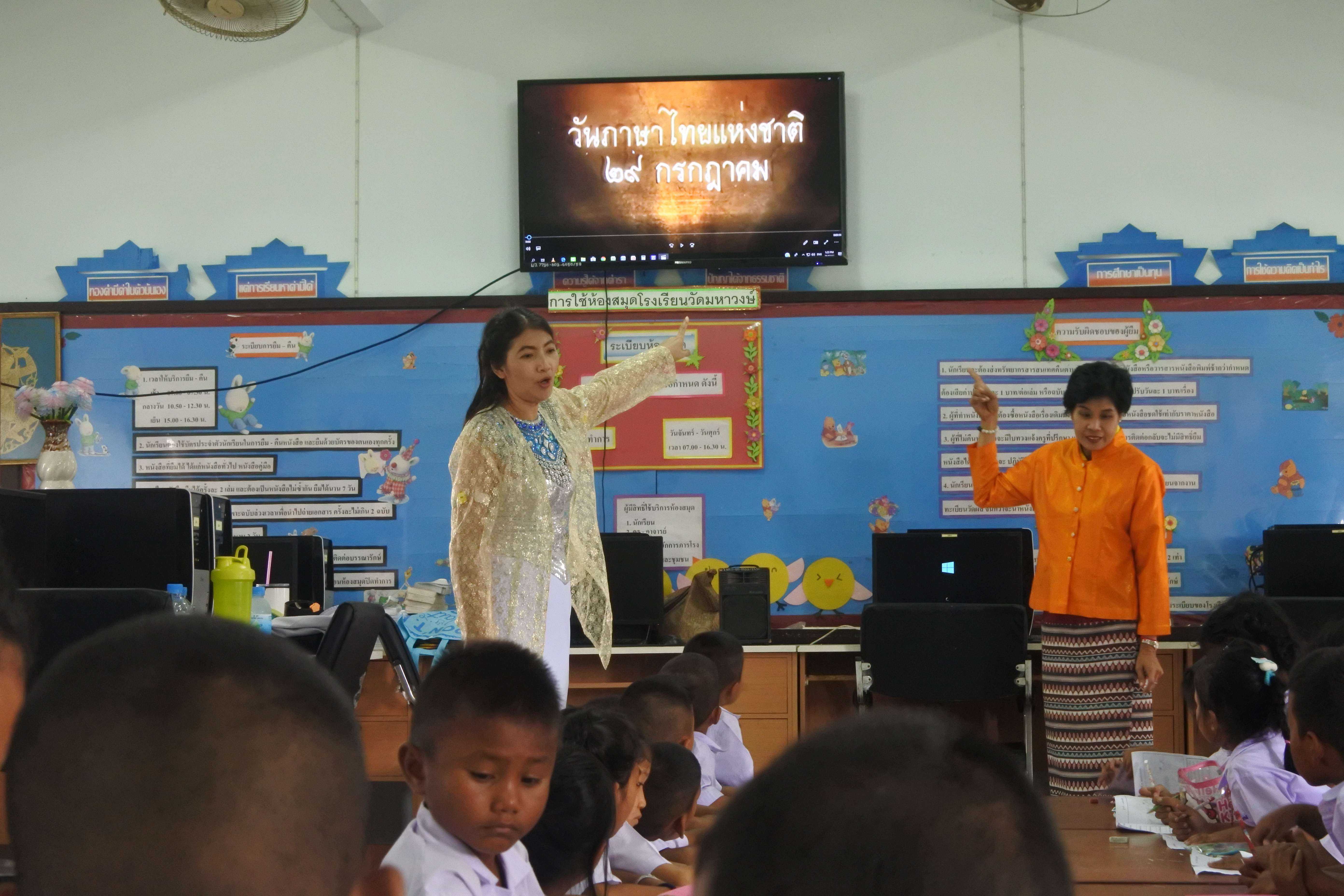 วันที่ ๒๖ กรกฎาคม พ.ศ.๒๕๖๒ เวลา ๑๐.๐๐ น. โรงเรียนวัดมหาวงษ์ จัดกิจกรรมวันภาษาไทยแห่งชาติ ประจำปีการศึกษา ๒๕๖๒ "รู้รักษ์ชาติ รักษ์ภาษา รู้คุณค่า ภาษาไทย" นำโดย ดร.ชูขวัญ รัตนพิทักษ์ธาดา ผู้อำนวยการโรงเรียนวัดมหาวงษ์ เป็นประธานเปิดงาน ณ ห้องประชุมอาคารมหาวงษ์น้อมเกล้า กิจกรรมประกอบไปด้วย การแห่กลองยาวอัญเชิญพระบรมรูปพ่อขุนรามคำแหงมหาราชและศิลาจารึกหลักที่ ๑ พิธีเปิด นายสุรสิทธิ์ งามจิตร หัวหน้ากลุ่มสาระการเรียนรู้ภาษาไทย กล่าวรายงานต่อประธานในพิธี การแสดงพิธีเปิดบนเวที จากนั้นในช่วงเวลา ๑๓.๐๐ น. มีฐานกิจกรรมการเรียนรู้ภาษาไทย จำนวน ๔ ฐานกิจกรรม ซึ่งแบ่งนักเรียนออกเป็น ๒ ระดับ ในแต่ละระดับแบ่งออกเป็น ๔ กลุ่ม จัดกิจกรรมในลักษณะ Walk rally นักเรียนจะได้เรียนรู้ในทุกๆ ฐานกิจกรรม ซึ่งในระดับชั้นประถมศึกษาปีที่ ๑-๒ และระดับชั้นอนุบาล ประกอบด้วย ฐานที่ ๑ ฟังรื่นชื่นดวงจิต (เรียนรู้เพลงไทย) ฐานที่ ๒ ภาษาไทยมีที่มา (ประวัติวันภาษาไทย) ฐานที่ ๓ แต่งเติมเพิ่มสีสัน (ระบายสีภาพสุภาษิตไทย) และฐานที่ ๔ แข่งขันเอามันส์ (การละเล่นไทย) ส่วนในระดับชั้นประถมศึกษาปีที่ ๓-๖ ประกอบด้วย ฐานที่ ๑ ต้นตำรับอักษรไทย (อักษรลายสือไทย) ฐานที่ ๒ โอ้เอ้พาเพลิน (สวดโอ้เอ้วิหารราย) ฐานที่ ๓ อักษรสร้างภาพ (วาดภาพจากข้อความ) และฐานที่ ๔ ครื้นเครงบรรเลงไทย (ดนตรีไทย) เพื่อให้นักเรียนได้มีโอกาสในการเรียนรู้ได้อย่างทั่วถึงทุกฐานกิจกรรม และมีการมอบรางวัลจากการแข่งขันในกิจกรรมต่างๆ ที่ได้แข่งขันตลอดสัปดาห์ ได้แก่ การประกวดปั้นดินน้ำมัน และการประกวดสร้างภาพจากมือ ระดับชั้นอนุบาล การประกวดมารยาทไทย ทุกระดับชั้น การประกวดคัดลายมือ การแข่งขันเขียนตามคำบอก การประกวดร้องเพลงไทยลูกทุ่ง การประกวดอ่านบทร้อยกรอง (บทอาขยาน) ระดับชั้นประถมศึกษาปีที่ ๑-๖ การประกวดแต่งคำขวัญวันภาษาไทย การประกวดแต่งกลอนสุภาพ การแข่งขันอ่านเอาเรื่องตามแนว PISA การแข่งขันออกแบบโปสเตอร์เชิญชวนเที่ยวงานวันภาษาไทยด้วยคอมพิวเตอร์ และกิจกรรมแข่งขันเปิดพจนานุกรม ระดับชั้นประถมศึกษาปีที่ ๔-๖ อีกทั้งยังมีการประกวดการแต่งกายตัวละครในวรรณคดีไทย ซึ่งเป็นการประกวดของคณะครู และให้นักเรียนทายชื่อและลักษณะของตัวละครในวรรณคดีไทย พร้อมโหวตให้รางวัล ซึ่งวัตถุประสงค์ของการจัดกิจกรรมวันภาษาไทยในครั้งนี้ เพื่อให้นักเรียนสำนึกในพระมหากรุณาธิคุณพระบาทสมเด็จพระบรมชนกาธิเบศร มหาภูมิพลอดุลยเดชมหาราช บรมนาถบพิตร รัชกาลที่ ๙ ด้านการอนุรักษ์ภาษาไทย ส่งเสริมให้นักเรียนร่วมกันอนุรั