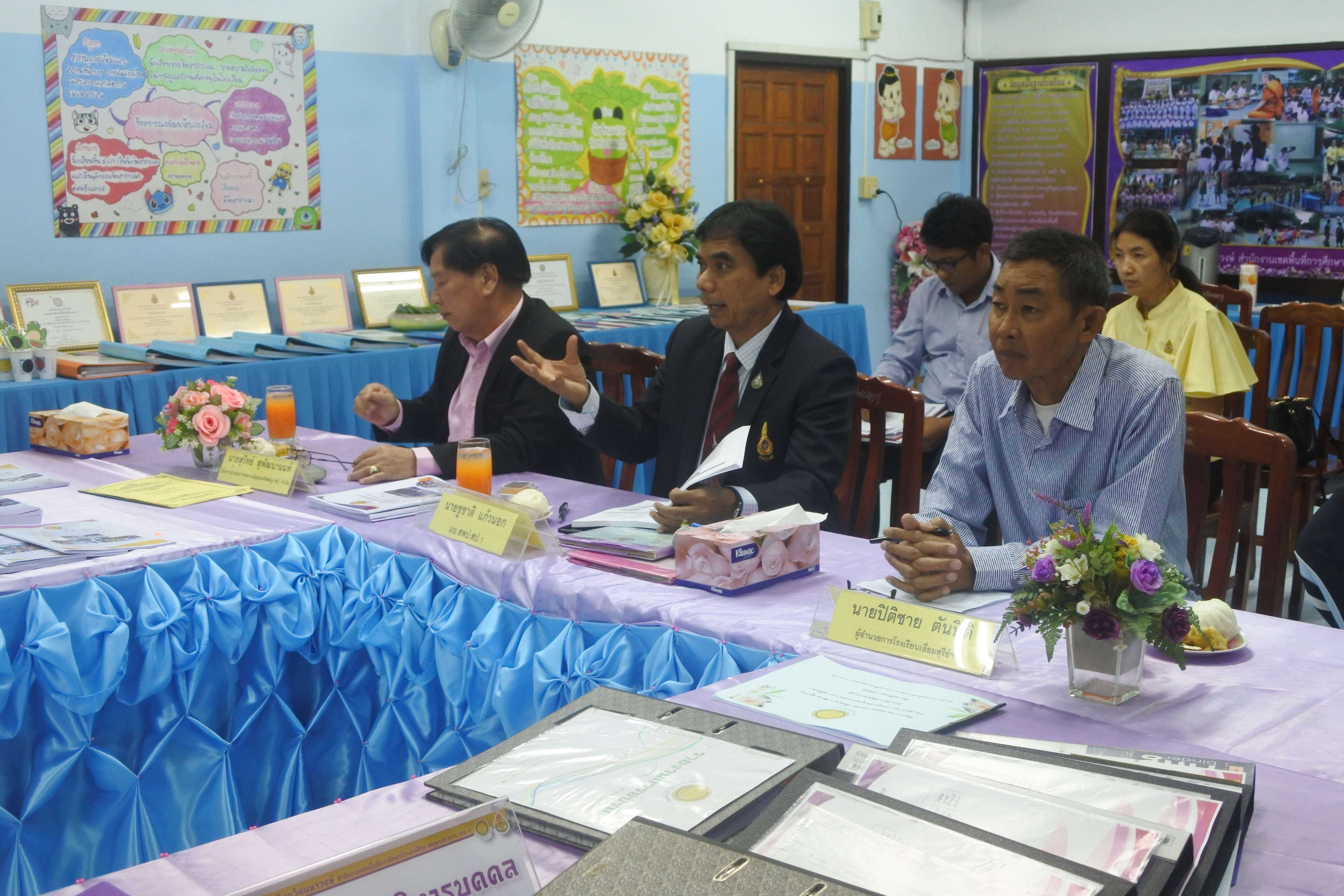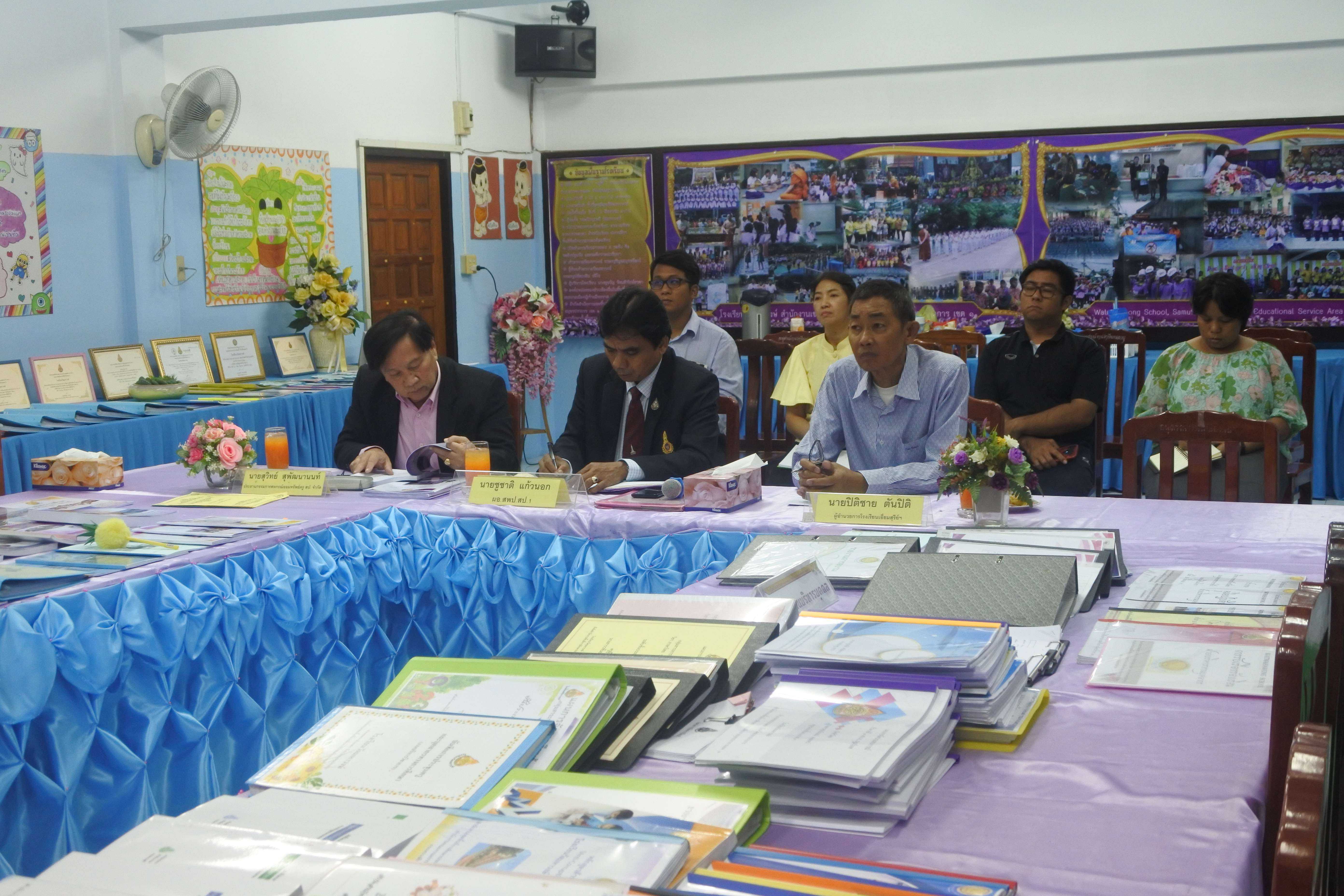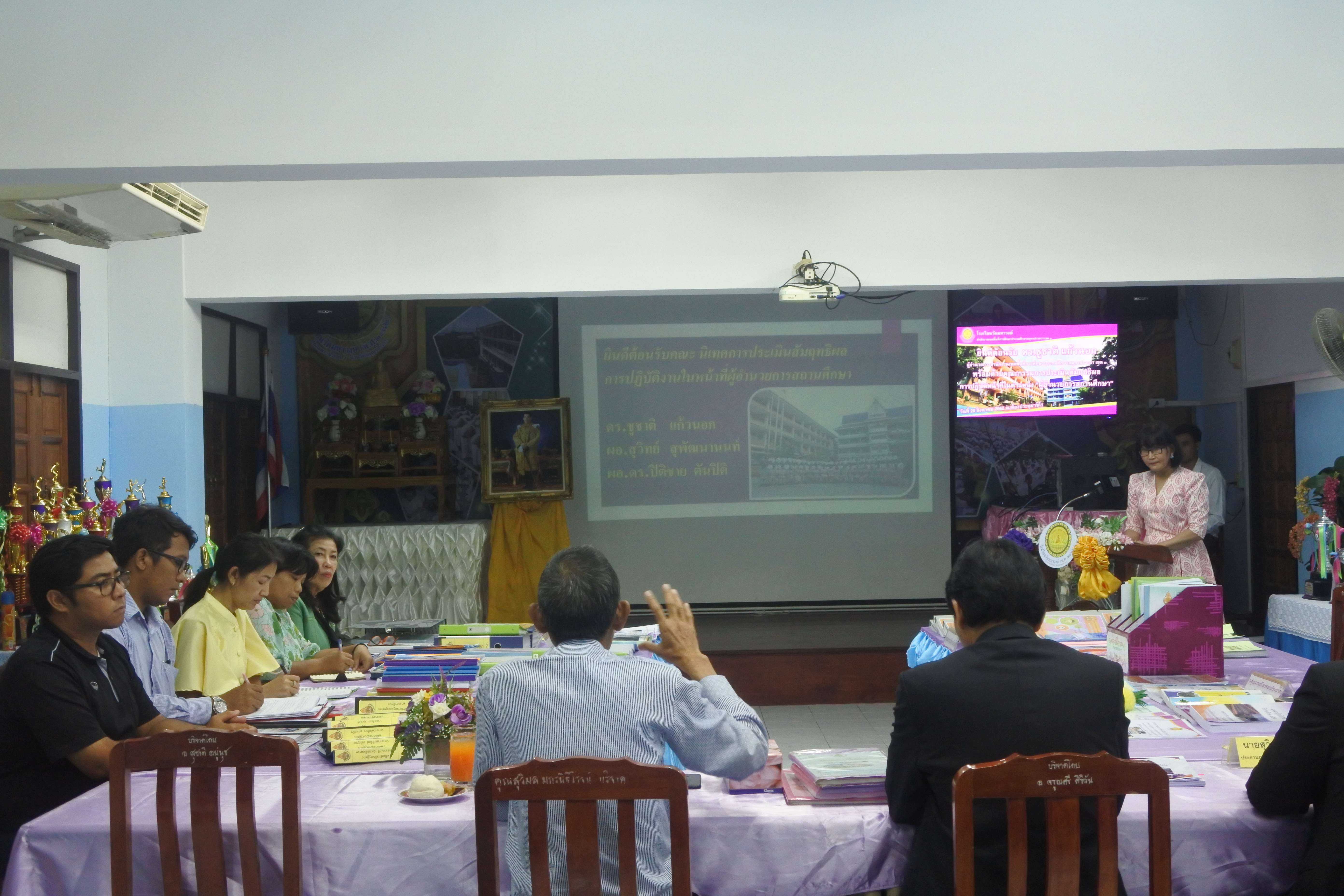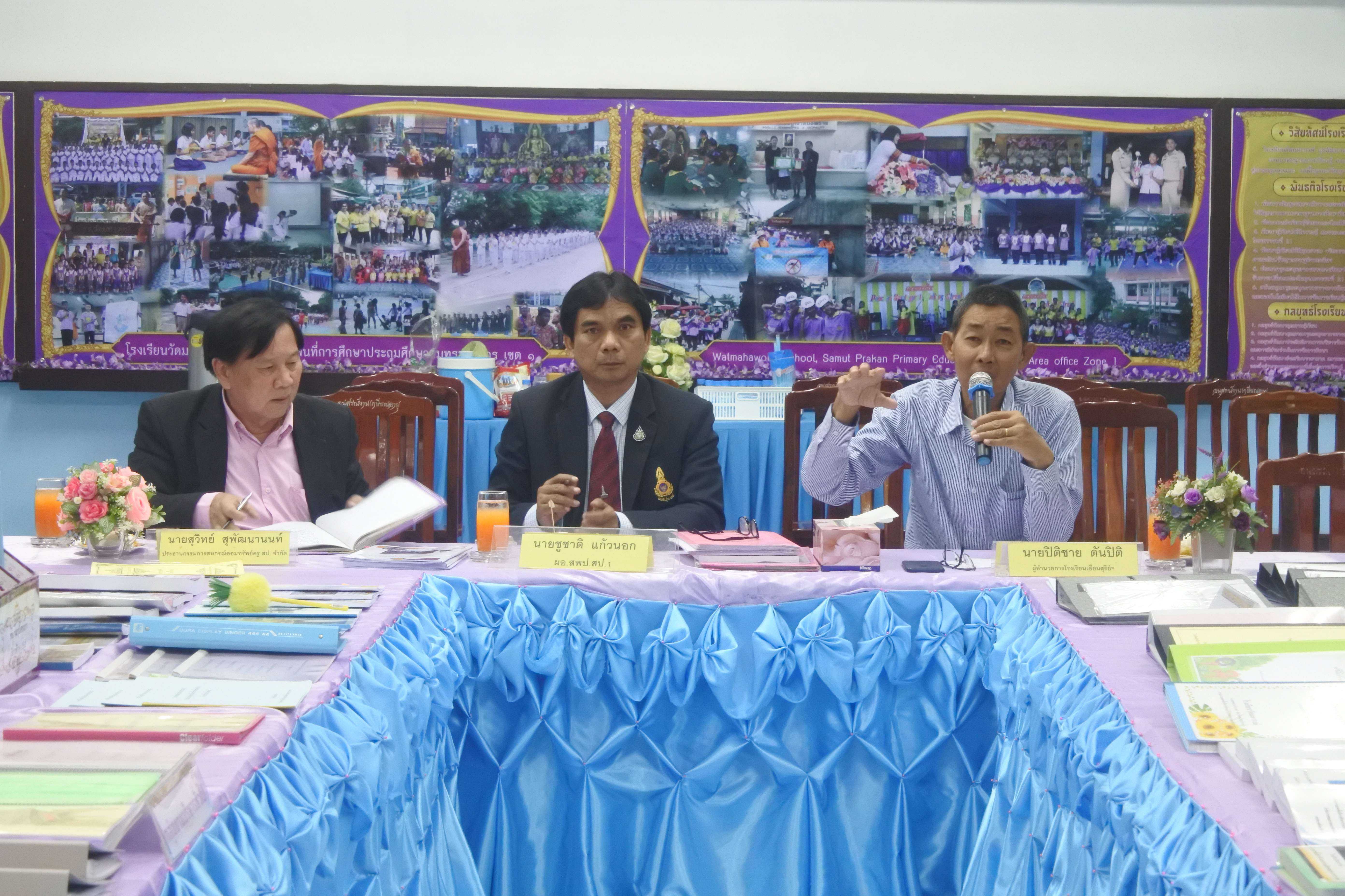 เมื่อวันที่ ๒๐ สิงหาคม พ.ศ.๒๕๖๒ คณะกรรมการนิเทศ ติดตาม ประเมินสัมฤทธิผลการปฏิบัติหน้าที่ในตำแหน่ง ผู้อำนวยการสถานศึกษา ประกอบด้วย ดร.ชูชาติ แก้วนอก ผู้อำนวยการสำนักงานเขตพื้นที่การศึกษาประถมศึกษาสมุทรปราการ เขต ๑ ดร.ปิติชาย ตันปิติ ผู้อำนวยการโรงเรียนเอี่ยมสุรีย์ (อนุบาลเมืองสมุทรปราการ) และนายสุวิทย์ สุพัฒนานนท์ อดีตผู้อำนวยการโรงเรียนวัดด่านสำโรง กรรมการผู้ทรงคุณวุฒิ ให้การนิเทศ ติดตาม ประเมินสัมฤทธิผลการปฏิบัติหน้าที่ในตำแหน่ง ผู้อำนวยการสถานศึกษา ดร.ชูขวัญ รัตนพิทักษ์ธาดา ผู้อำนวยการโรงเรียนวัดมหาวงษ์ โดยมีคณะผู้บริหาร คณะครู และบุคลากร โรงเรียนวัดมหาวงษ์ ให้การต้อนรับ ณ ห้องประชุมวชิโร ชั้น ๓ อาคารเฉลิมพระเกียรติ ๘๐ พรรรษา โรงเรียนวัดมหาวงษ์ S:1