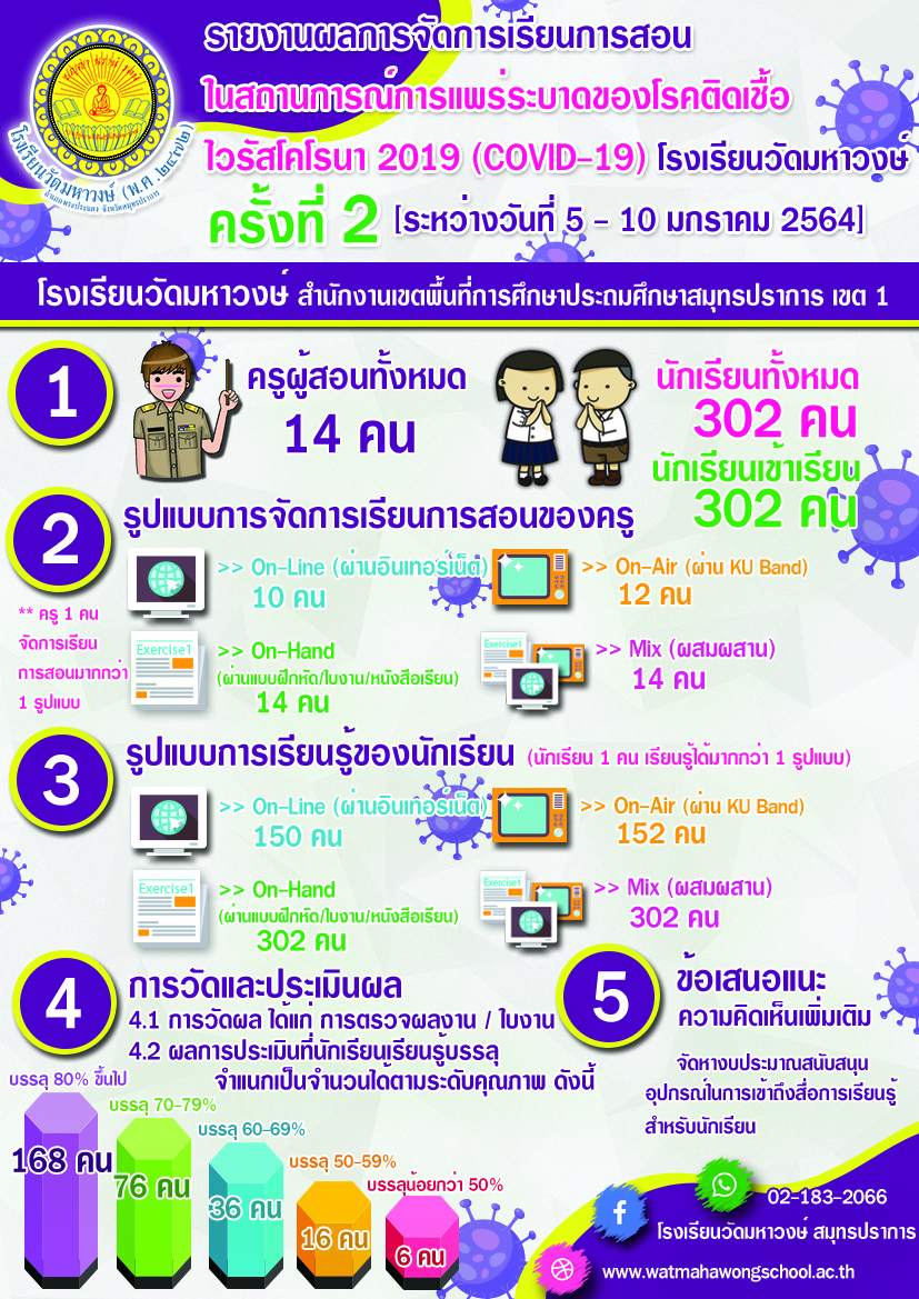 รายงานผลการจัดการเรียนการสอนในสถานการณ์การแพร่ระบาดของโรคติดเชื้อไวรัส COVID-19 ครั้งที่ 2