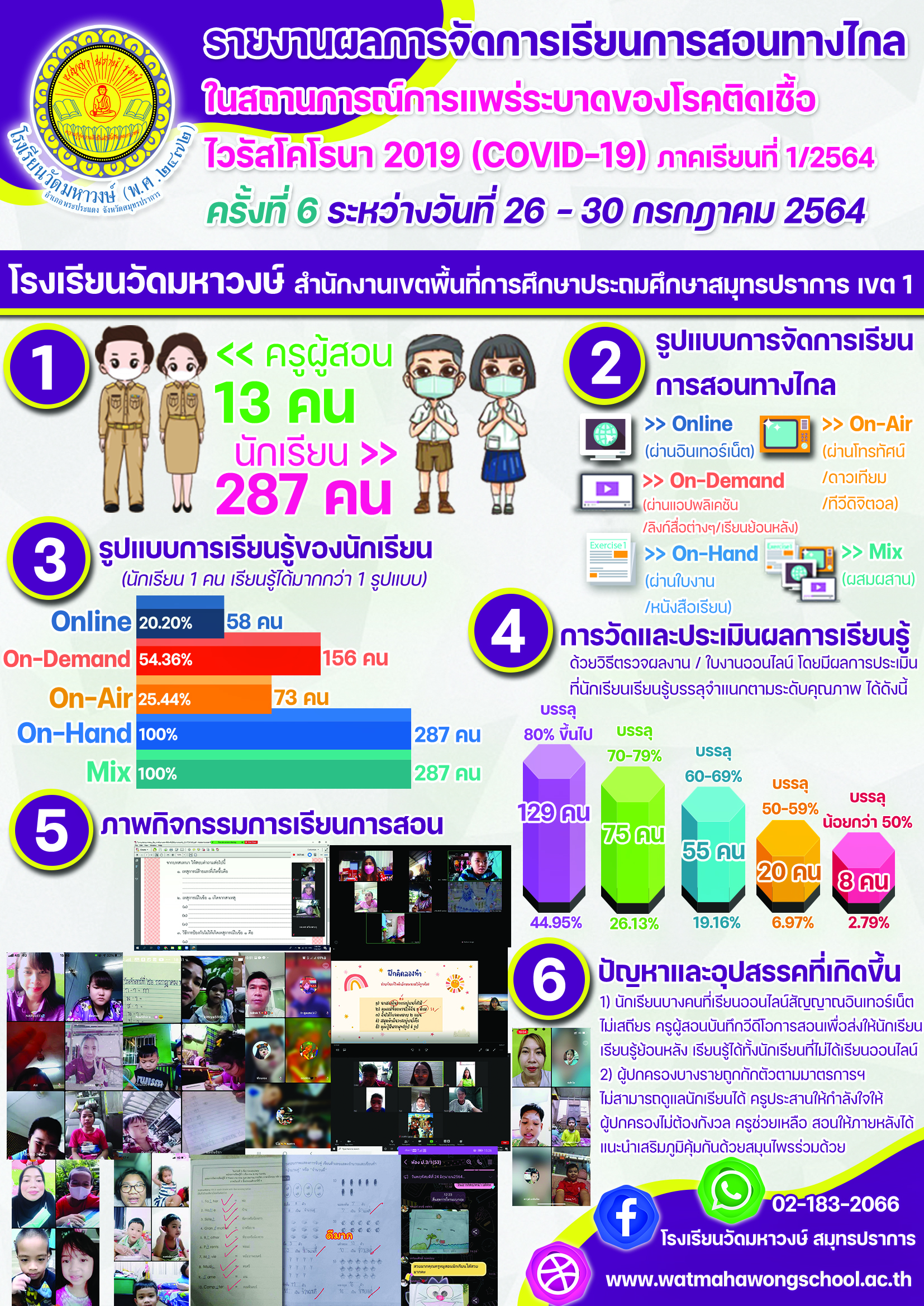 รายงานผลการจัดการเรียนการสอนทางไกลในสถานการณ์การแพร่ระบาดของโรคติดเชื้อไวรัสโคโรนา 2019 (COVID-19) ครั้งที่ 6 ระหว่างวันที่ 26-30 ก.ค. 2564