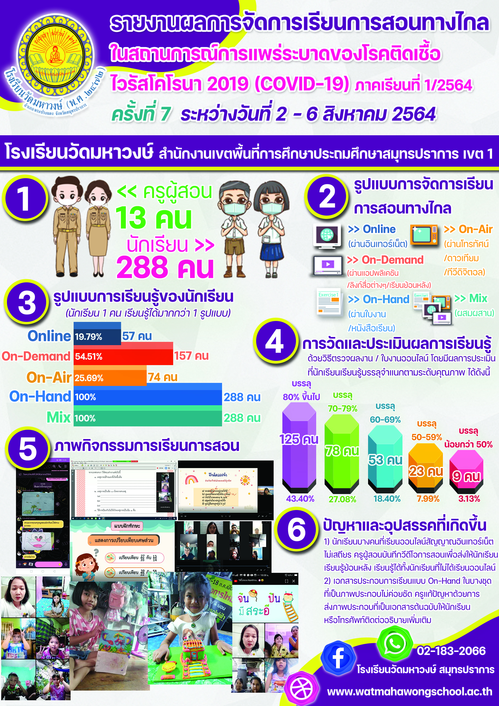รายงานผลการจัดการเรียนการสอนทางไกลในสถานการณ์การแพร่ระบาดของโรคติดเชื้อไวรัสโคโรนา 2019 (COVID-19) ครั้งที่ 7 ระหว่างวันที่ 2-6 ส.ค. 2564