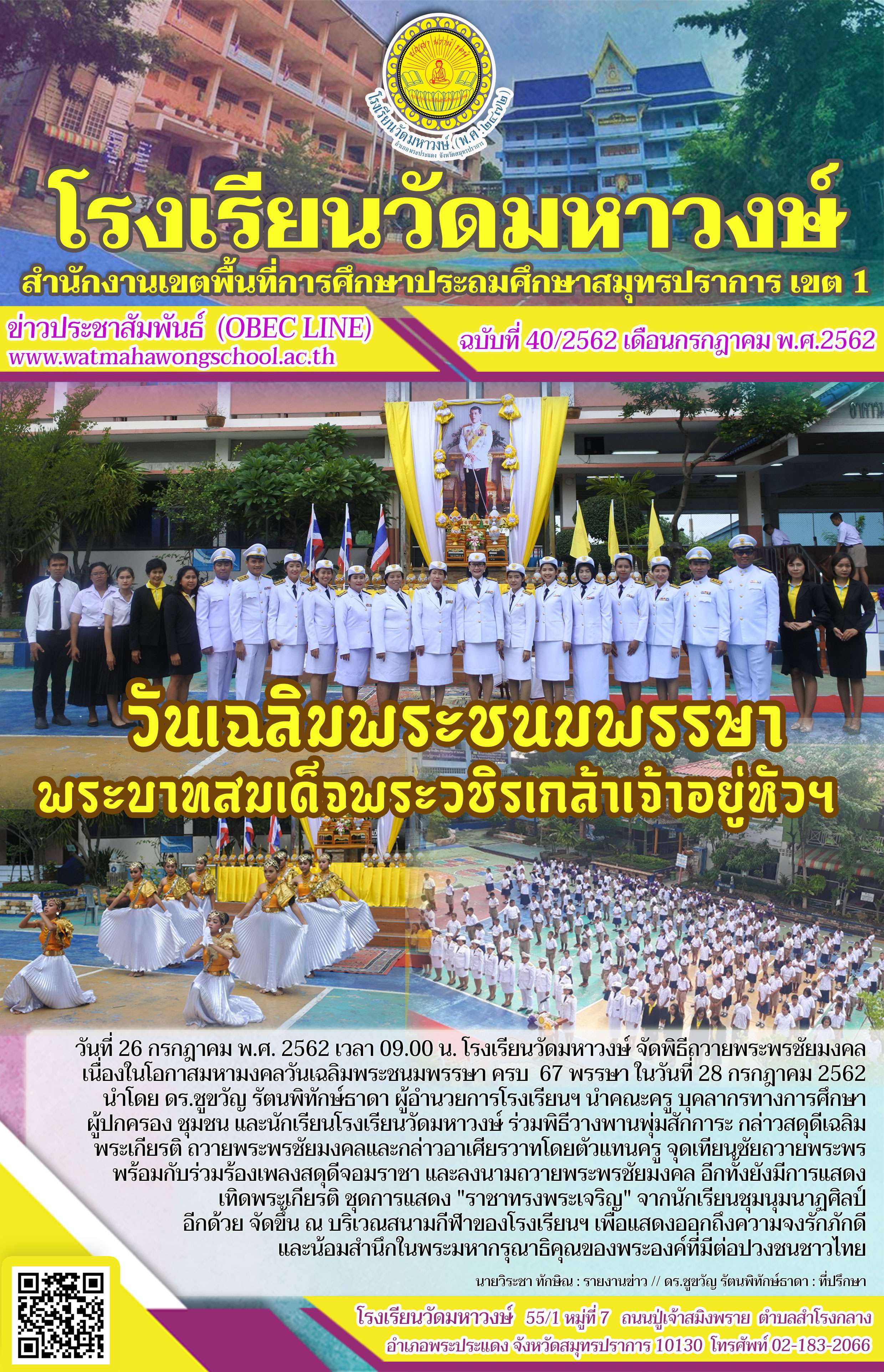 จดหมายข่าวประชาสัมพันธ์ออนไลน์ (OBEC LINE) ฉบับที่ ๔๐/๒๕๖๒ เดือนกรกฎาคม พ.ศ.๒๕๖๒