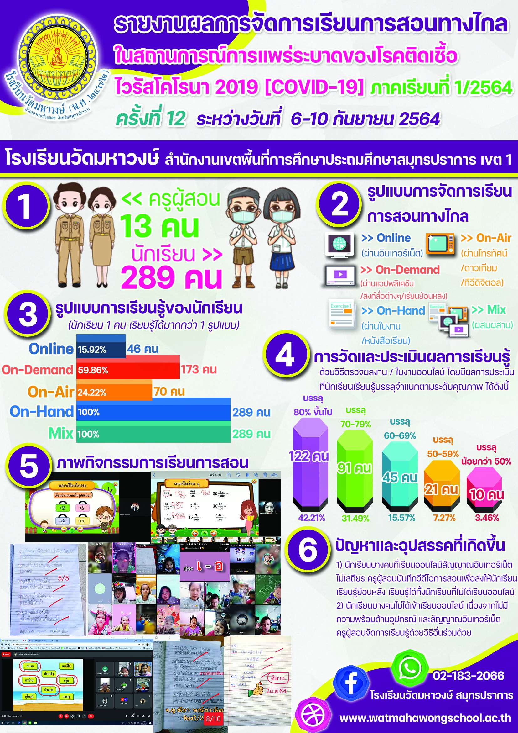รายงานผลการจัดการเรียนการสอนทางไกลในสถานการณ์การแพร่ระบาดของโรคติดเชื้อไวรัสโคโรนา 2019 (COVID-19) ครั้งที่ 12 ระหว่างวันที่ 6-10 ก.ย. 2564