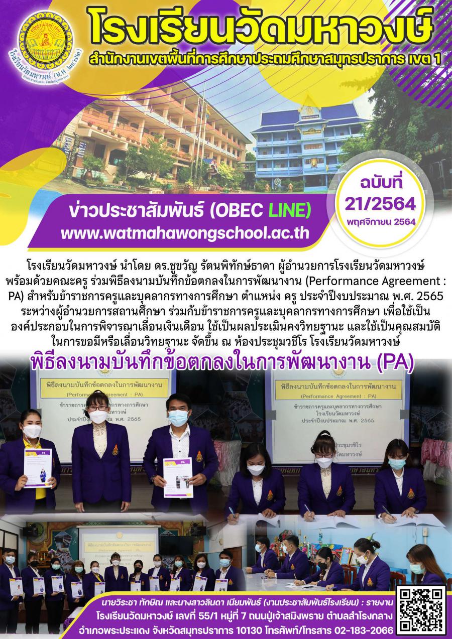 ฉบับที่ 21/2564 พิธีลงนามบันทึกข้อตกลงในการพัฒนางาน (PA) ประจำปีงบประมาณ พ.ศ. 2565
