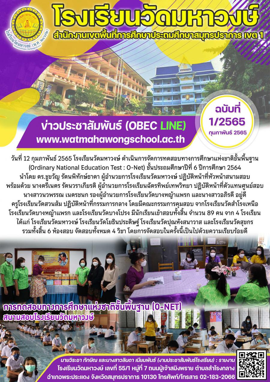 ฉบับที่ 1/2565 การทดสอบทางการศึกษาแห่งชาติขั้นพื้นฐาน (O-Net)