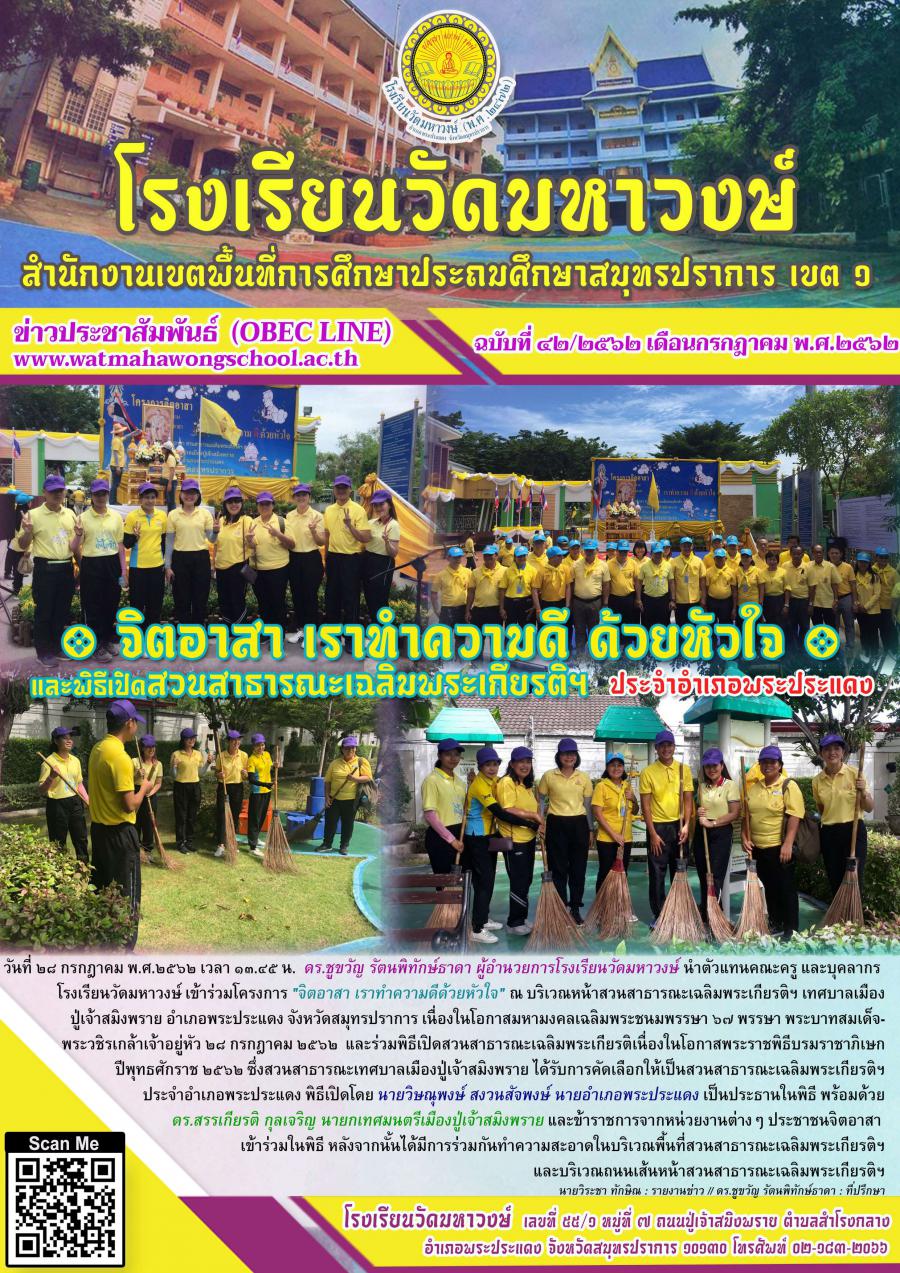 ฉบับที่ ๔๒/๒๕๖๒ โครงการ "จิตอาสา เราทำความดี ด้วยหัวใจ" และพิธีเปิดสวนสาธารณะเฉลิมพระเกียรติฯ