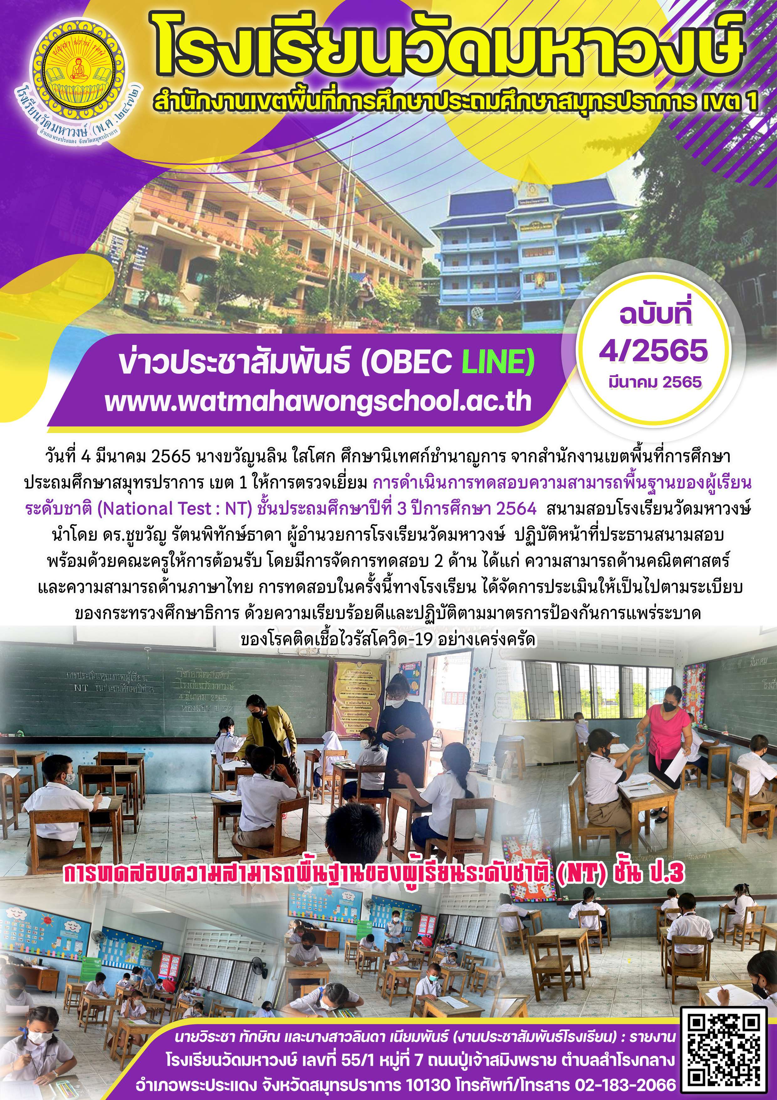 ฉบับที่ 4/2565 การทดสอบความสามารถพื้นฐานของผู้เรียนระดับชาติ (NT) ชั้น ป.3