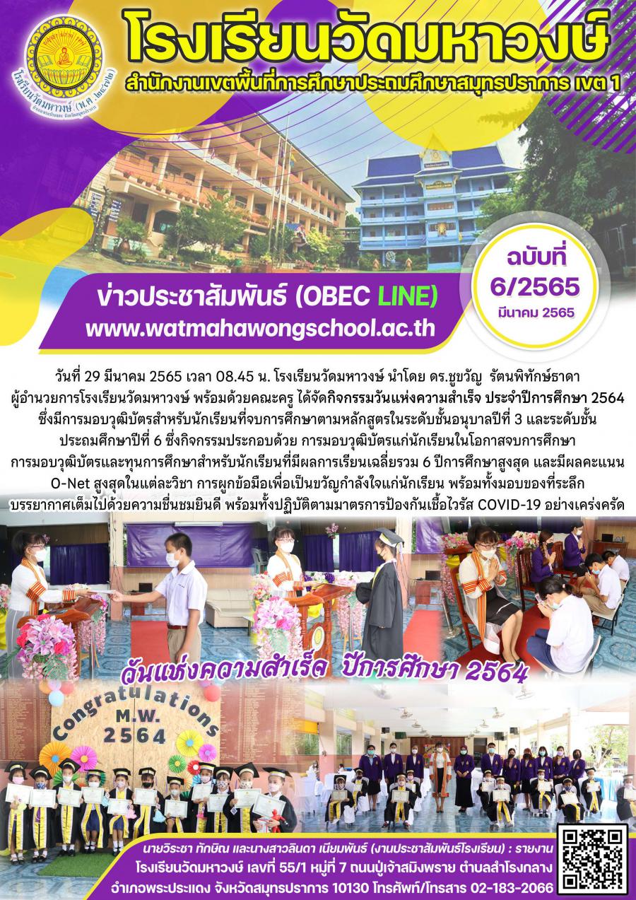 ฉบับที่ 6/2565 กิจกรรมวันแห่งความสำเร็จ ปีการศึกษา 2564