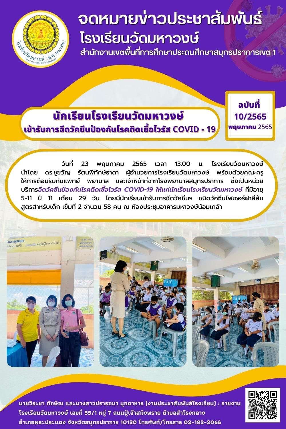ฉบับที่ 10/2565 การฉีดวัคซีนไฟเซอร์ สำหรับนักเรียนอายุ 5-12 ปี เข็มที่ 2