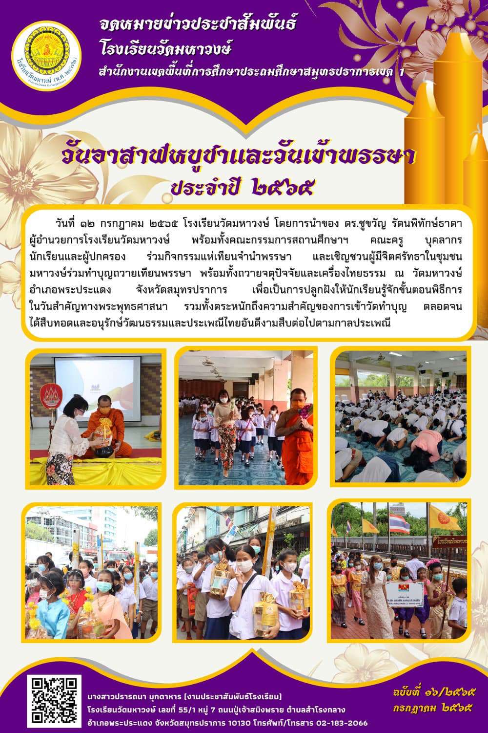 ฉบับที่ 16/2565 วันอาสาฬหบูชาและวันเข้าพรรษา ปี พ.ศ. 2565