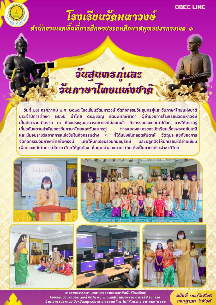 ฉบับที่ 19/2565 กิจกรรมวันสุนทรภู่และวันภาษาไทยแห่งชาติ