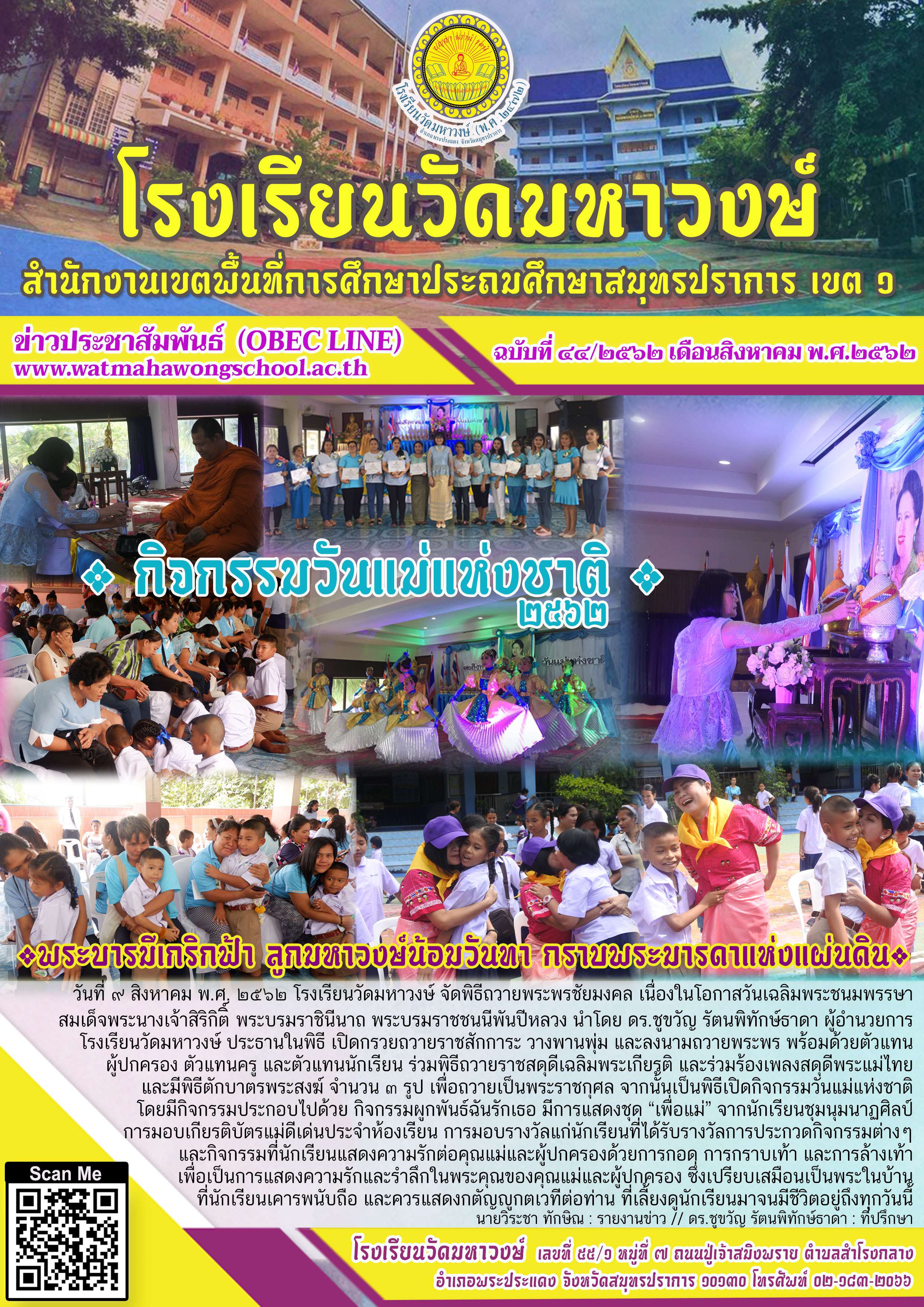 จดหมายข่าวประชาสัมพันธ์ออนไลน์ (OBEC LINE) ฉบับที่ ๔๔/๒๕๖๒ เดือนสิงหาคม พ.ศ.๒๕๖๒
