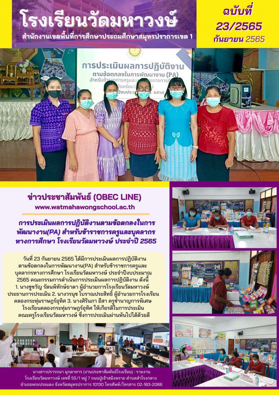 ฉบับที่ 23/2565 การประเมินผลการปฏิบัติงานตามข้อตกลง PA ประจำปีงบประมาณ พ.ศ.2565