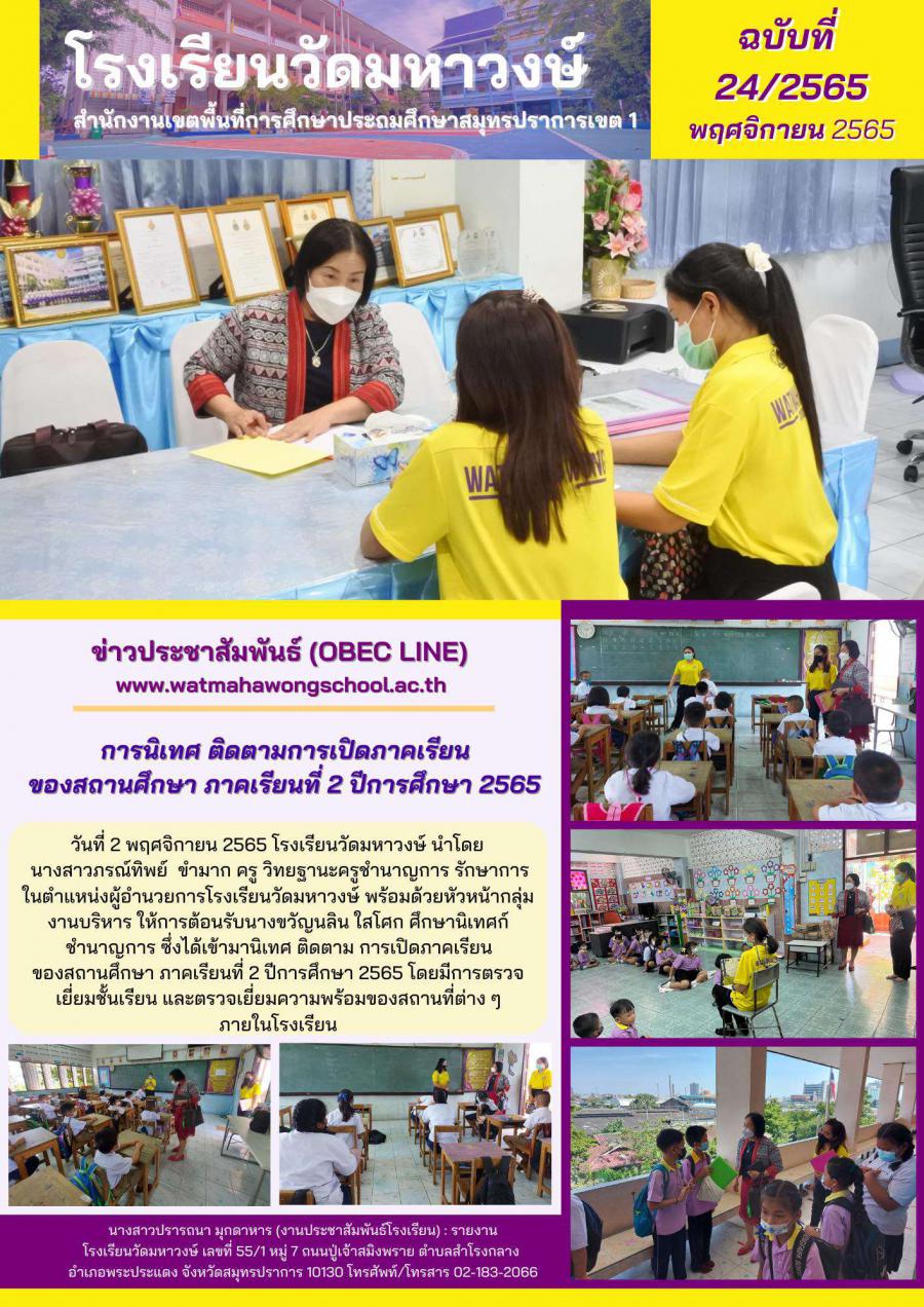 ฉบับที่ 24/2565 การนิเทศ ติดตาม การเปิดภาคเรียนของสถานศึกษา ภาคเรียนที่ 2/2565