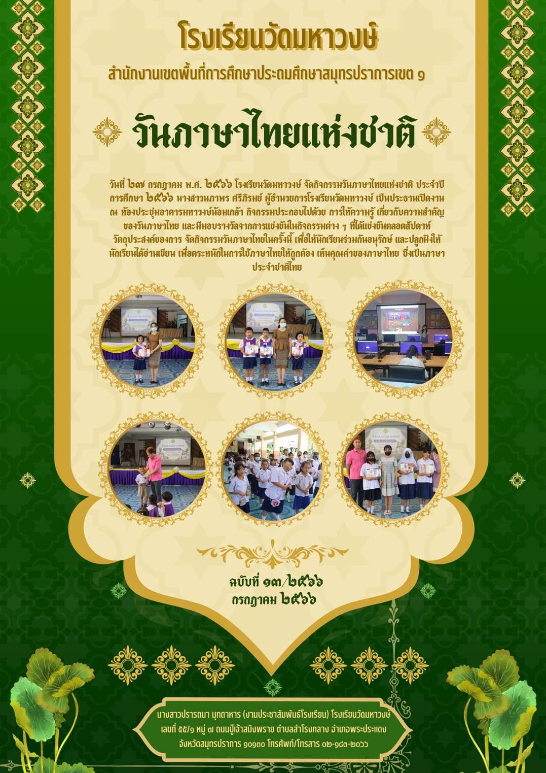ฉบับที่ 13/2566 กิจกรรมวันภาษาไทยแห่งชาติ