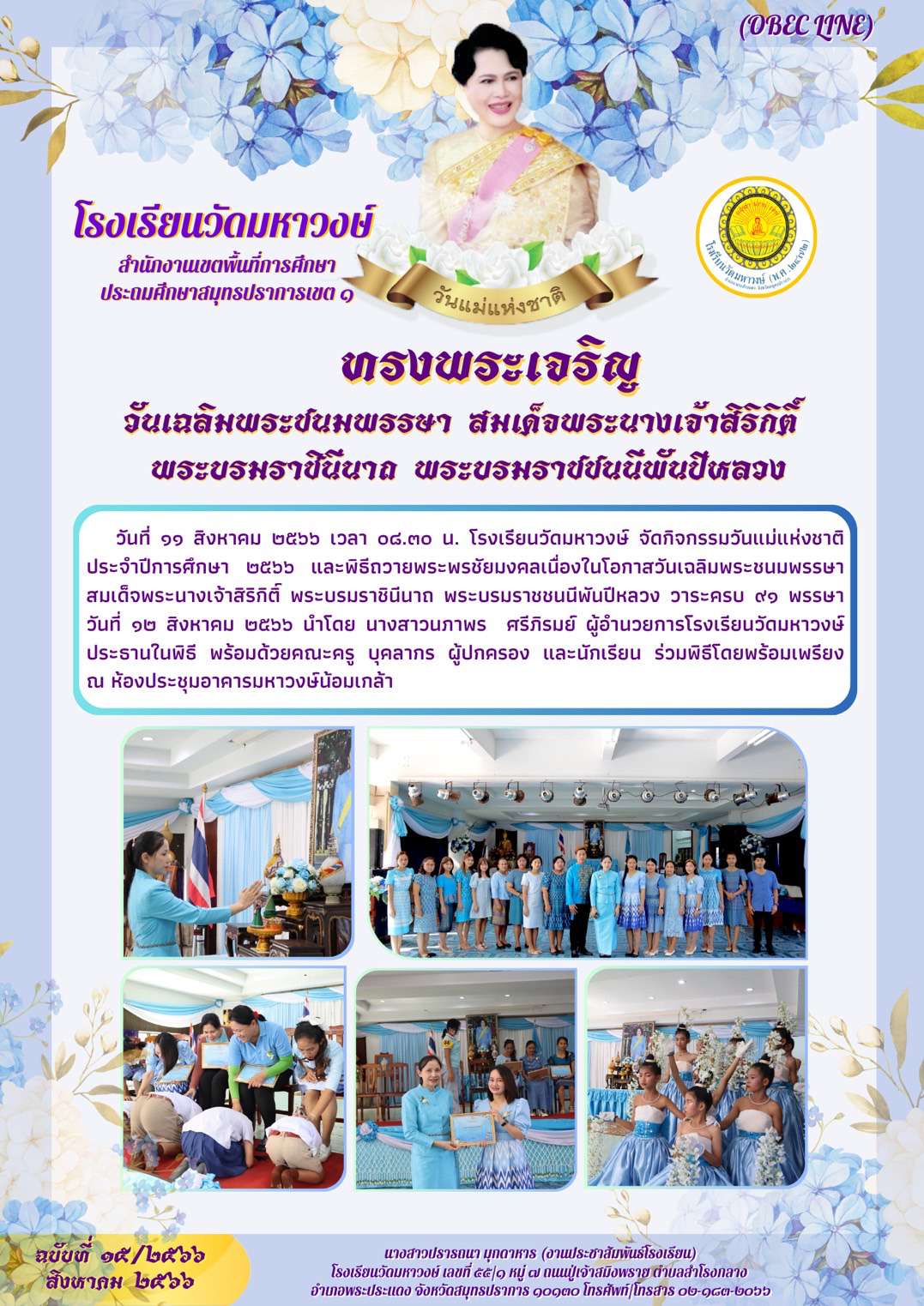 ฉบับที่ 15/2566 กิจกรรมวันแม่แห่งชาติและวันคล้ายวันเฉลิมพระชนมพรรษา สมเด็จพระนางเจ้าสิริกิติ์ พระบรมราชินีนาถ พระบรมราชชนนีพันปีหลวง