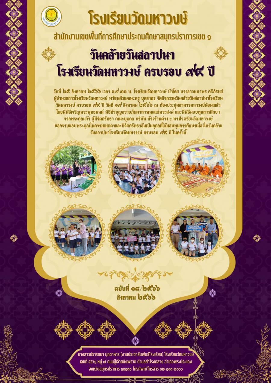 ฉบับที่ 18/2566 วันคล้ายวันสถาปนาโรงเรียนวัดมหาวงษ์ ครบรอบการก่อตั้ง 94 ปี