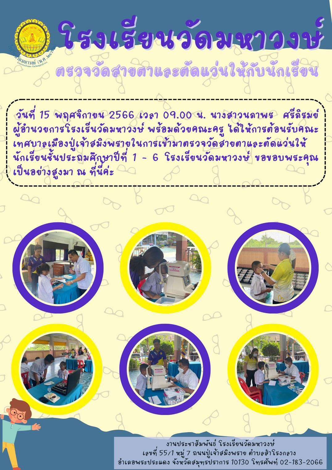 ฉบับที่ 22/2566 เทศบาลเมืองปู่เจ้าสมิงพรายตรวจวัดสายตานักเรียนชั้นประถมศึกษาปีที่ 1-6