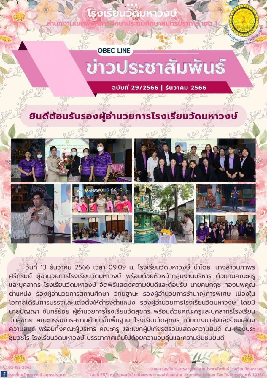 ฉบับที่ 29/2566 พิธีต้อนรับรองผู้อำนวยการโรงเรียนวัดมหาวงษ์
