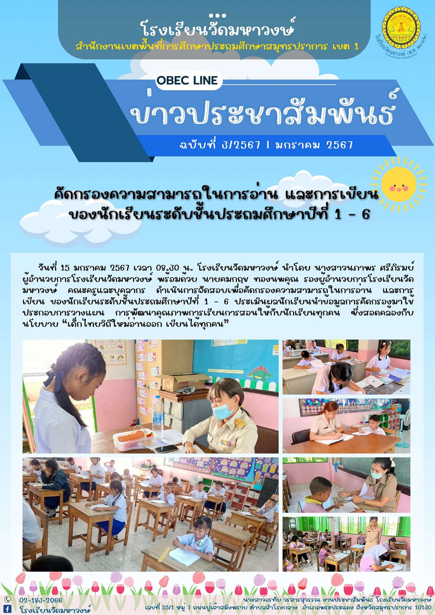 ฉบับที่ 3/2567 การทดสอบการอ่าน-เขียน ภาคเรียนที่ 2/2566