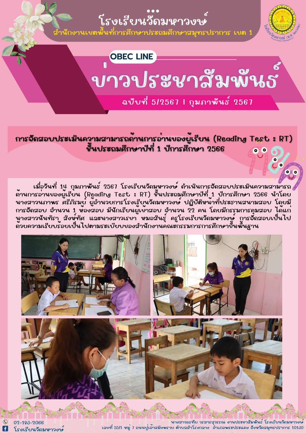 ฉบับที่ 5/2567 การประเมินความสามารถในการอ่านของผู้เรียน ชั้นประถมศึกษาปีที่ 1 ปีการศึกษา 2566