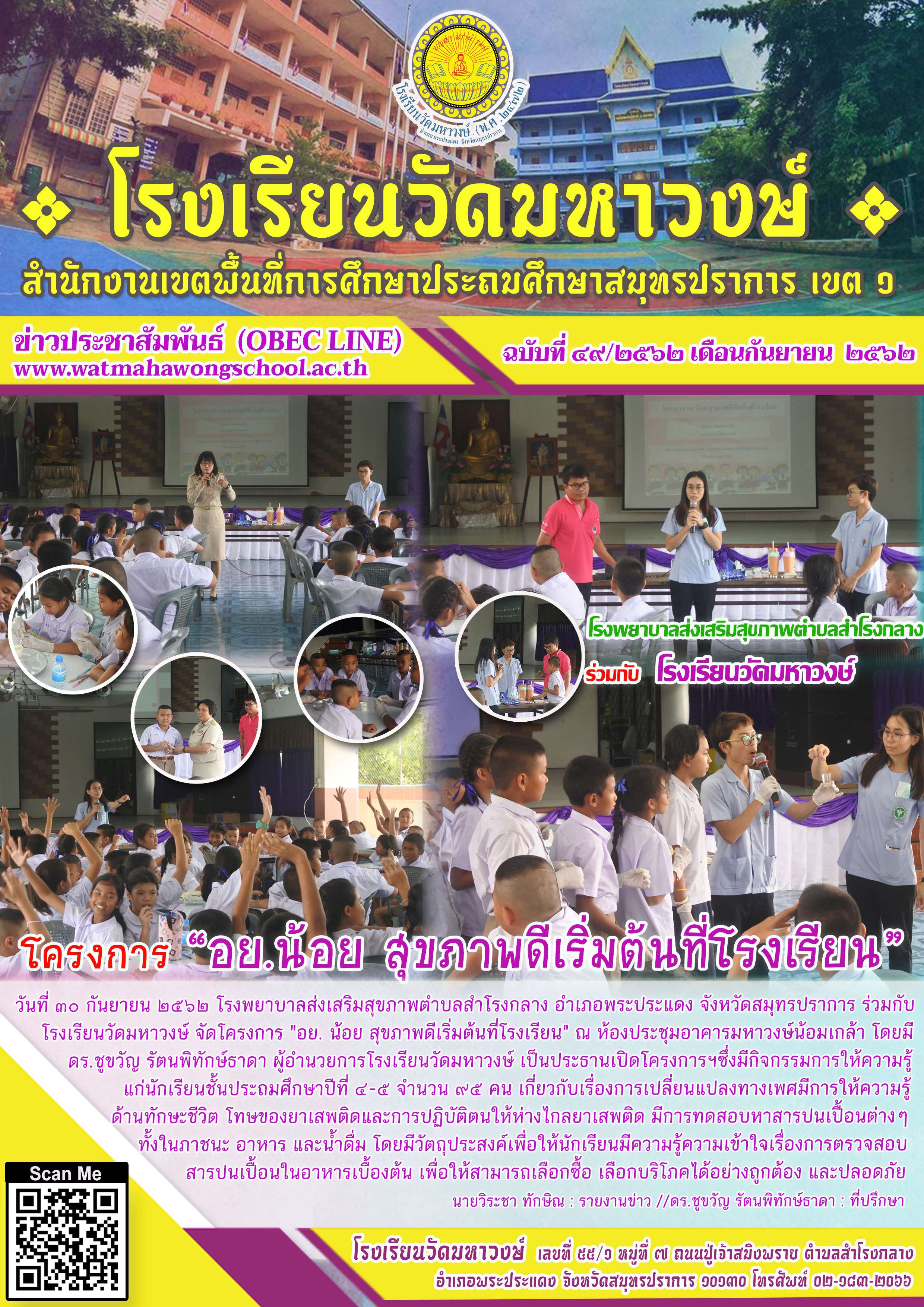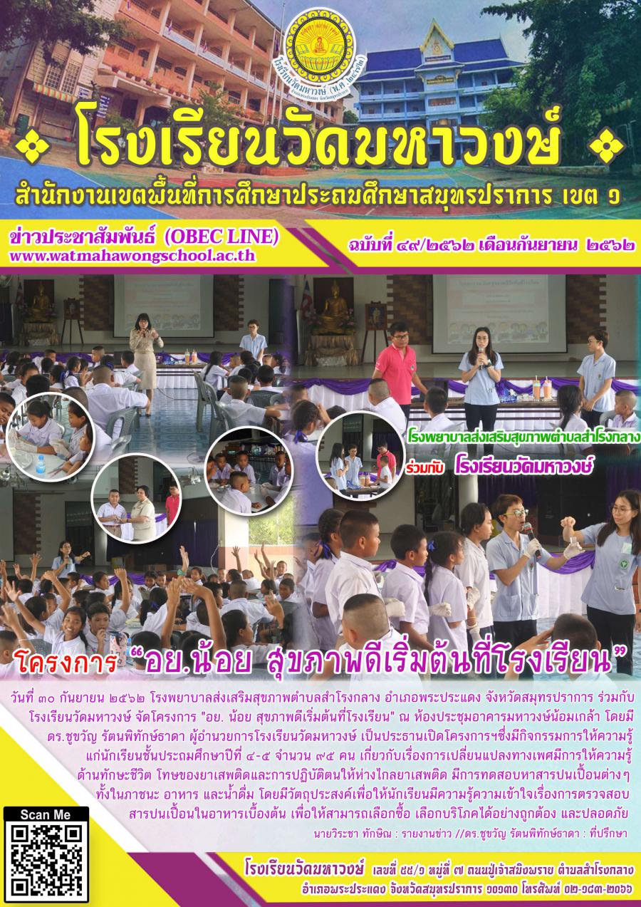 ฉบับที่ ๔๙/๒๕๖๒ โครงการ "อย.น้อย สุขภาพดีเริ่มต้นที่โรงเรียน"