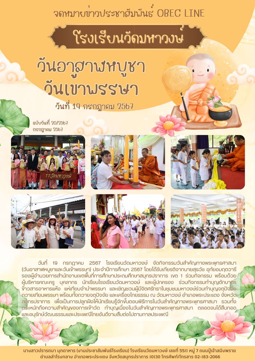 ฉบับที่ 20/2567 วันอาสาฬหบูชาและวันเข้าพรรษา