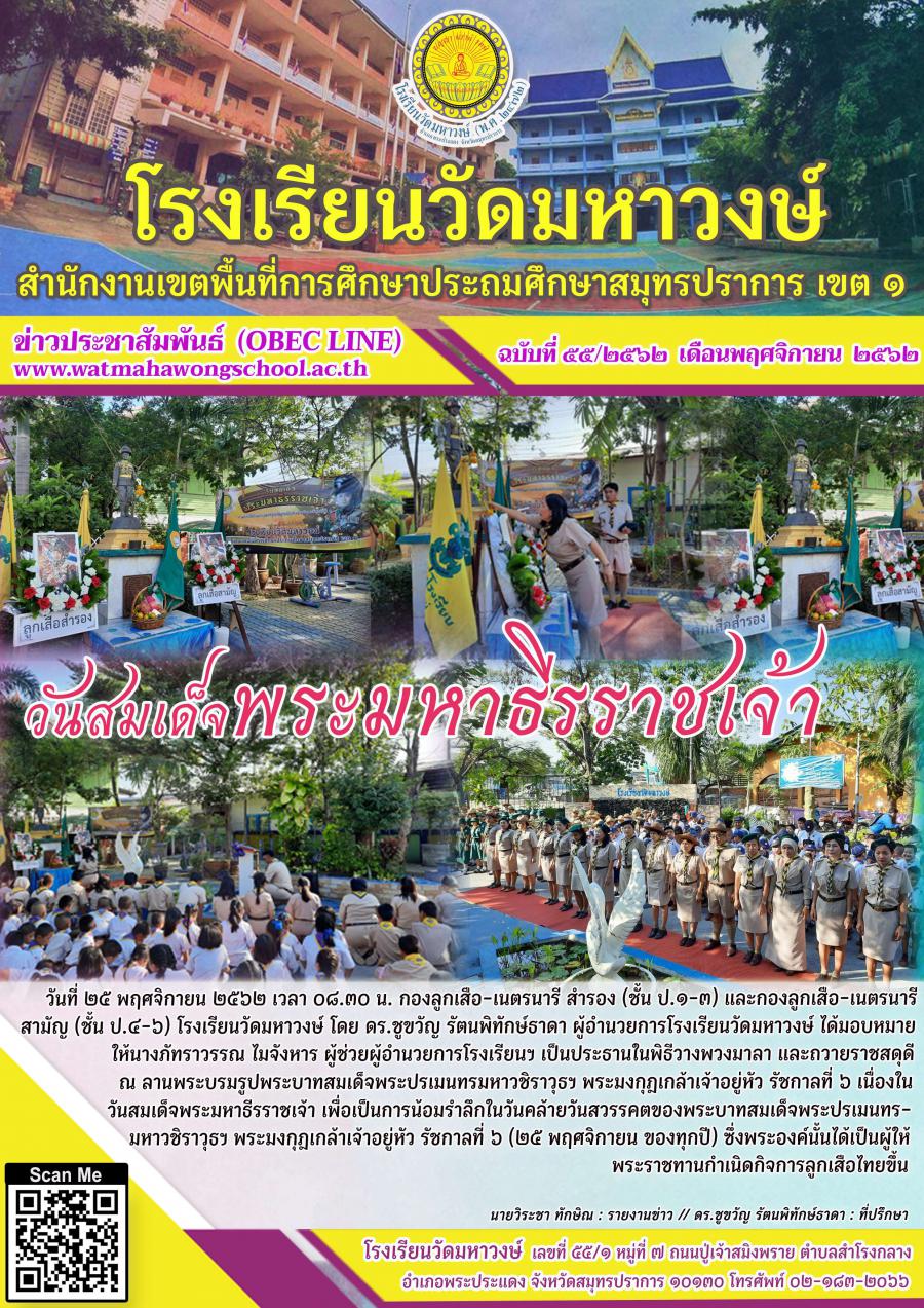 จดหมายข่าวประชาสัมพันธ์ (OBEC LINE) ฉบับที่ ๕๕/๒๕๖๒ ประจำเดือนพฤศจิกายน พ.ศ.๒๕๖๒