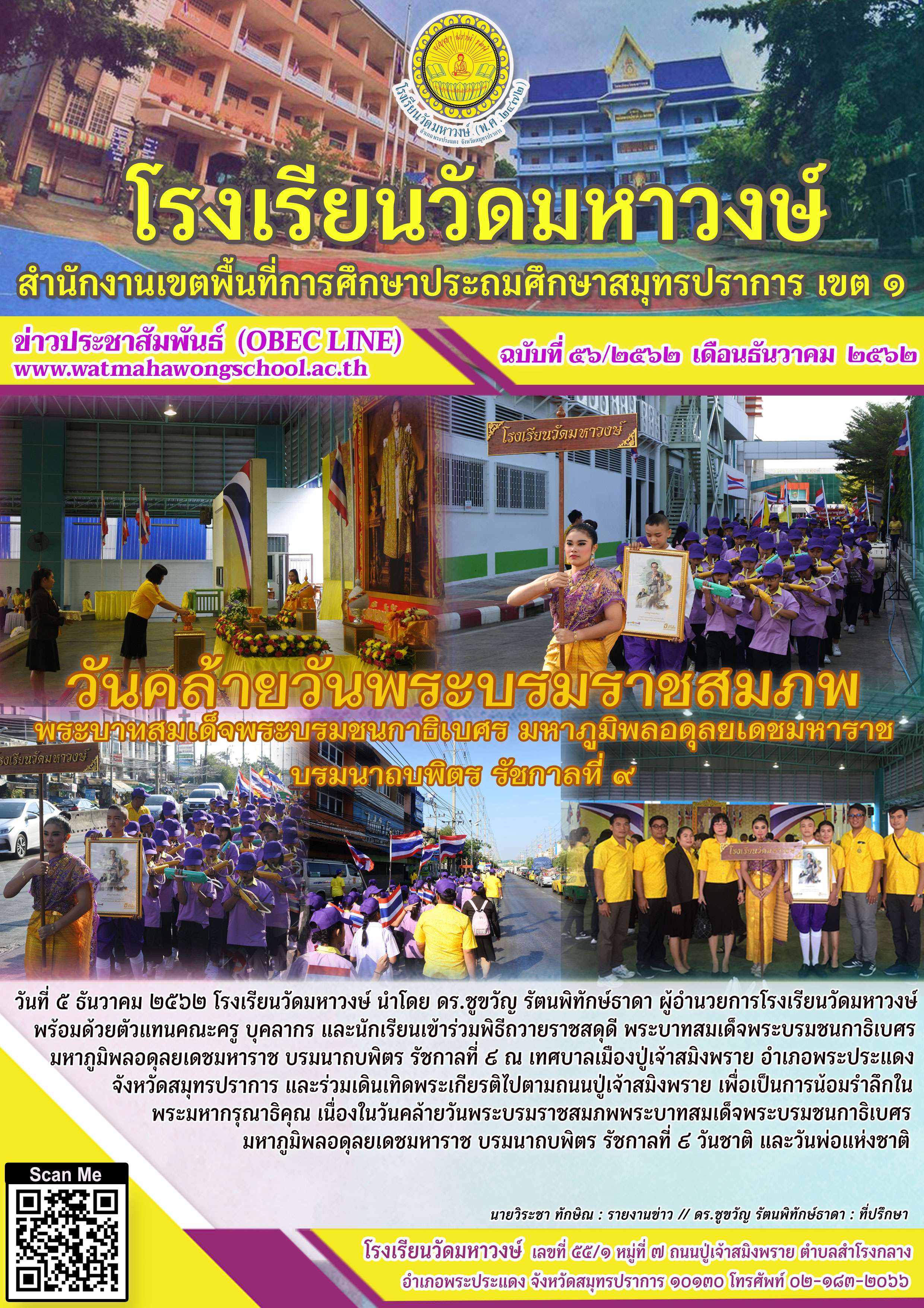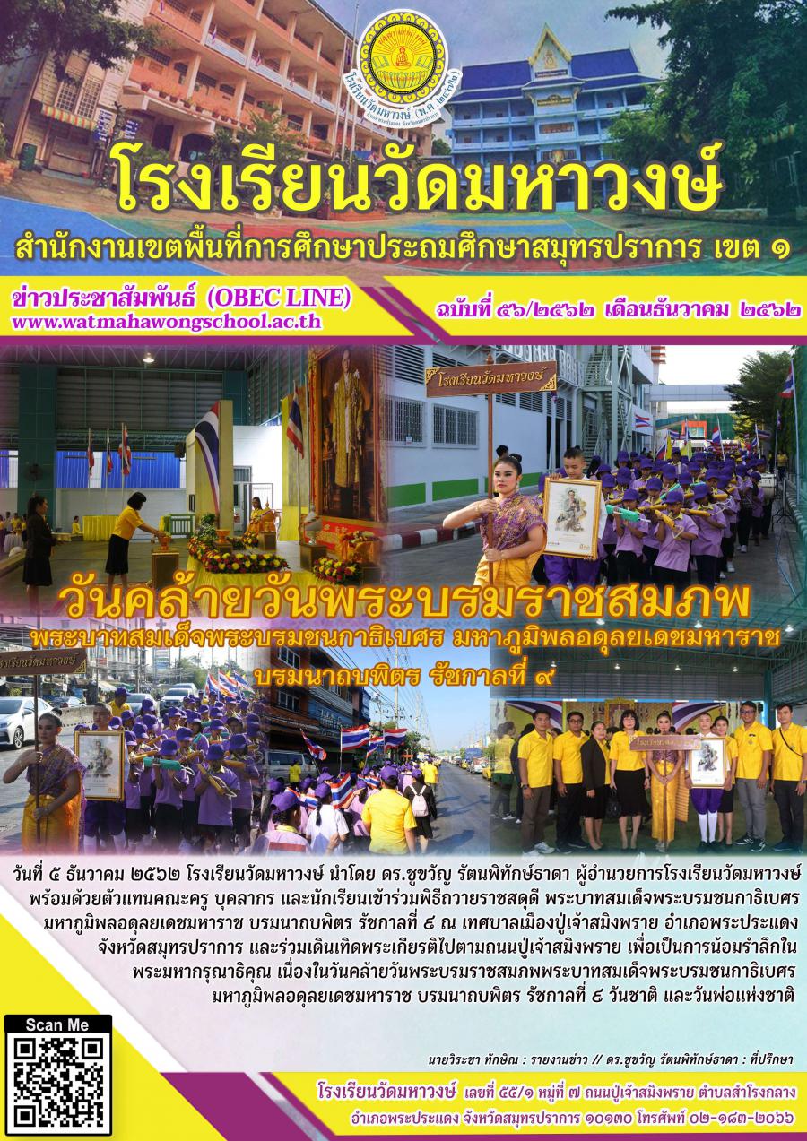จดหมายข่าวประชาสัมพันธ์ (OBEC LINE) ฉบับที่ ๕๖/๒๕๖๒ ประจำเดือนธันวาคม พ.ศ.๒๕๖๒