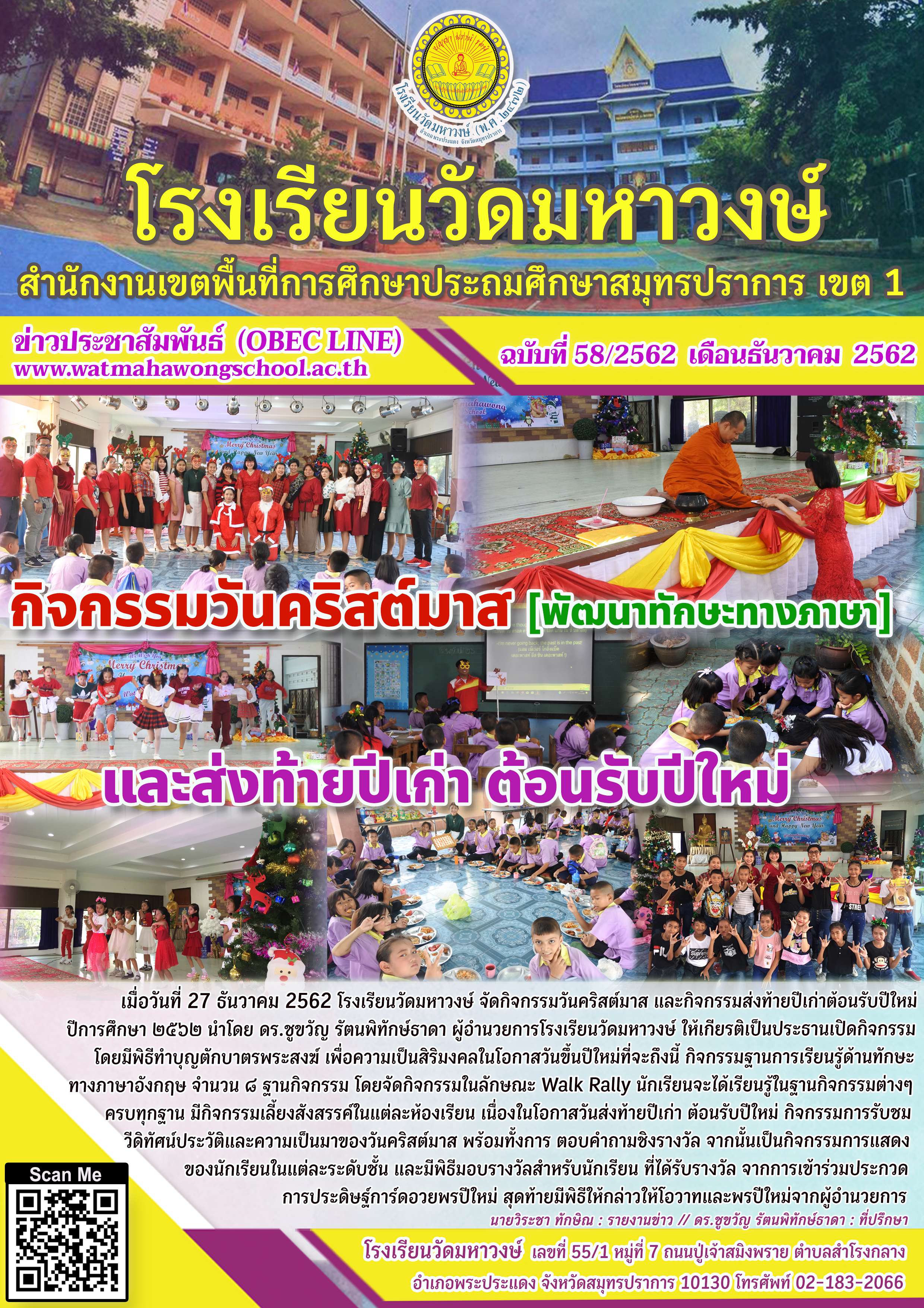 ฉบับที่ ๕๘/๒๕๖๒ กิจกรรมวันคริสต์มาส และส่งท้ายปีเก่า ต้อนรับปีใหม่