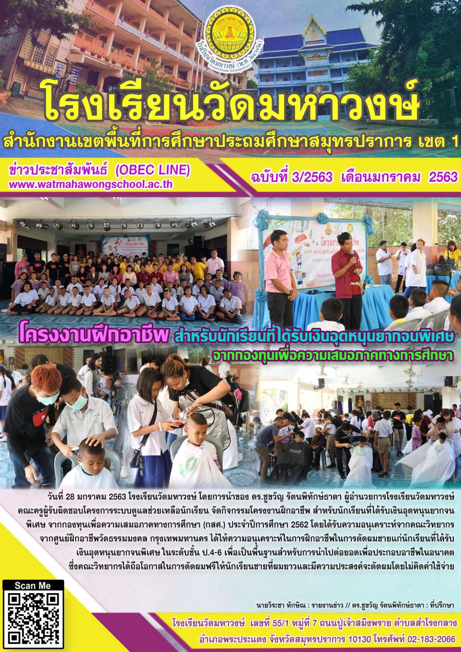 จดหมายข่าวประชาสัมพันธ์ (OBEC LINE) ฉบับที่ ๓/๒๕๖๓ ประจำเดือนมกราคม พ.ศ.๒๕๖๓