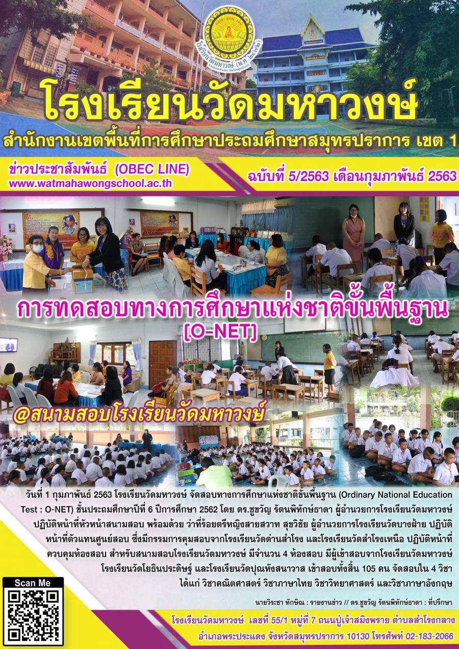 ฉบับที่ ๕/๒๕๖๓ การทดสอบทางการศึกษาแห่งชาติขั้นพื้นฐาน [O-NET]