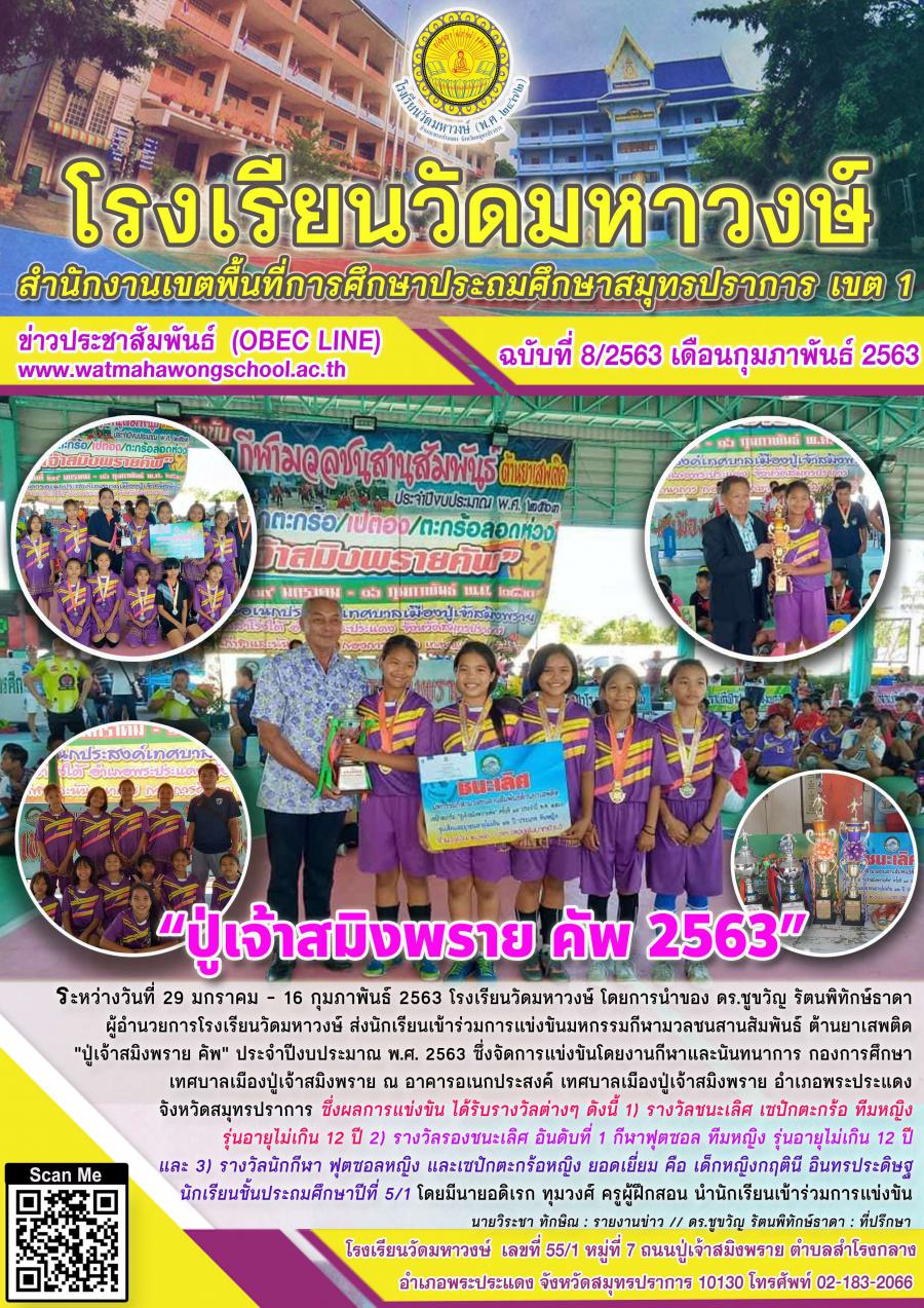 ฉบับที่ ๘/๒๕๖๓ มหกรรมกีฬา "ปู่เจ้าสมิงพราย คัพ" ประจำปีงบประมาณ พ.ศ. ๒๕๖๓